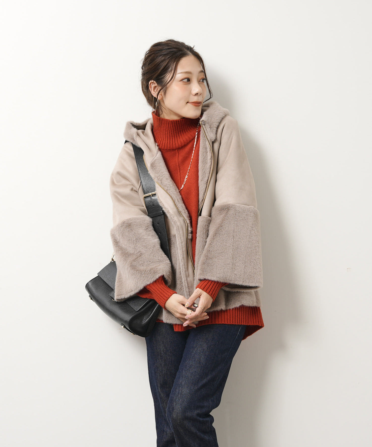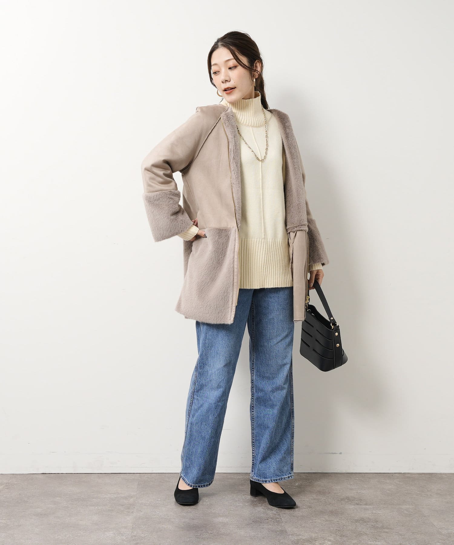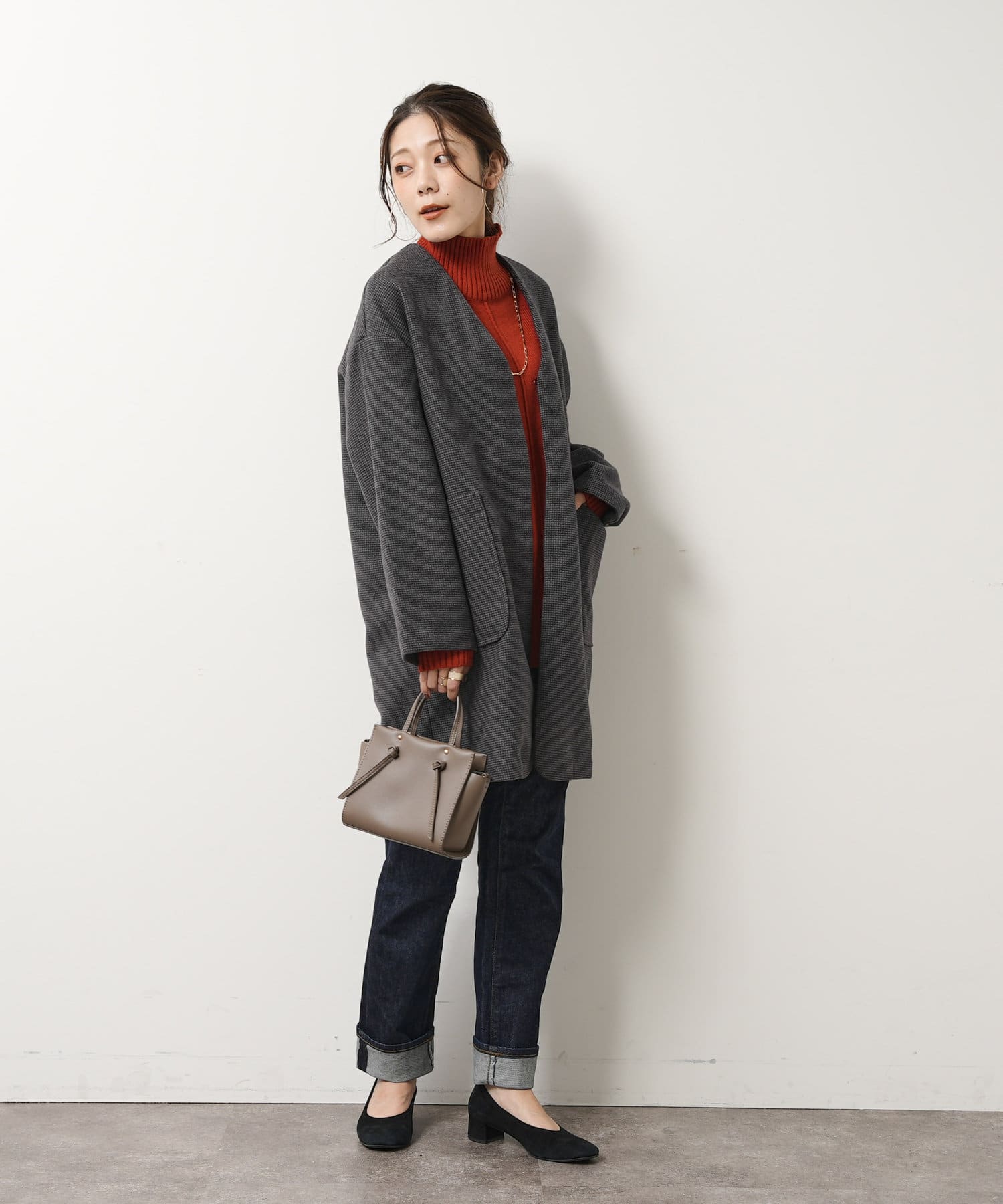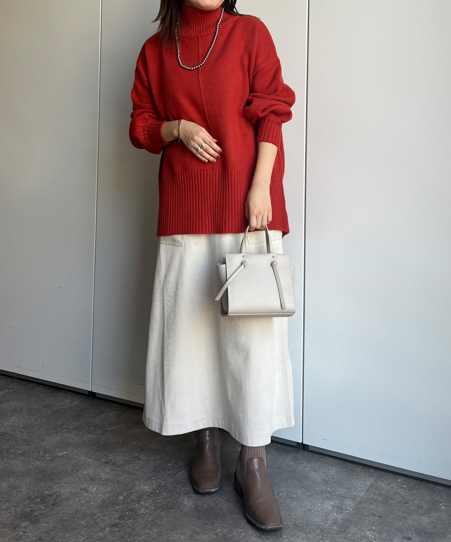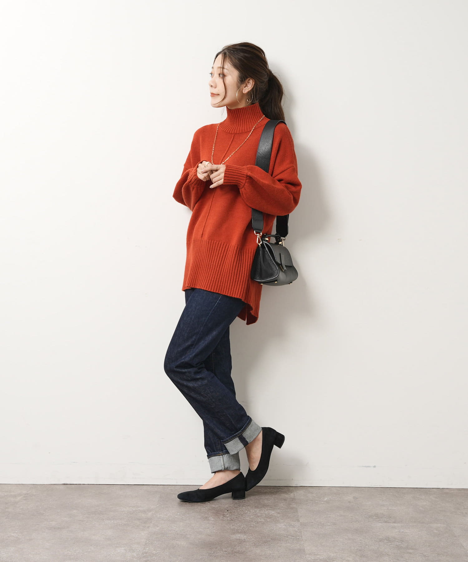 高さのあるタートルネックにバックスリットがざっくりと入ったカラーニットです。