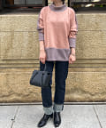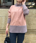 ・柔らかく肌触りが良いスエード生地と、細リブニットが組み合わさったデザイントップスです。