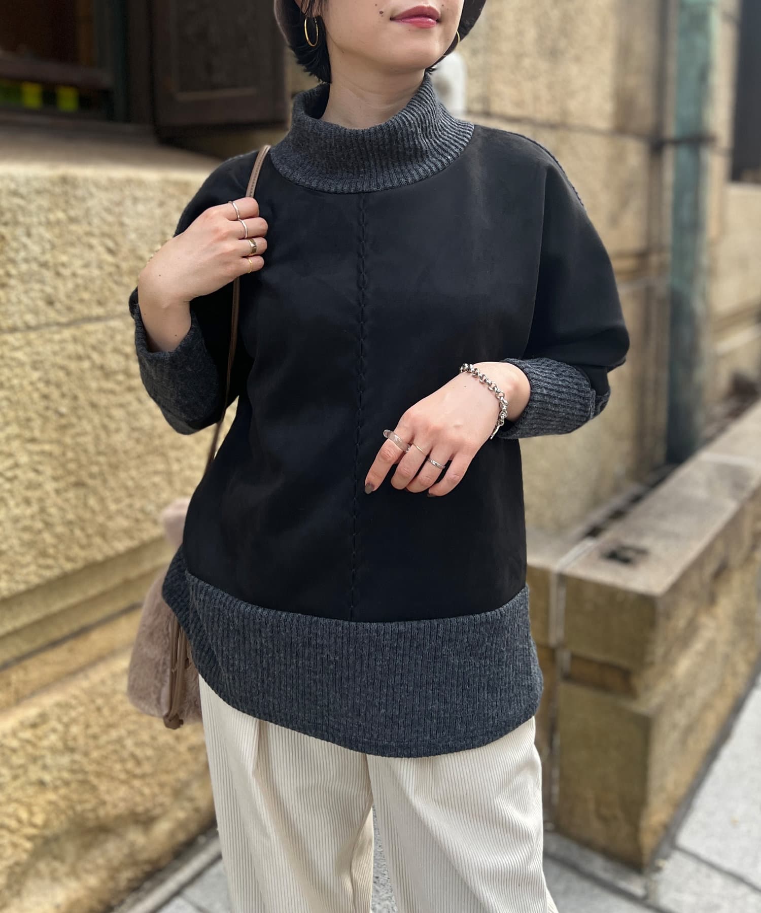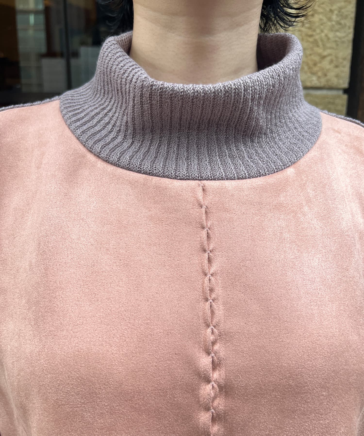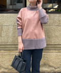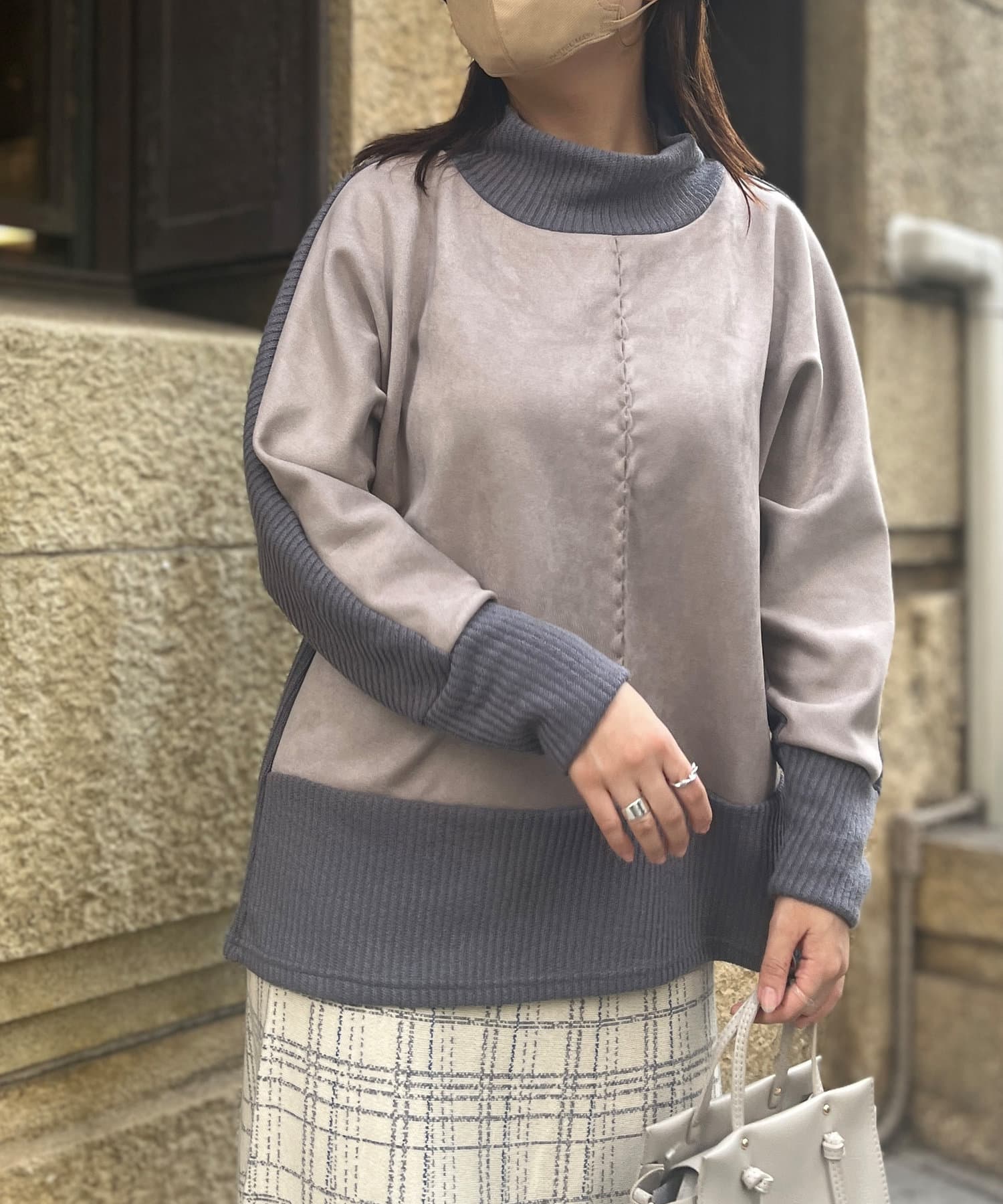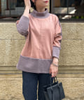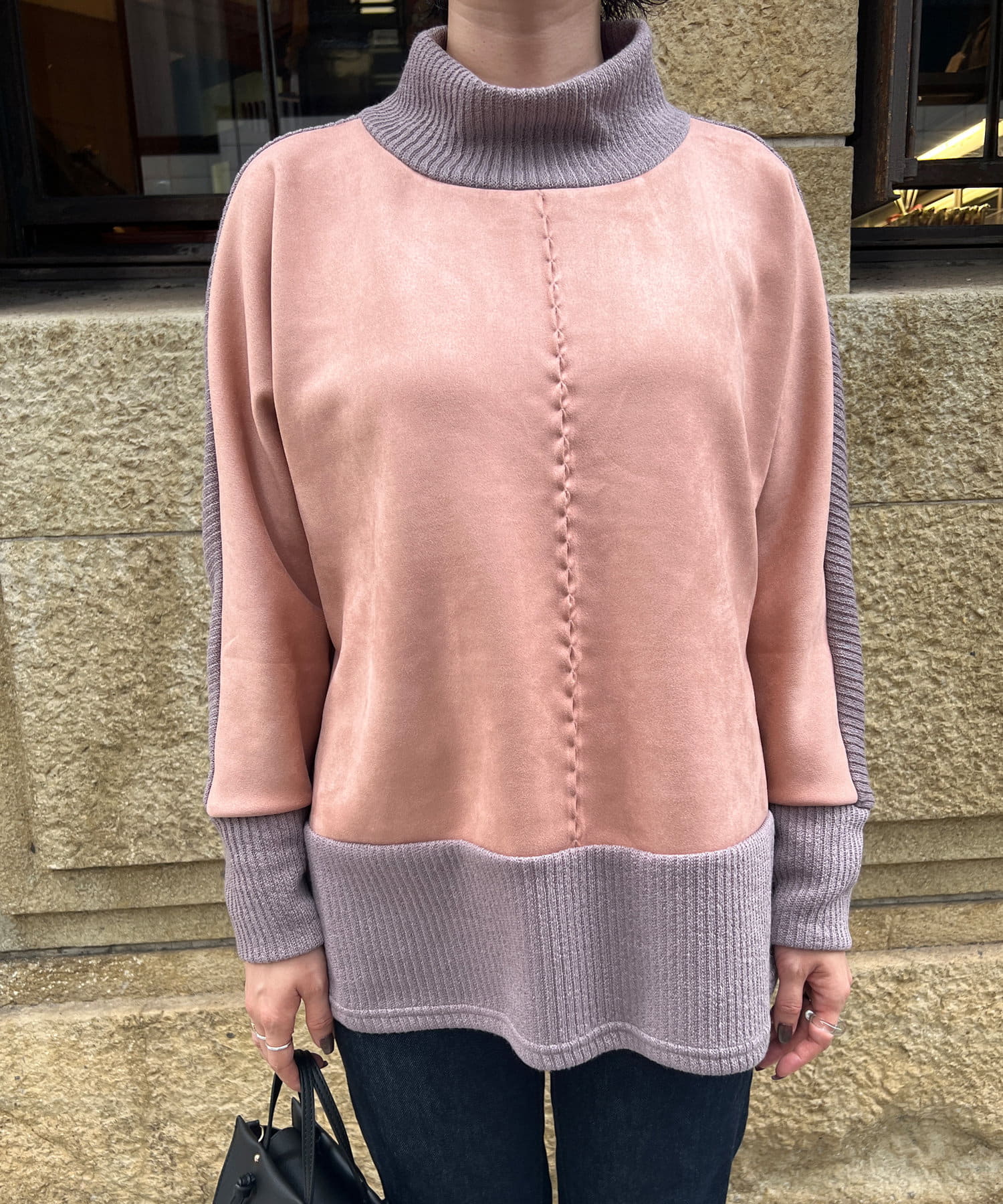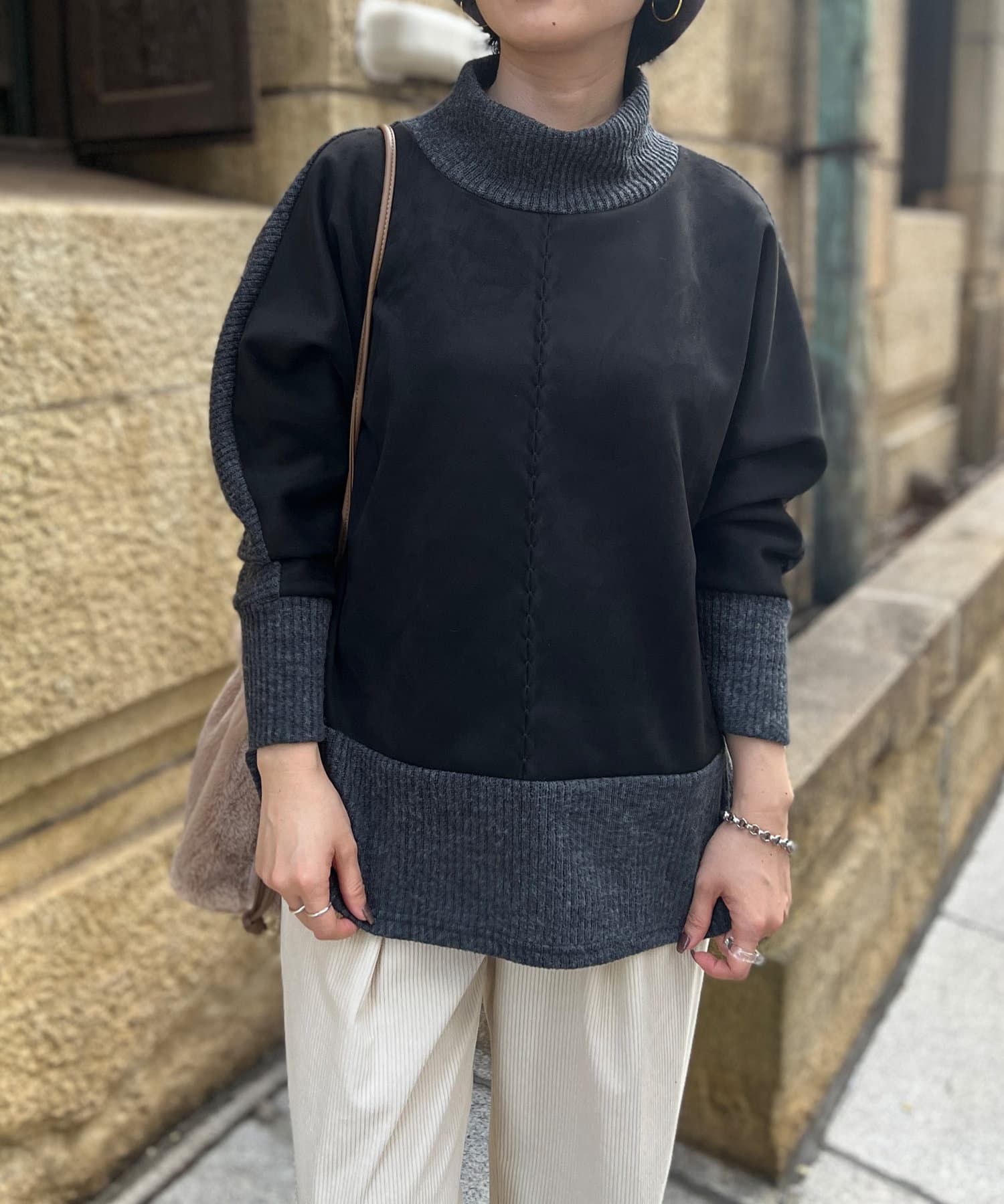 スエード×リブ切替タートルネックプルオーバー