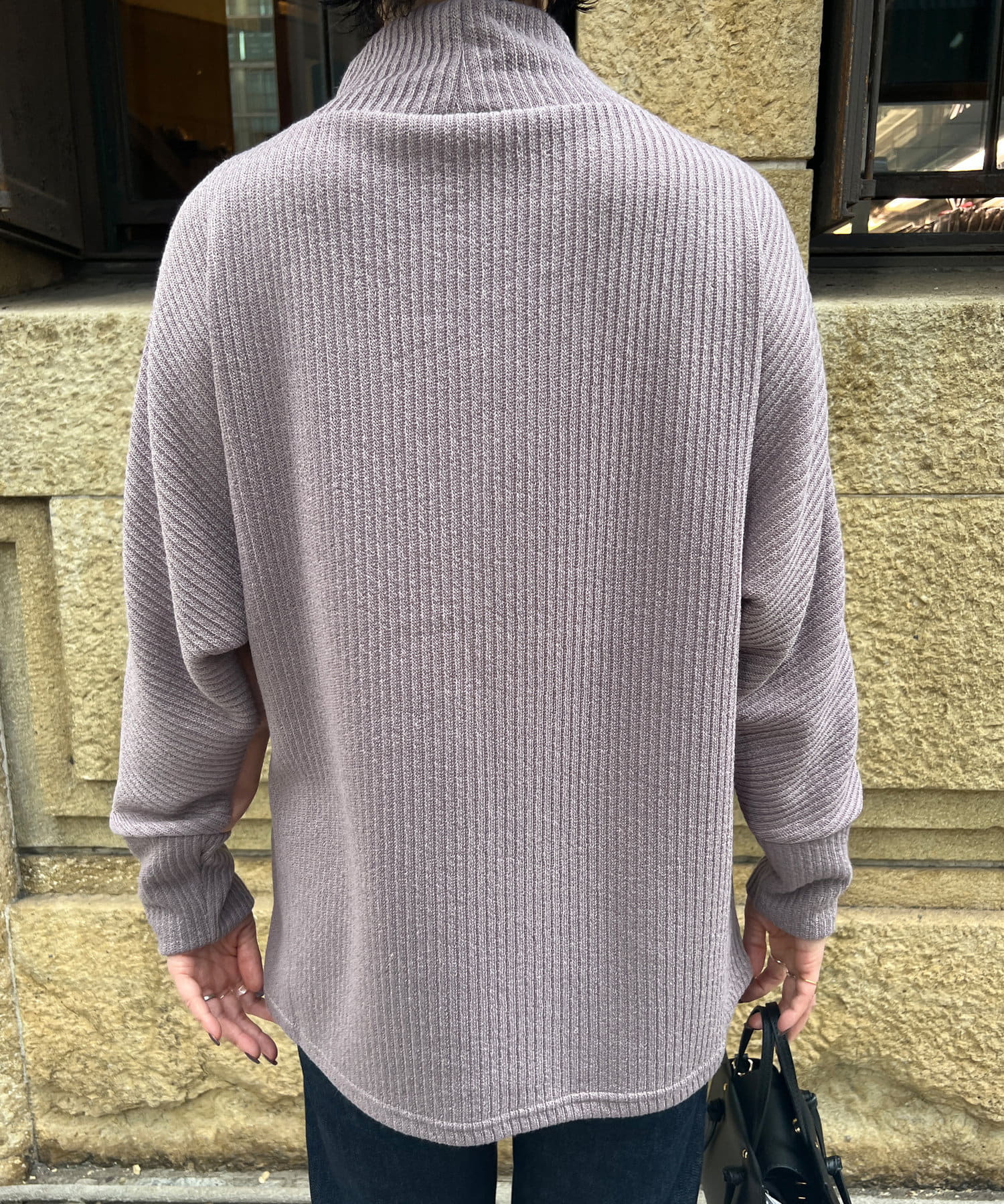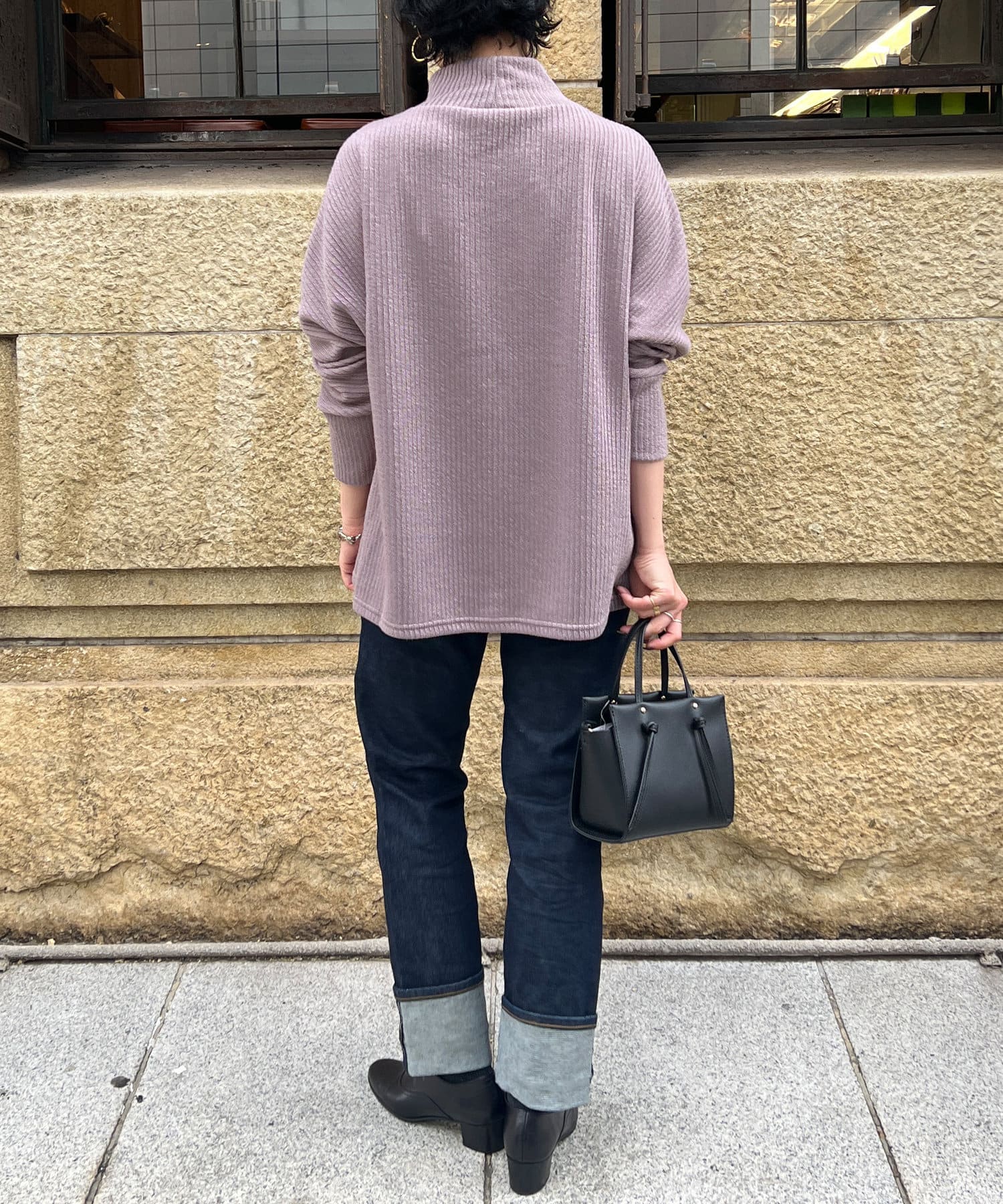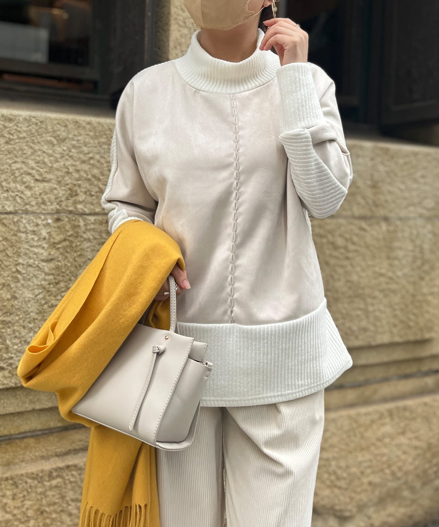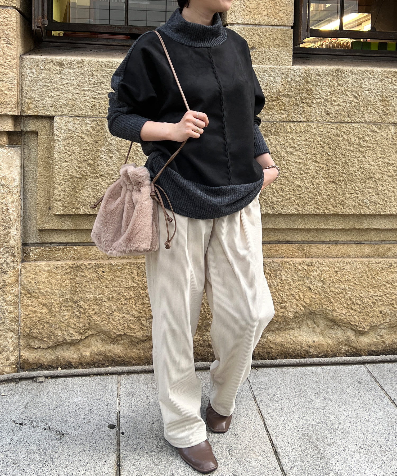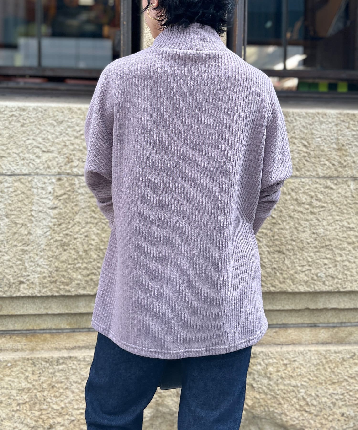 スエード×リブ切替タートルネックプルオーバー