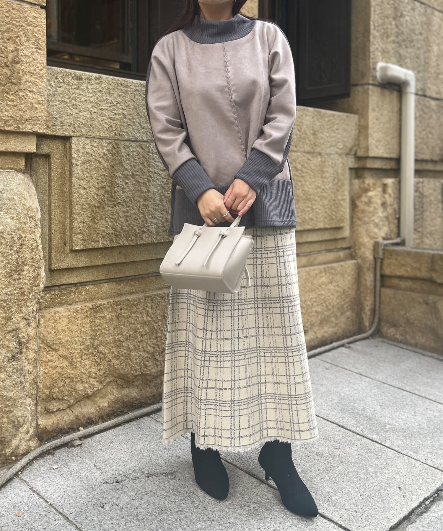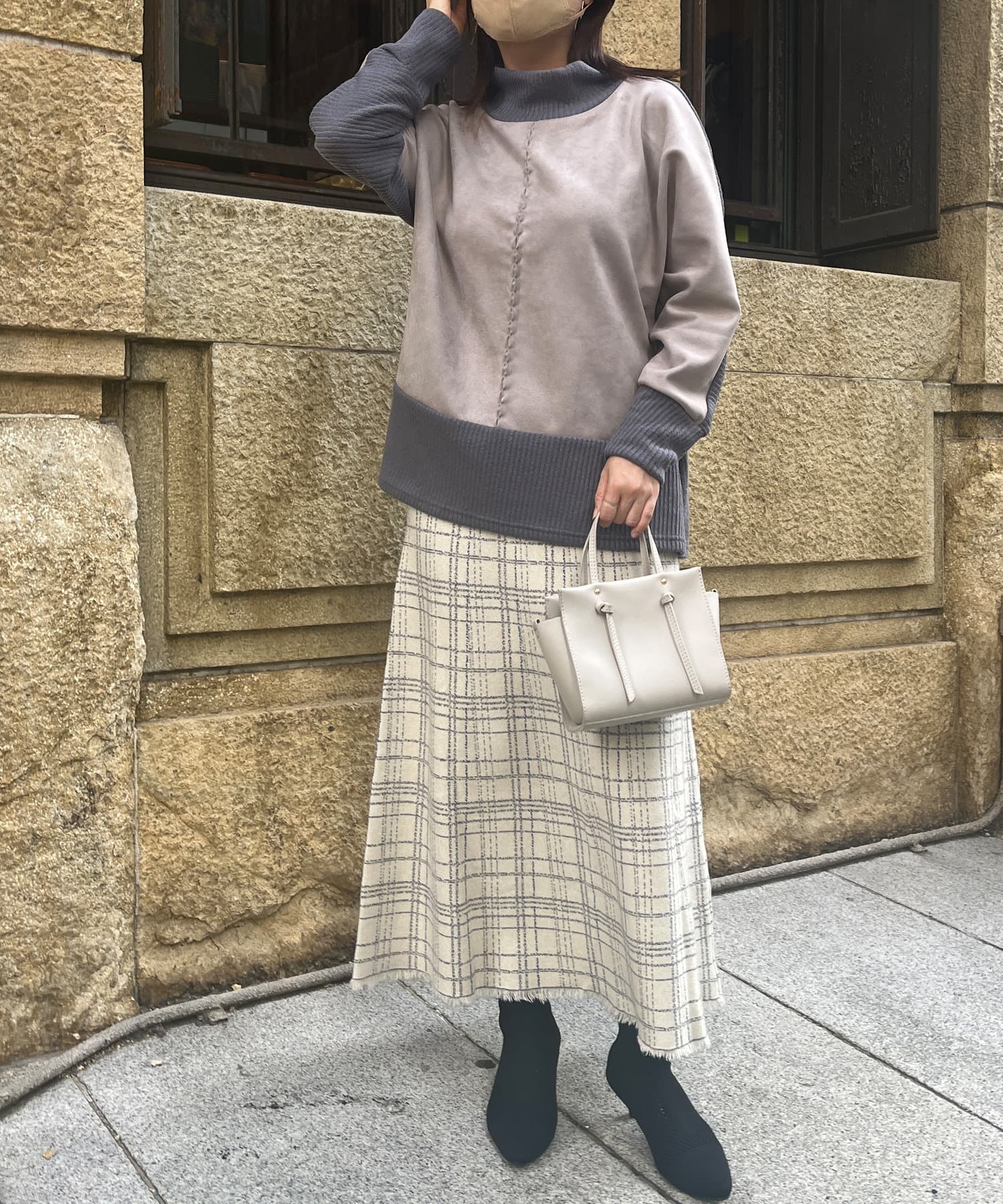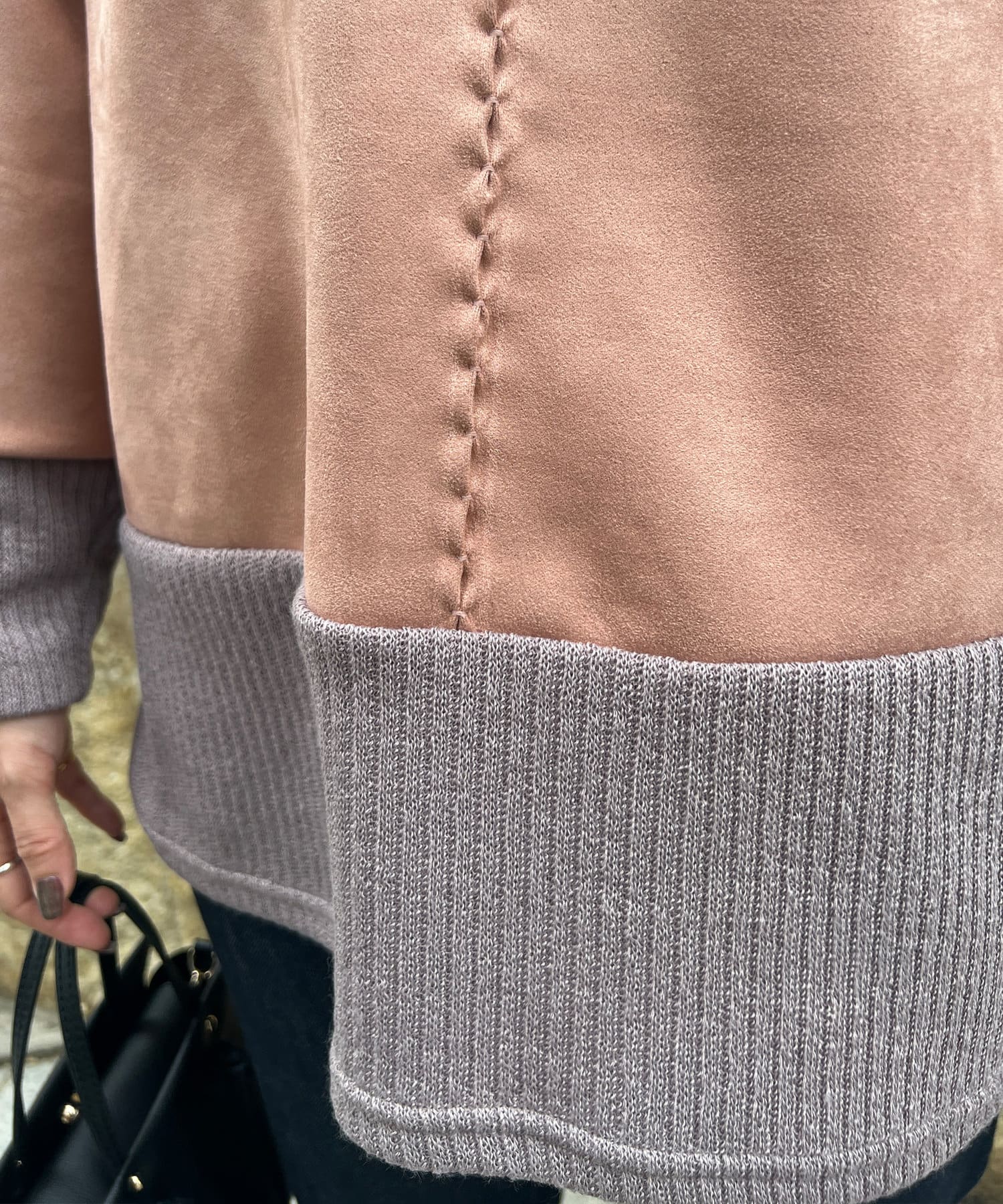 スエードとリブニットの切替デザイン