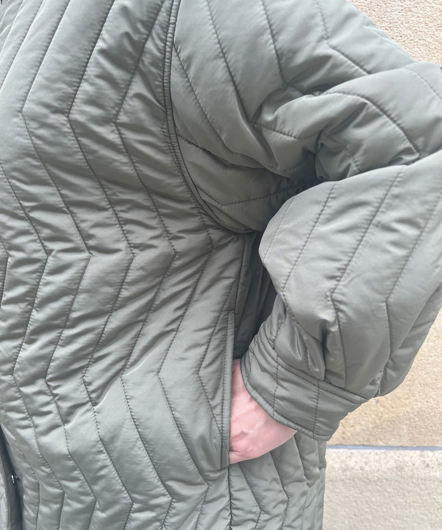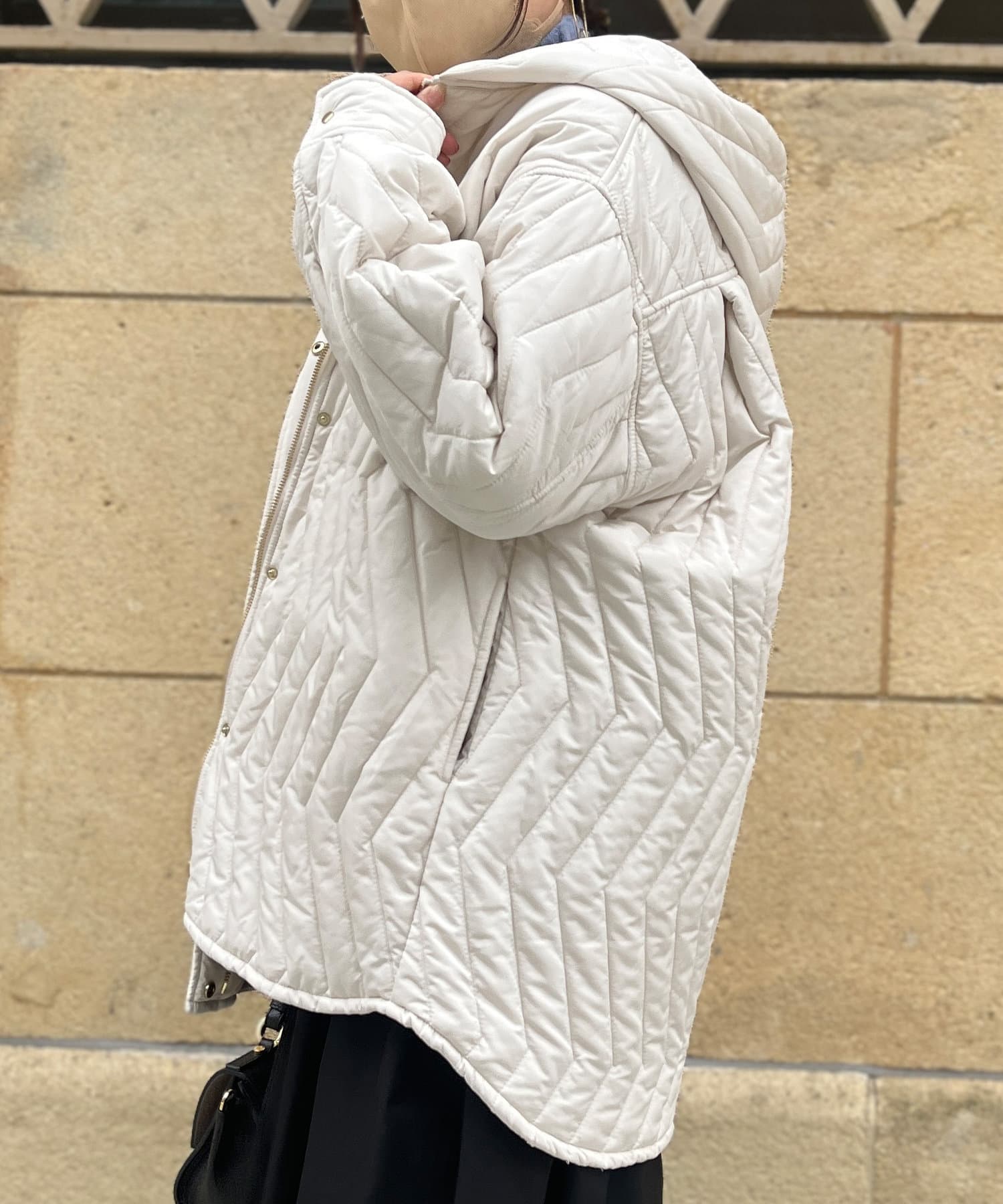 ギザギザとした波柄のようなステッチがポイントのミドル丈コートです。