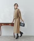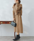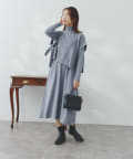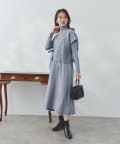 ワンピースはシンプルながらタートルネックと身頃の細リブがすっきりと見せてくれるので、着回し力にも自信ありのデザインです。