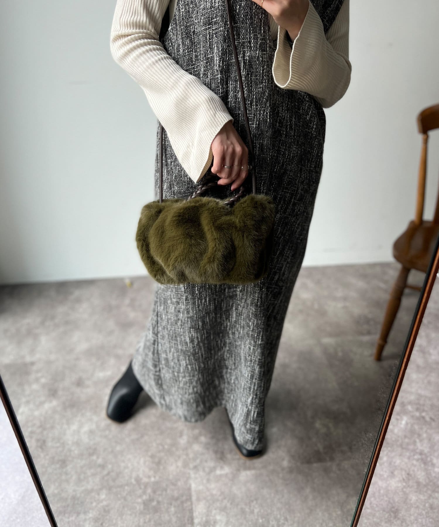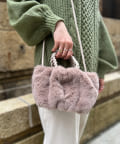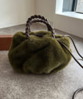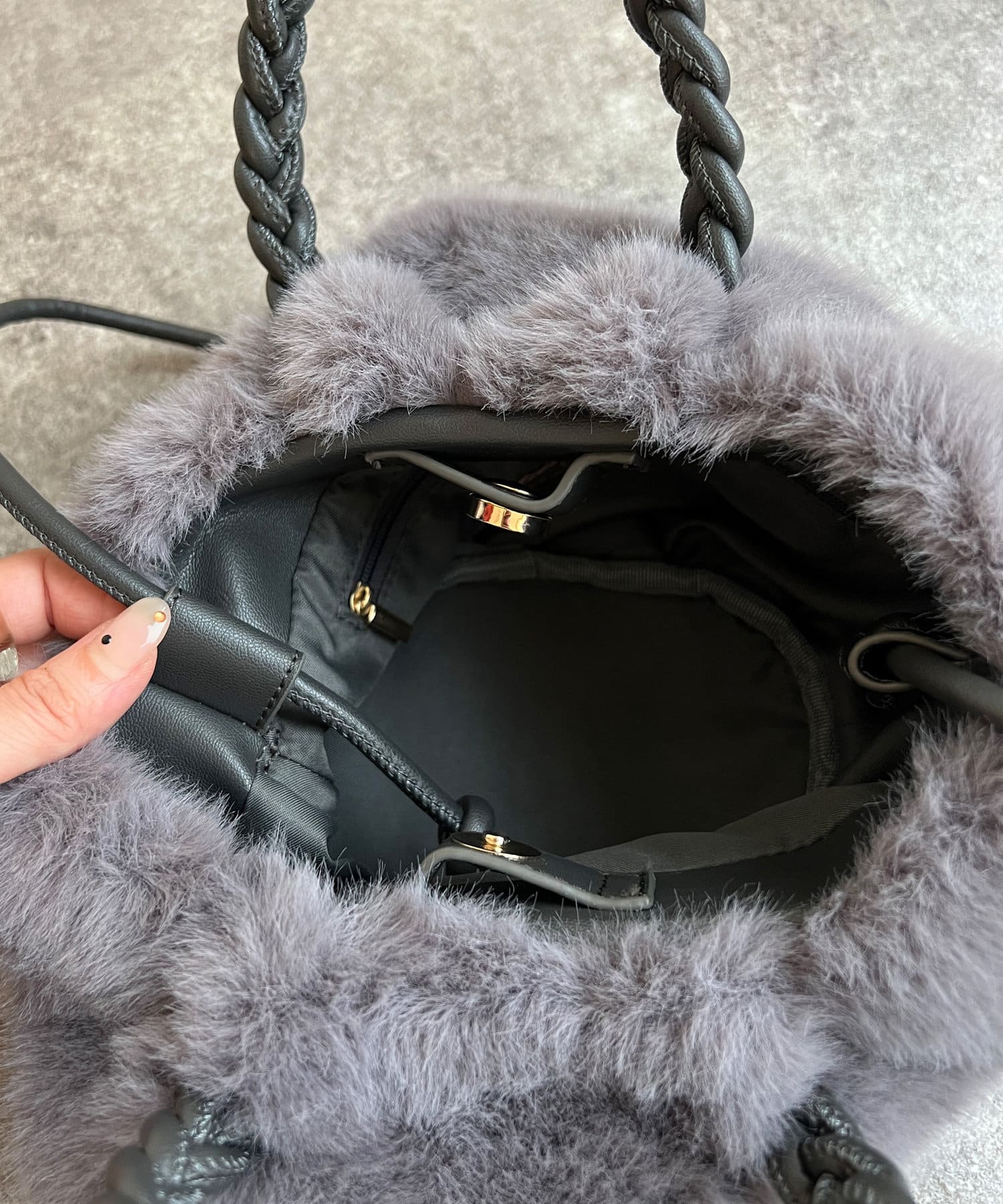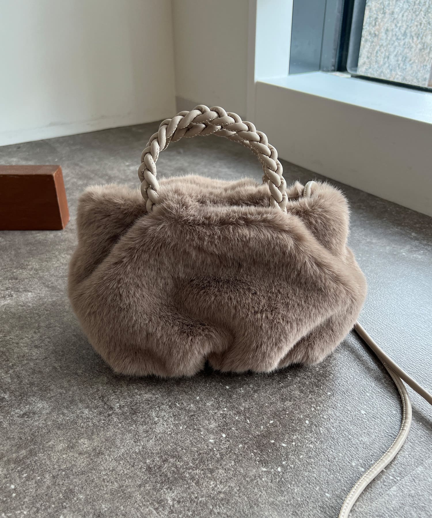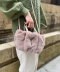 もこもこのエコファーと持ち手の編みがポイントのファーショルダーバッグ。