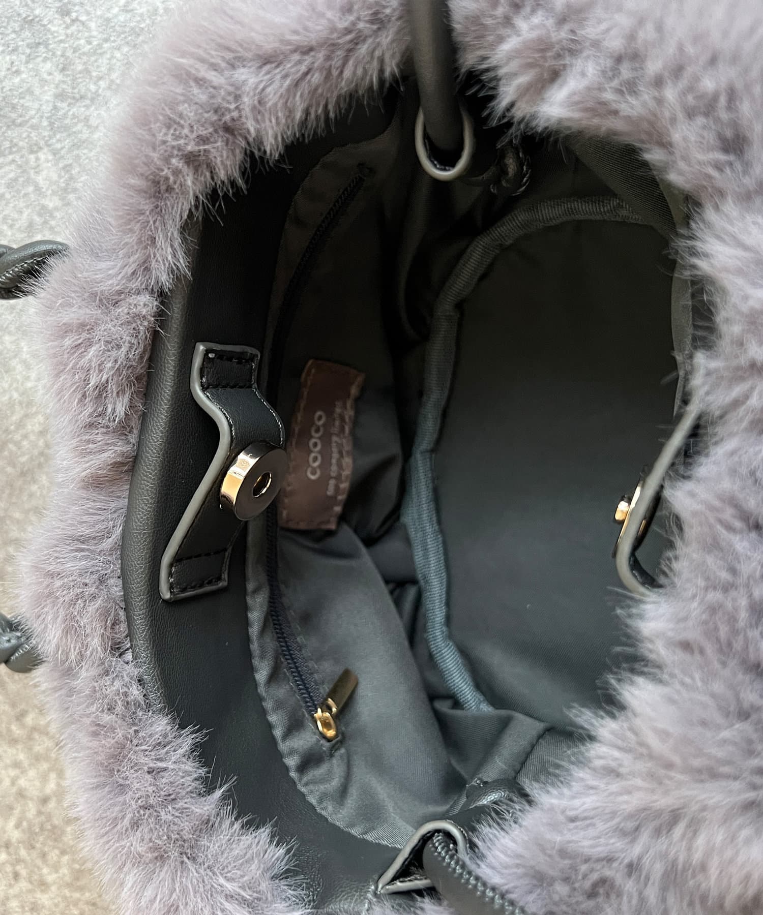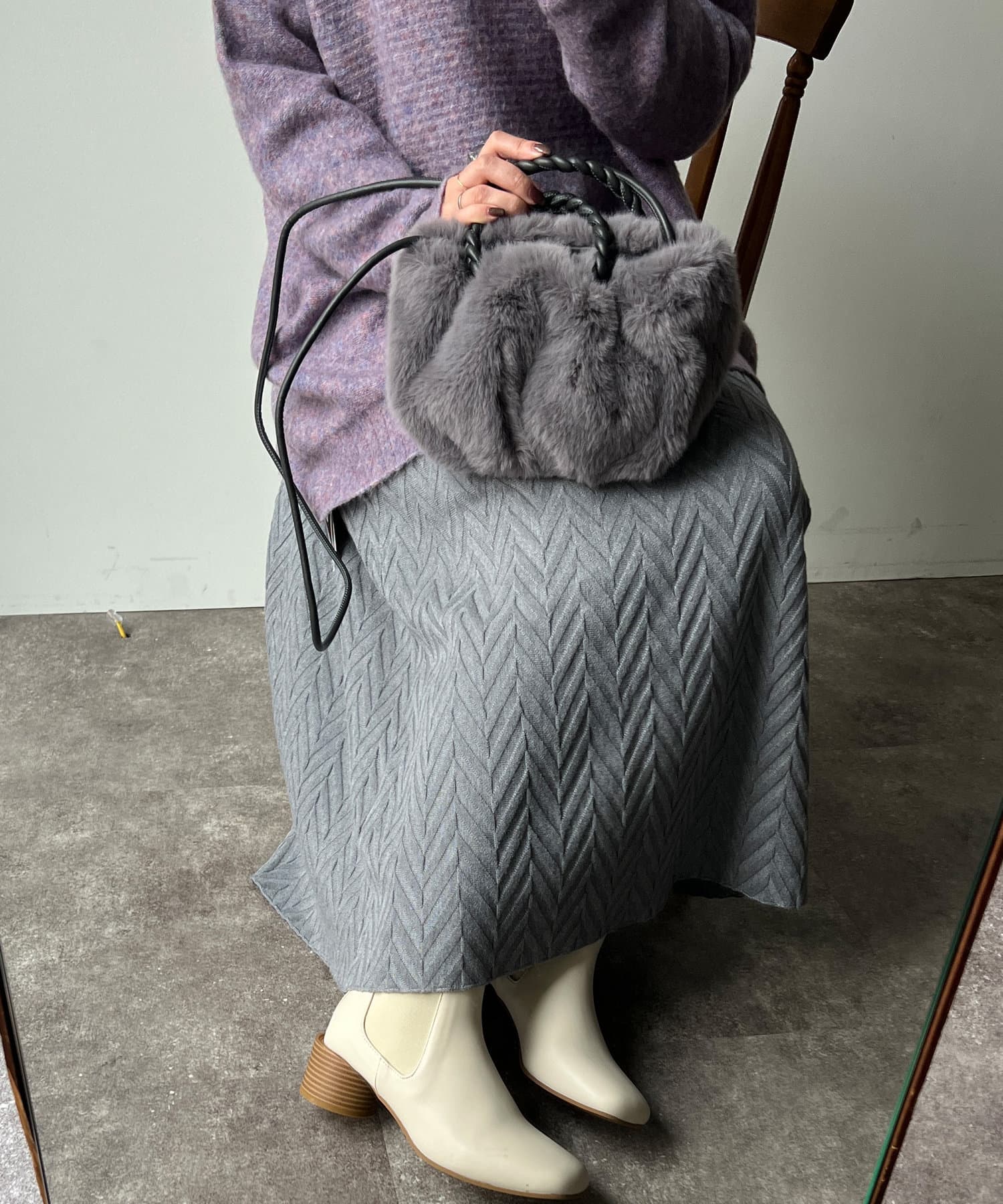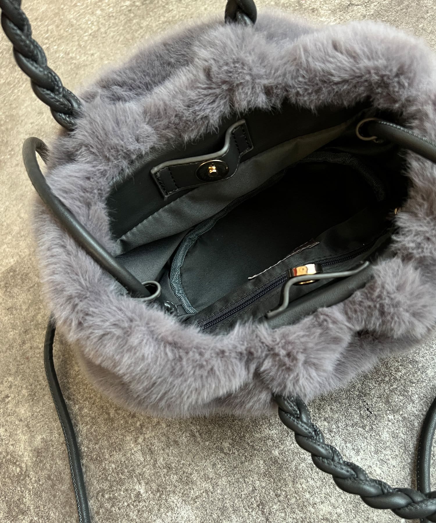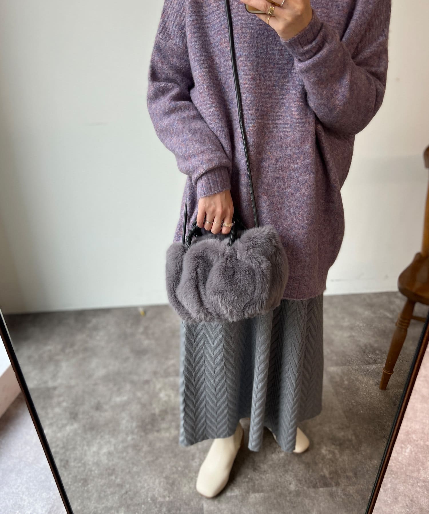 もこもこのエコファーと持ち手の編みがポイントのファーショルダーバッグ。