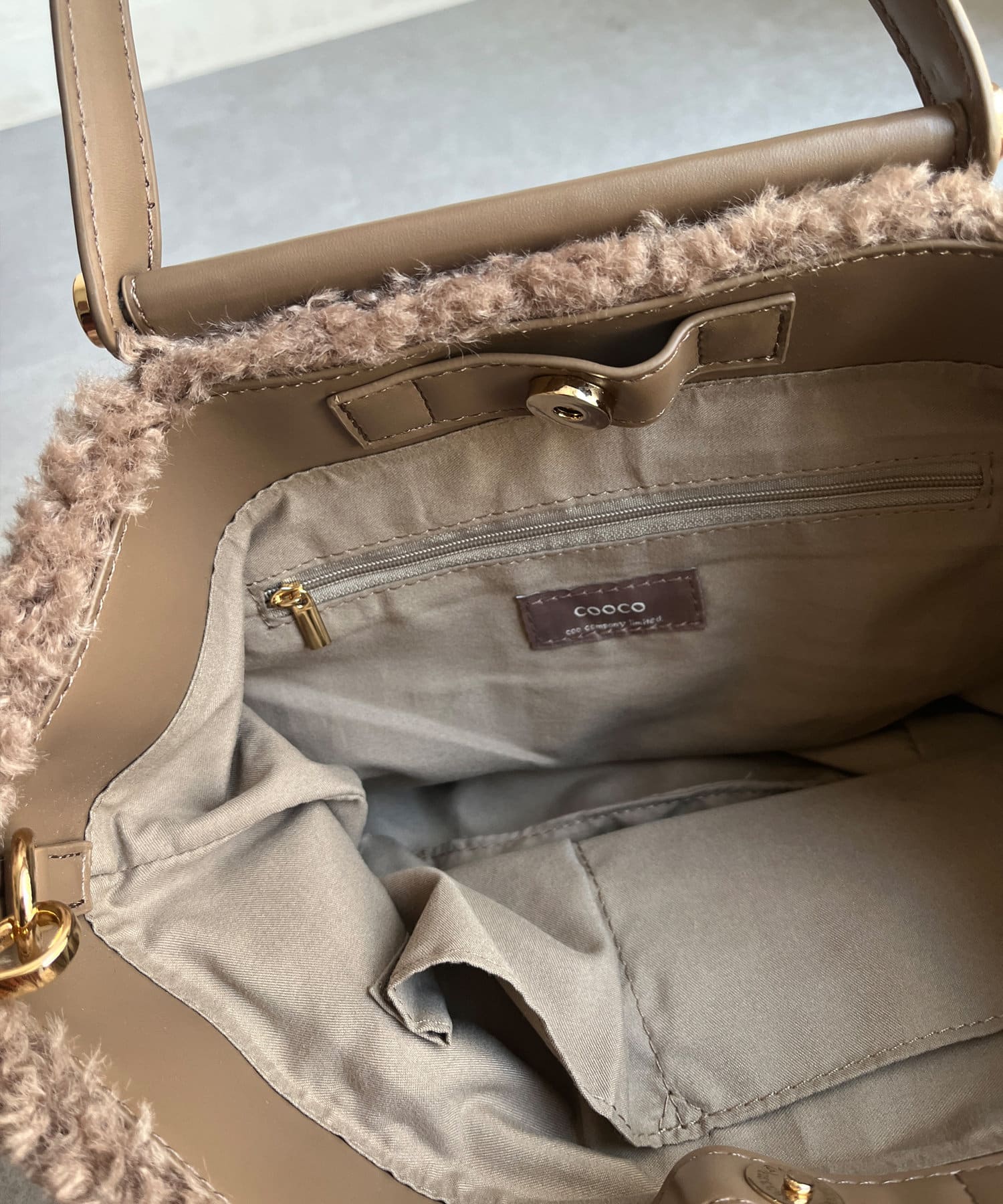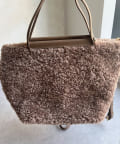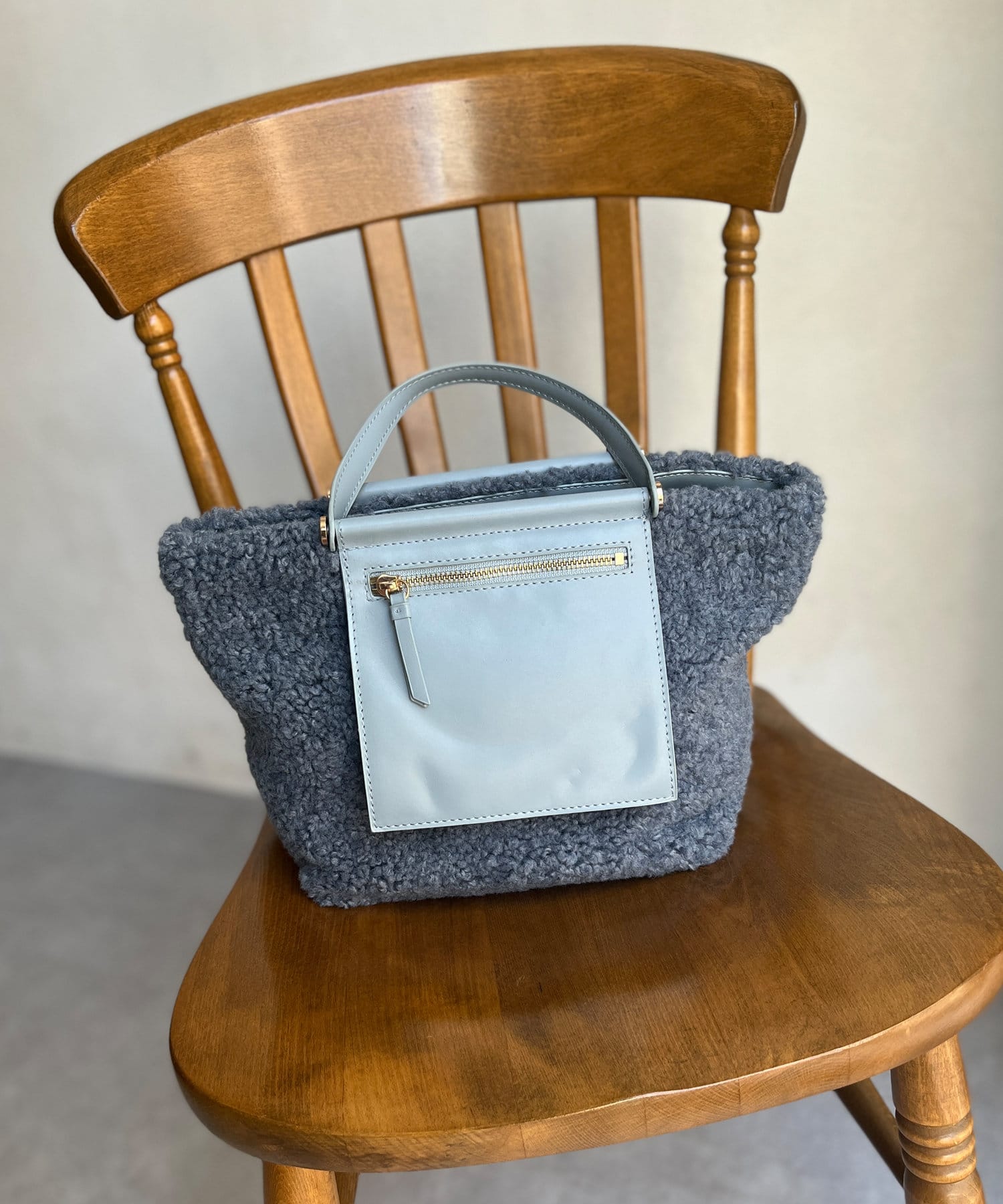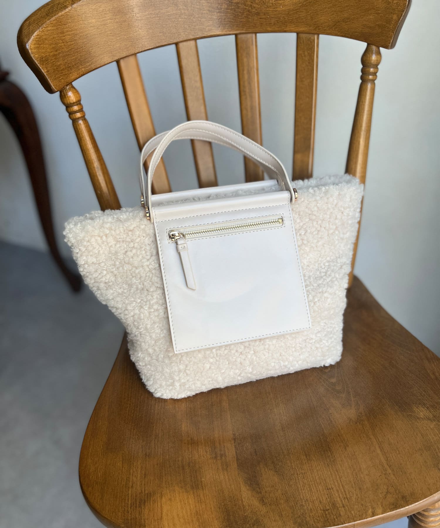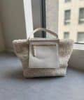 ・モコモコのボアにレザーポケットがアクセントになった切替トートバッグ。