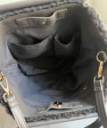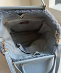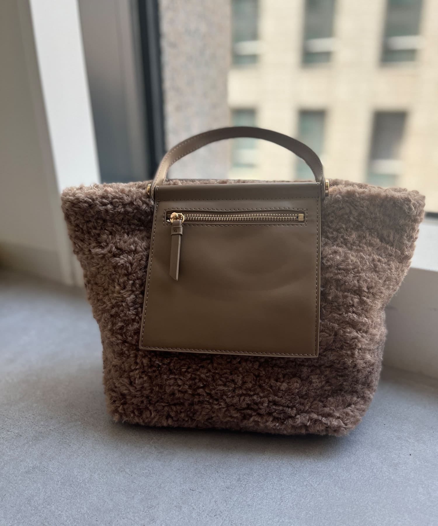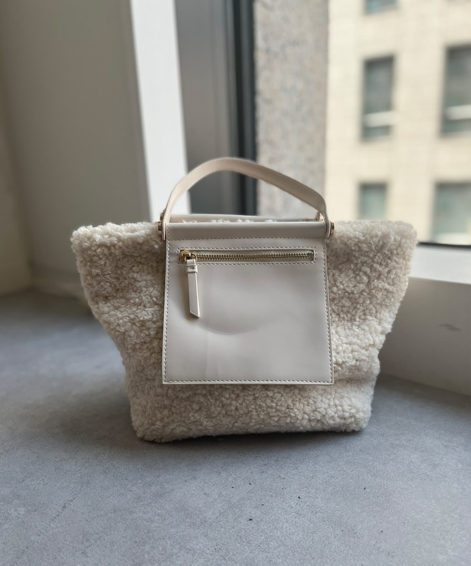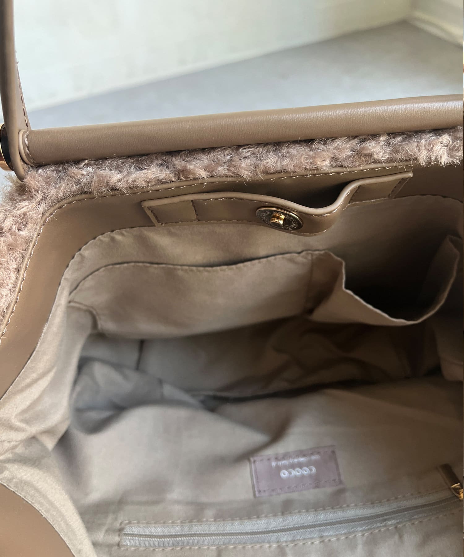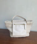 ・モコモコのボアにレザーポケットがアクセントになった切替トートバッグ。