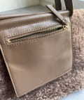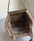・持ち手は細目でエレガントな印象がありつつも、ボアレザーの存在感が際立つデザインです。
