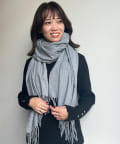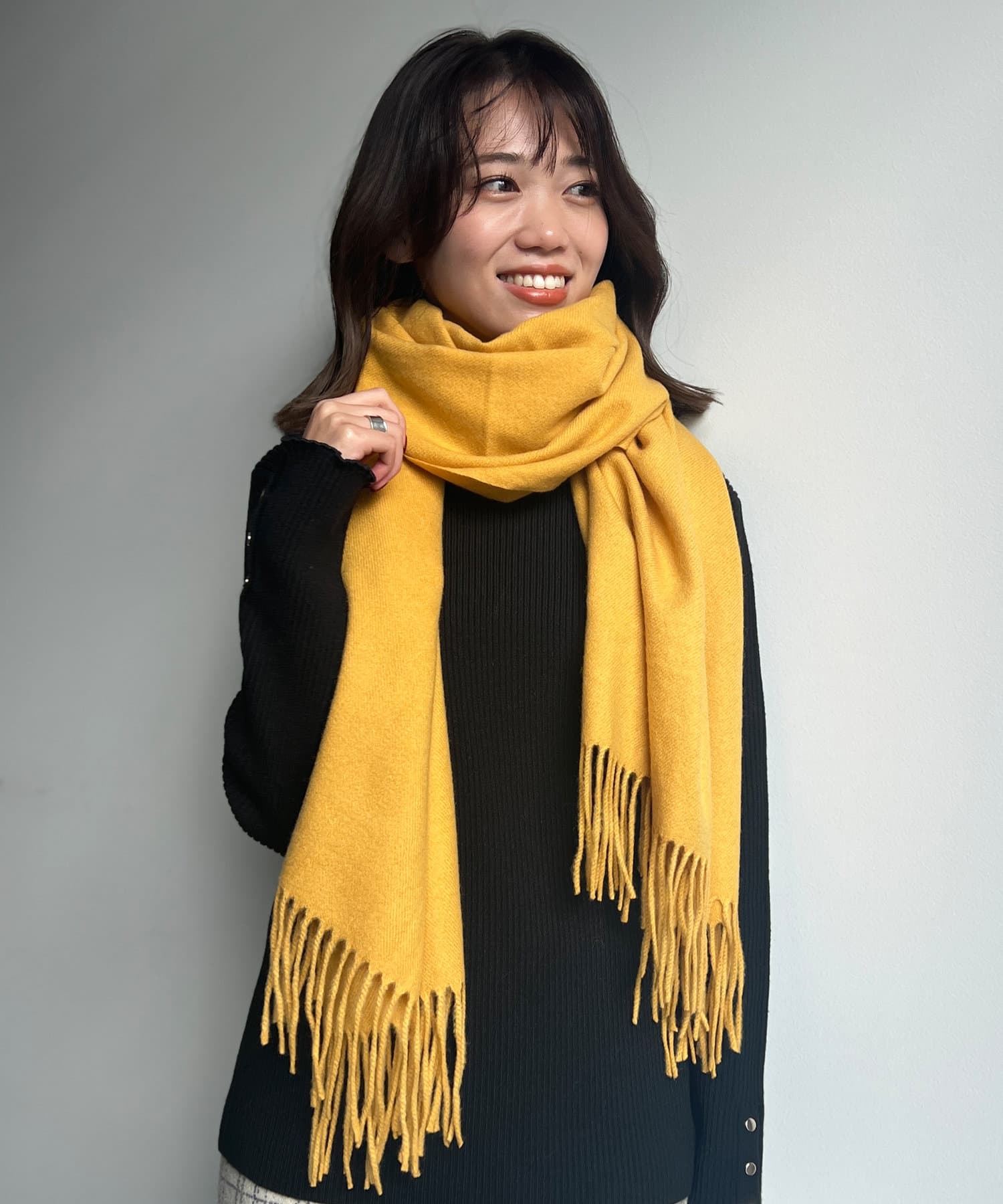 ・大判サイズなので、首元のボリューム感を楽しむだけでなくひざ掛けとしても◎