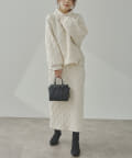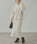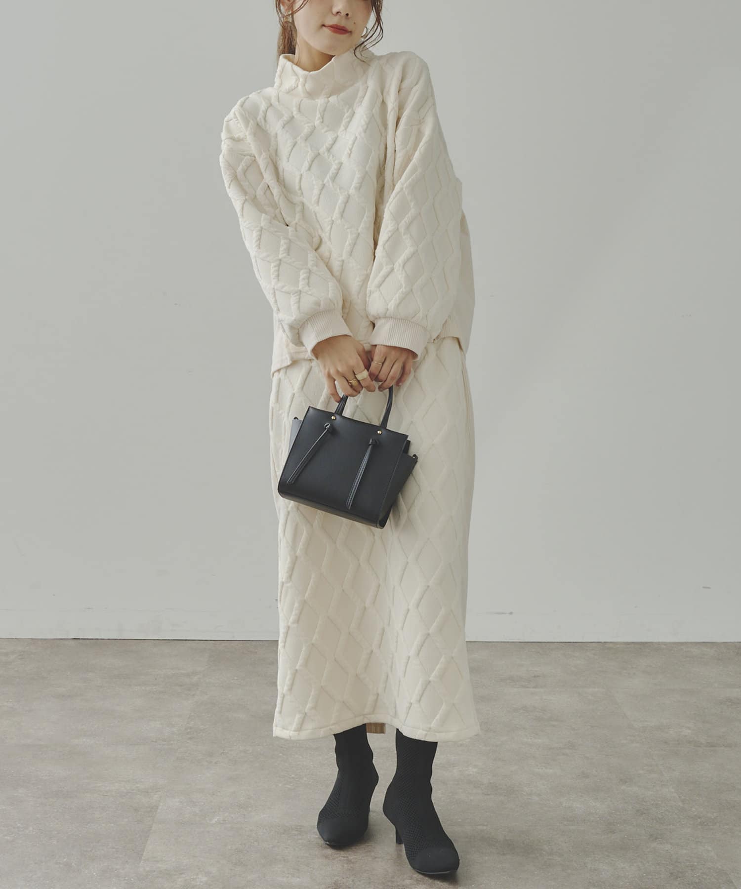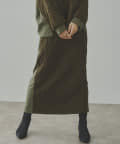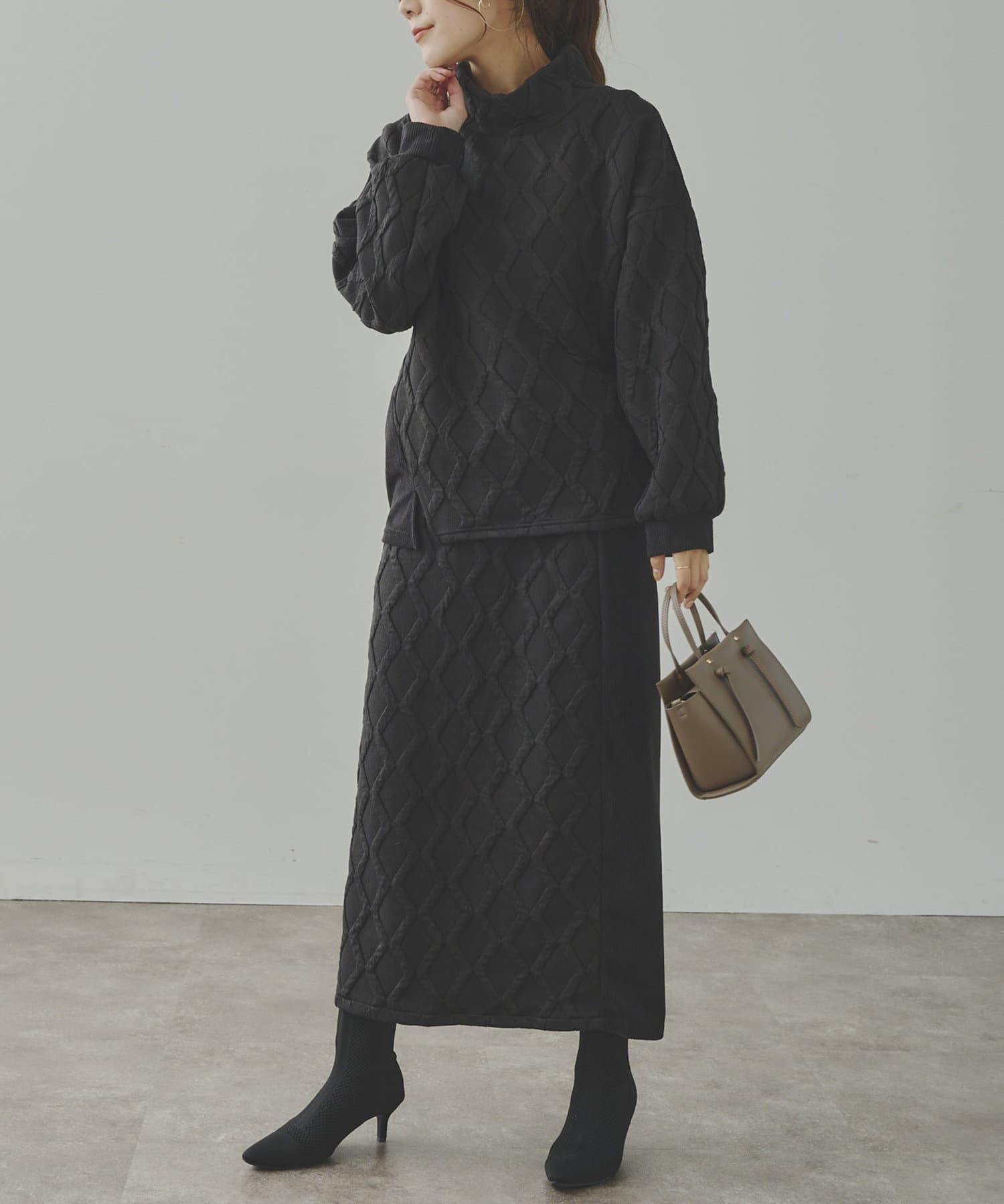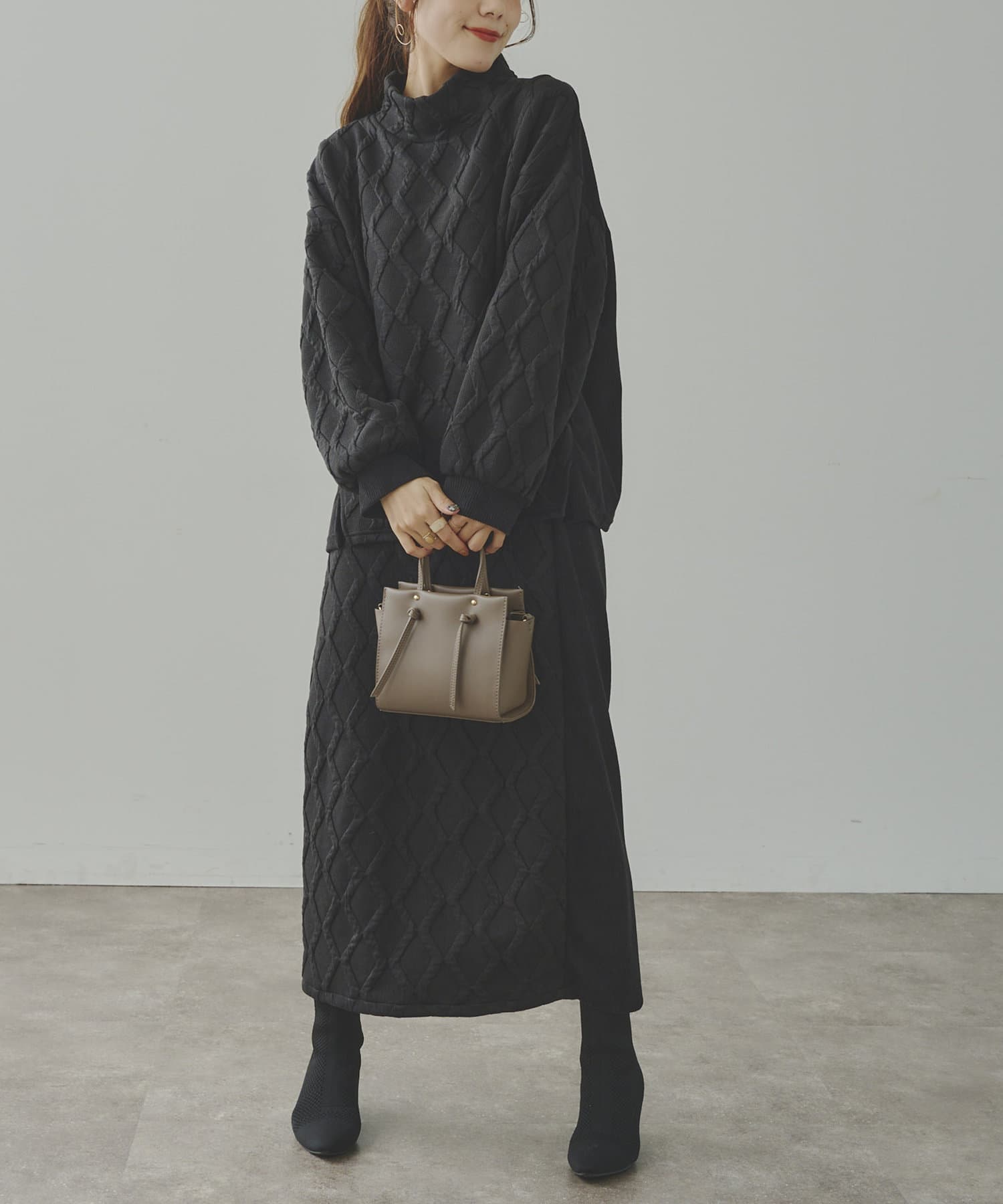 ダイヤ柄キルティングとニットスカートの切替デザイン