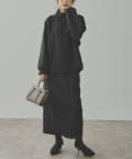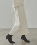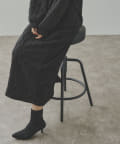 長さがある分すっきりとタイトなナローシルエットでもたつきがなく、バックスリット入りで足さばきも問題なく履いていただけます。