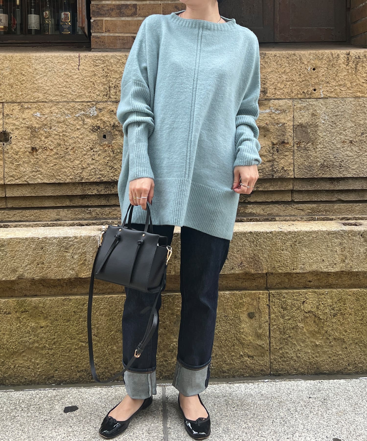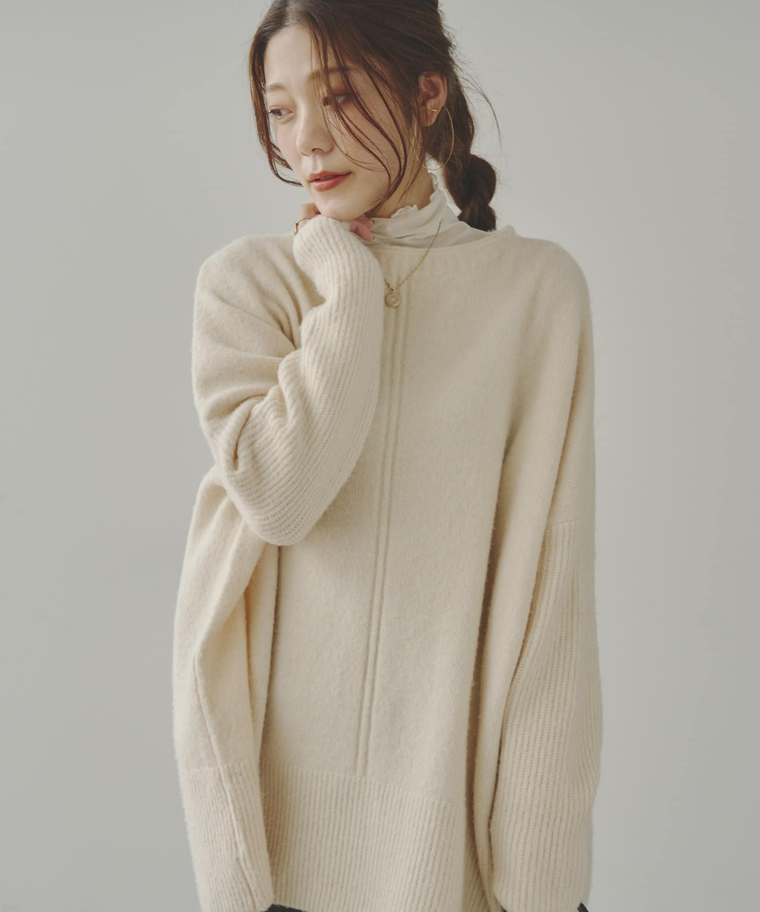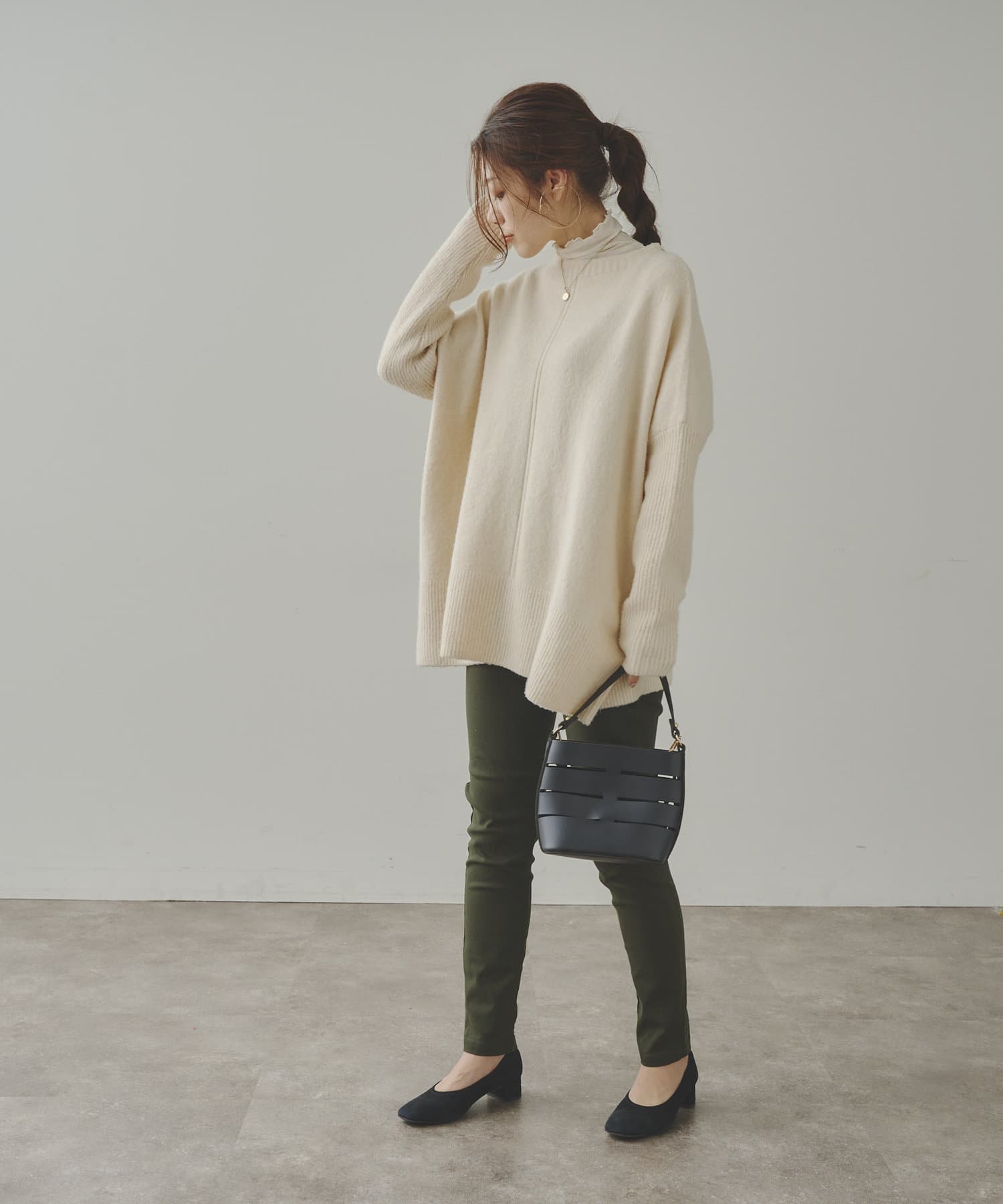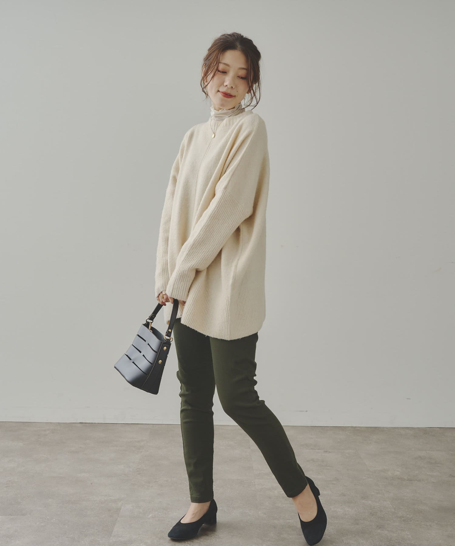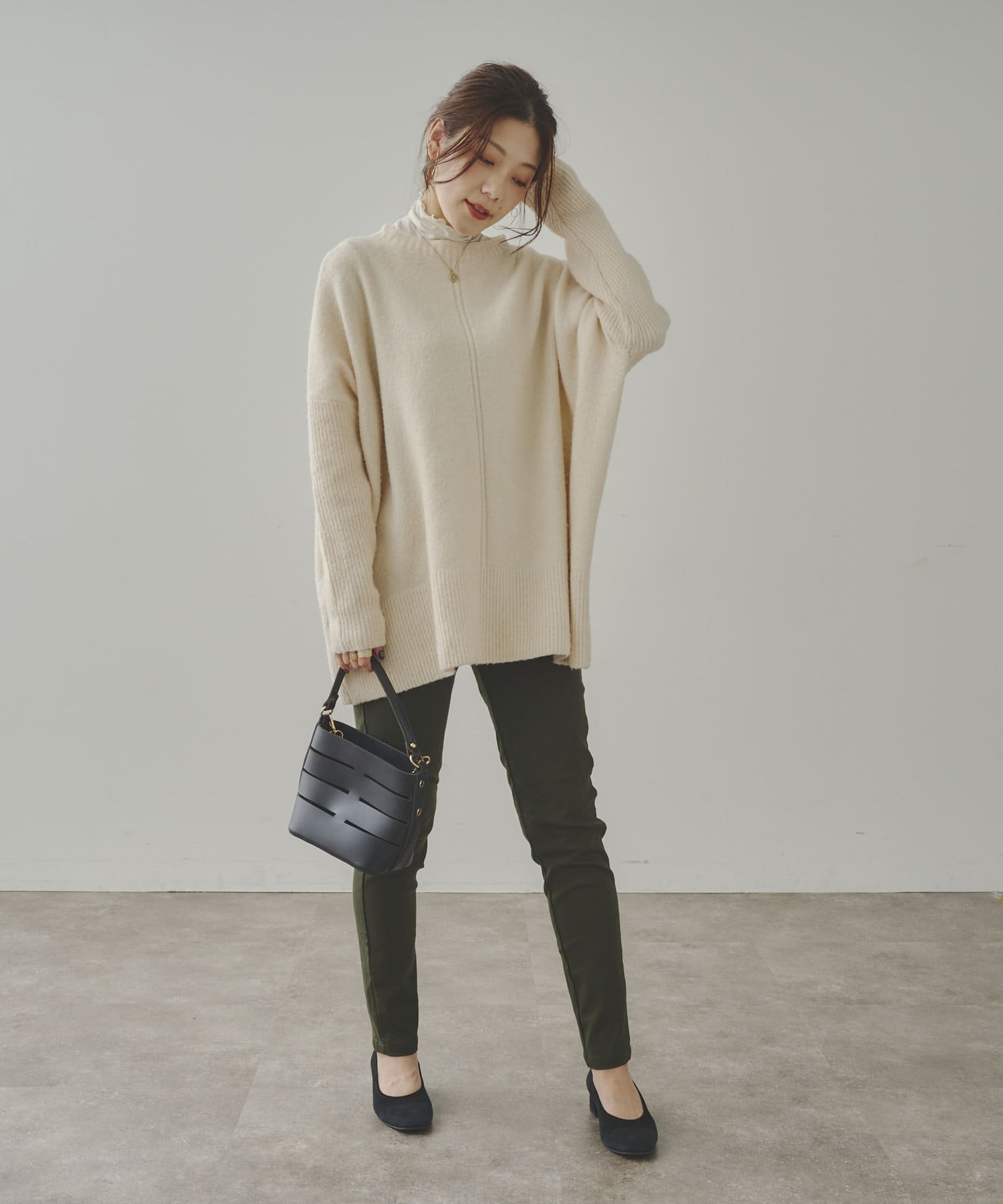 控えめなボトルネックで首回りのもたつきがなく、マフラーを巻くなど首元のお洒落も楽しんでいただけます。