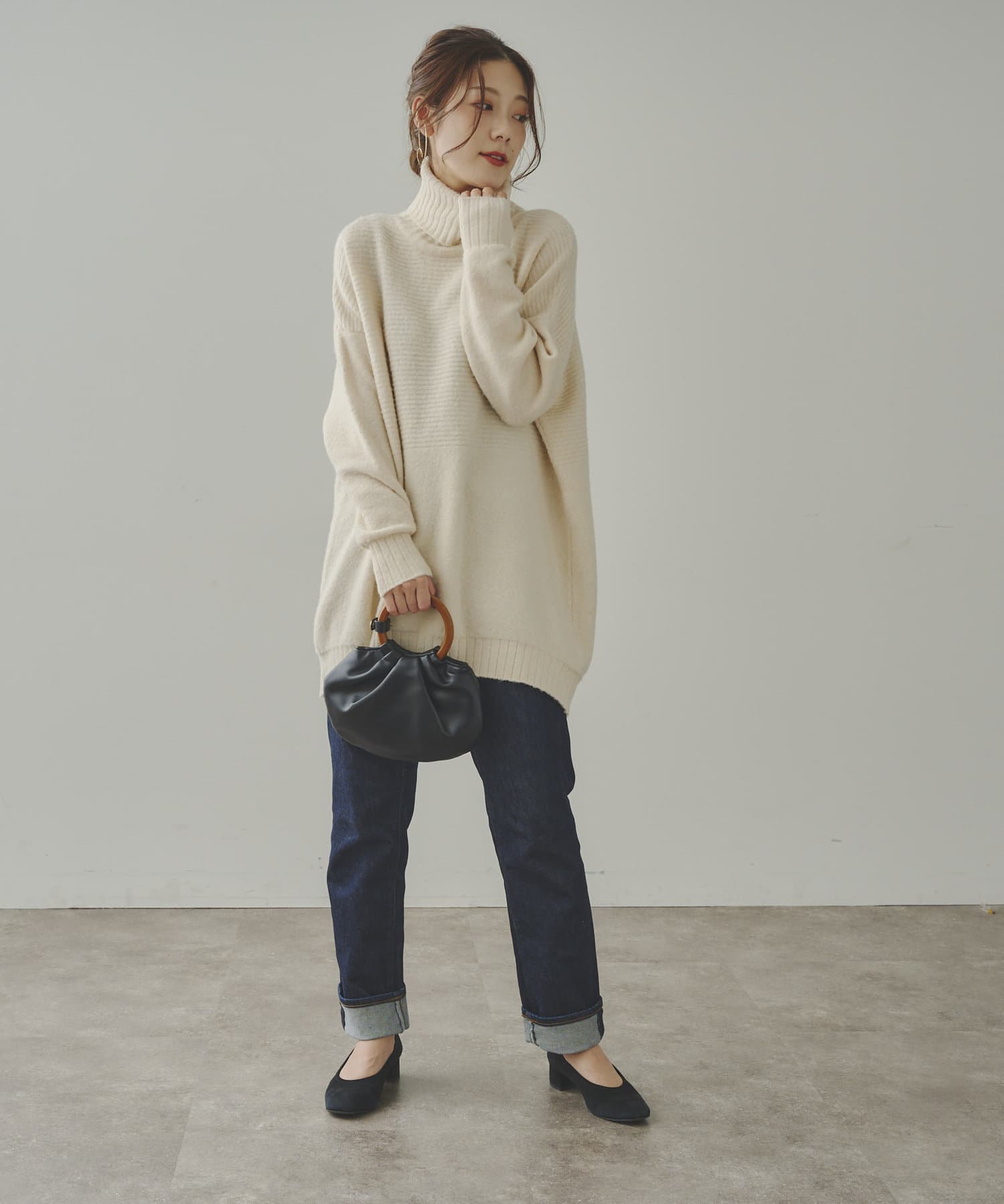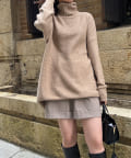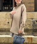ヤク混ハイネックチュニックプルオーバー