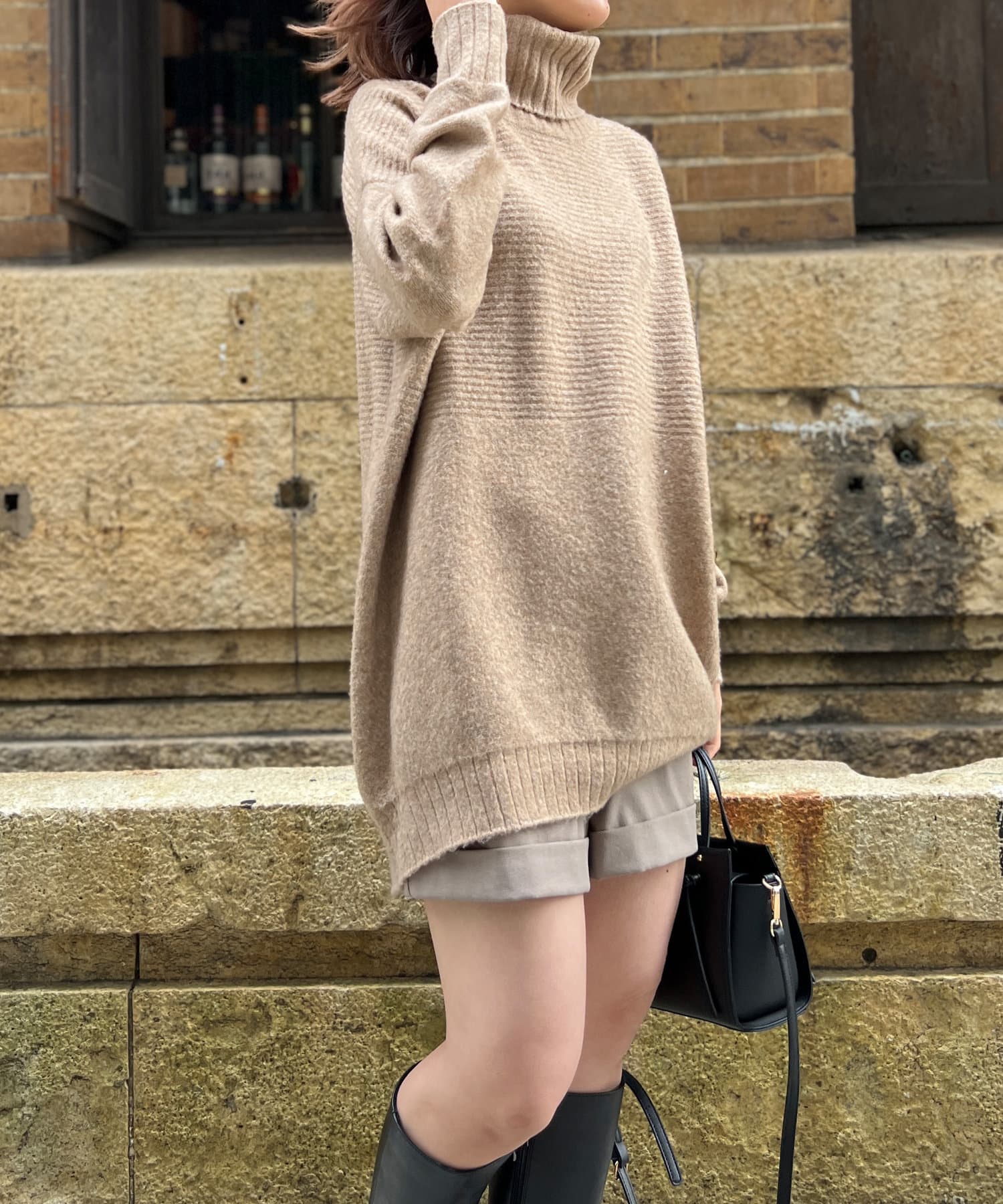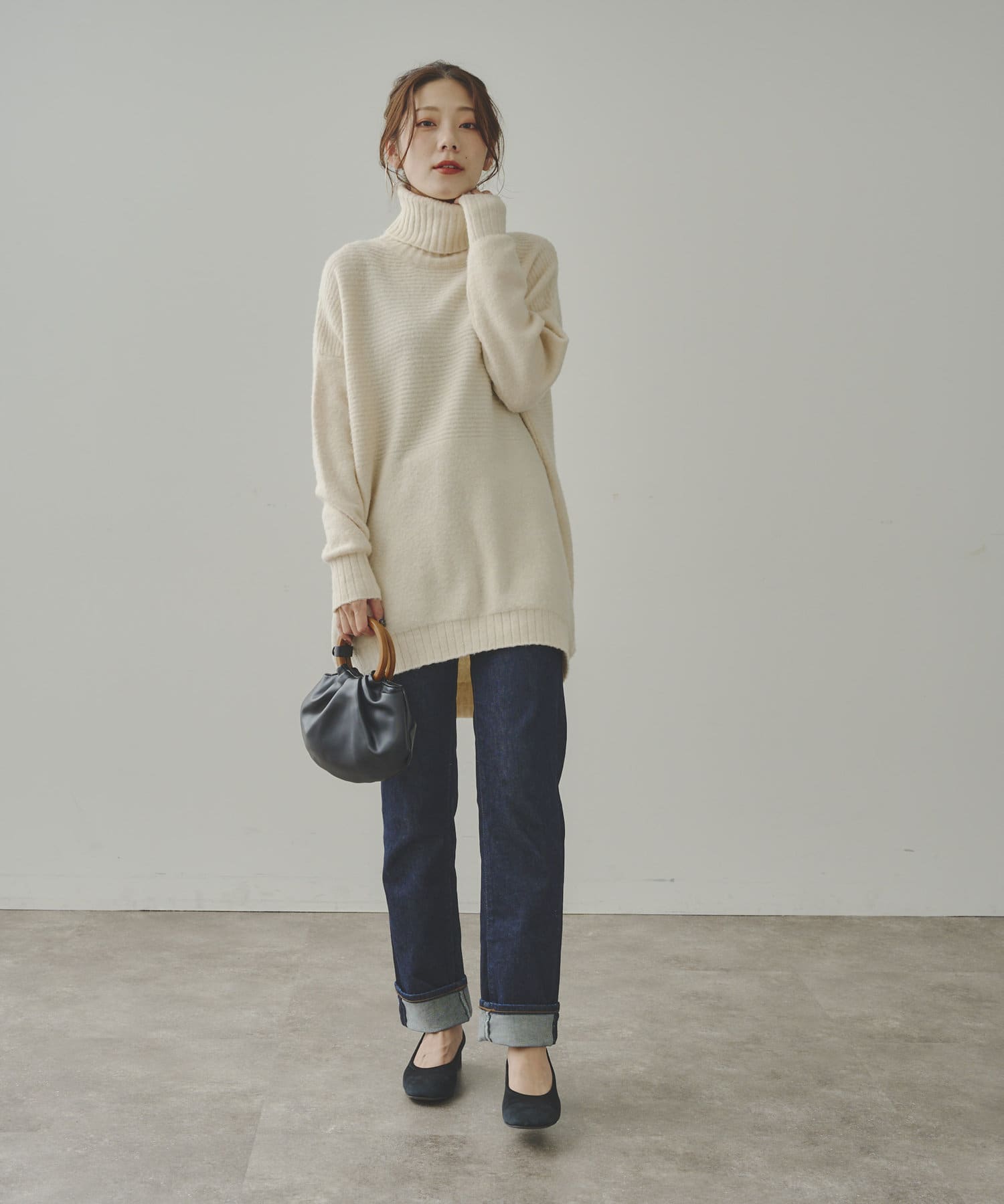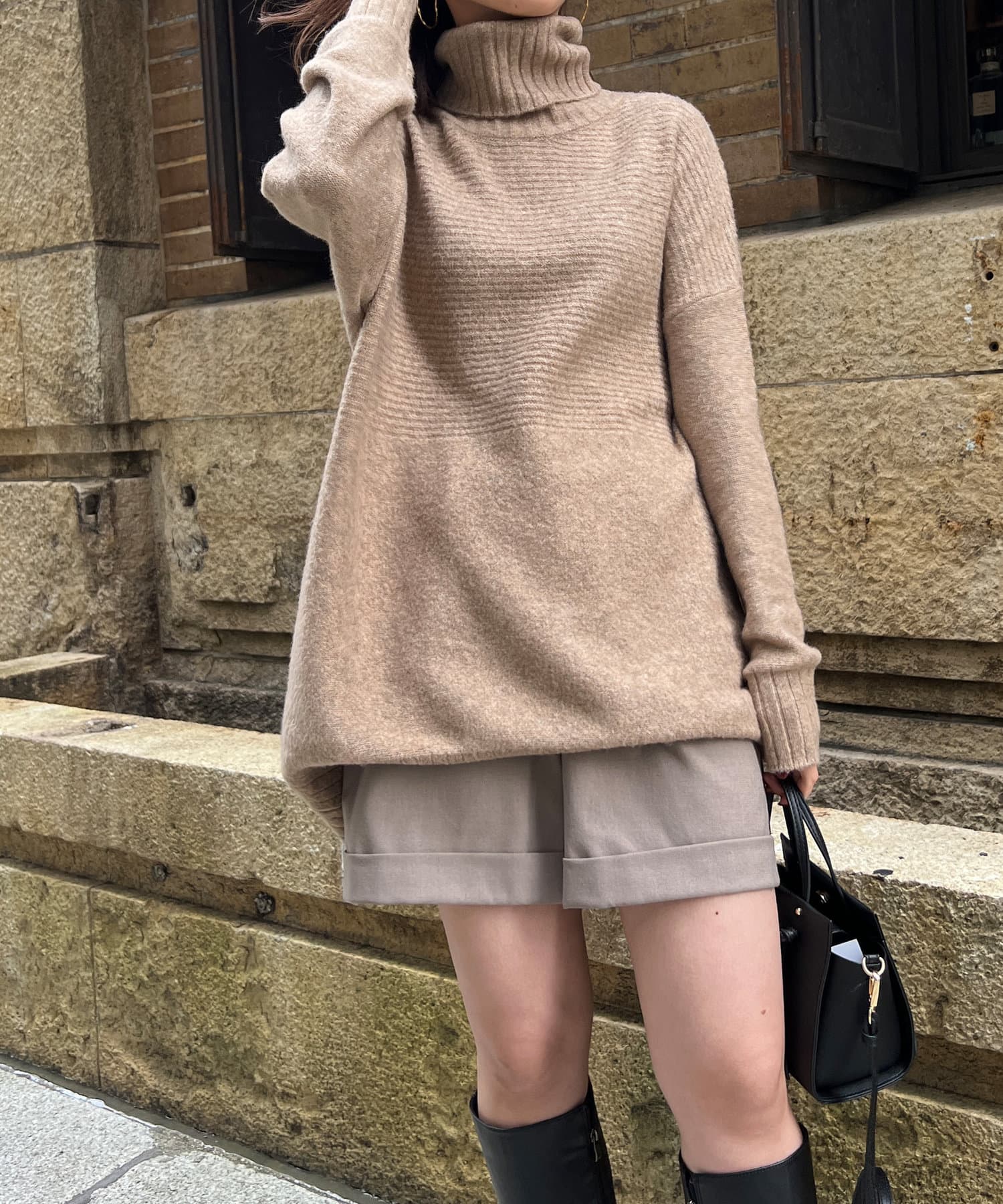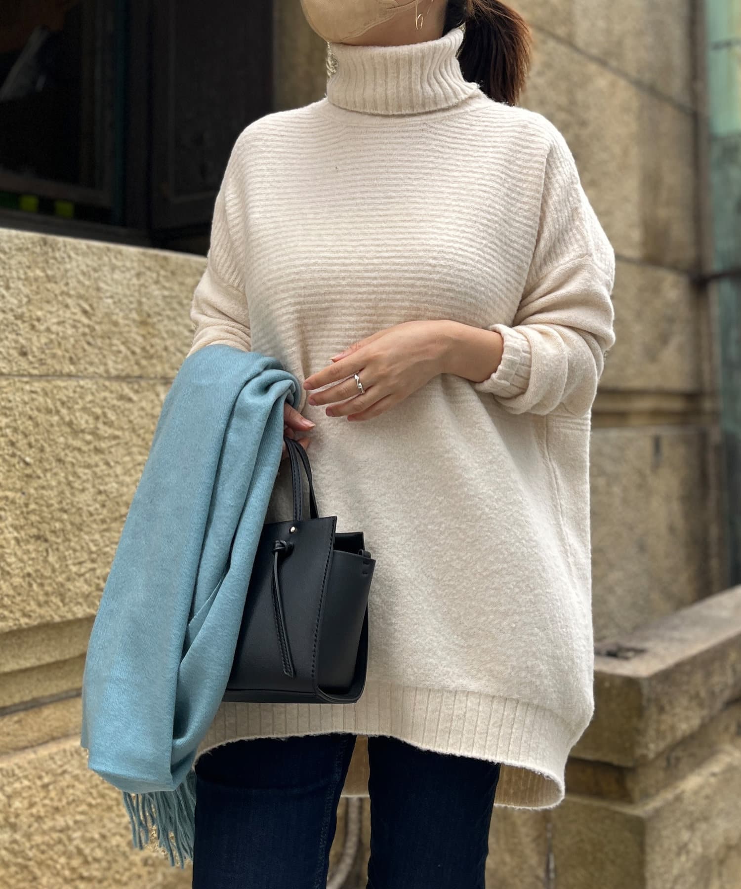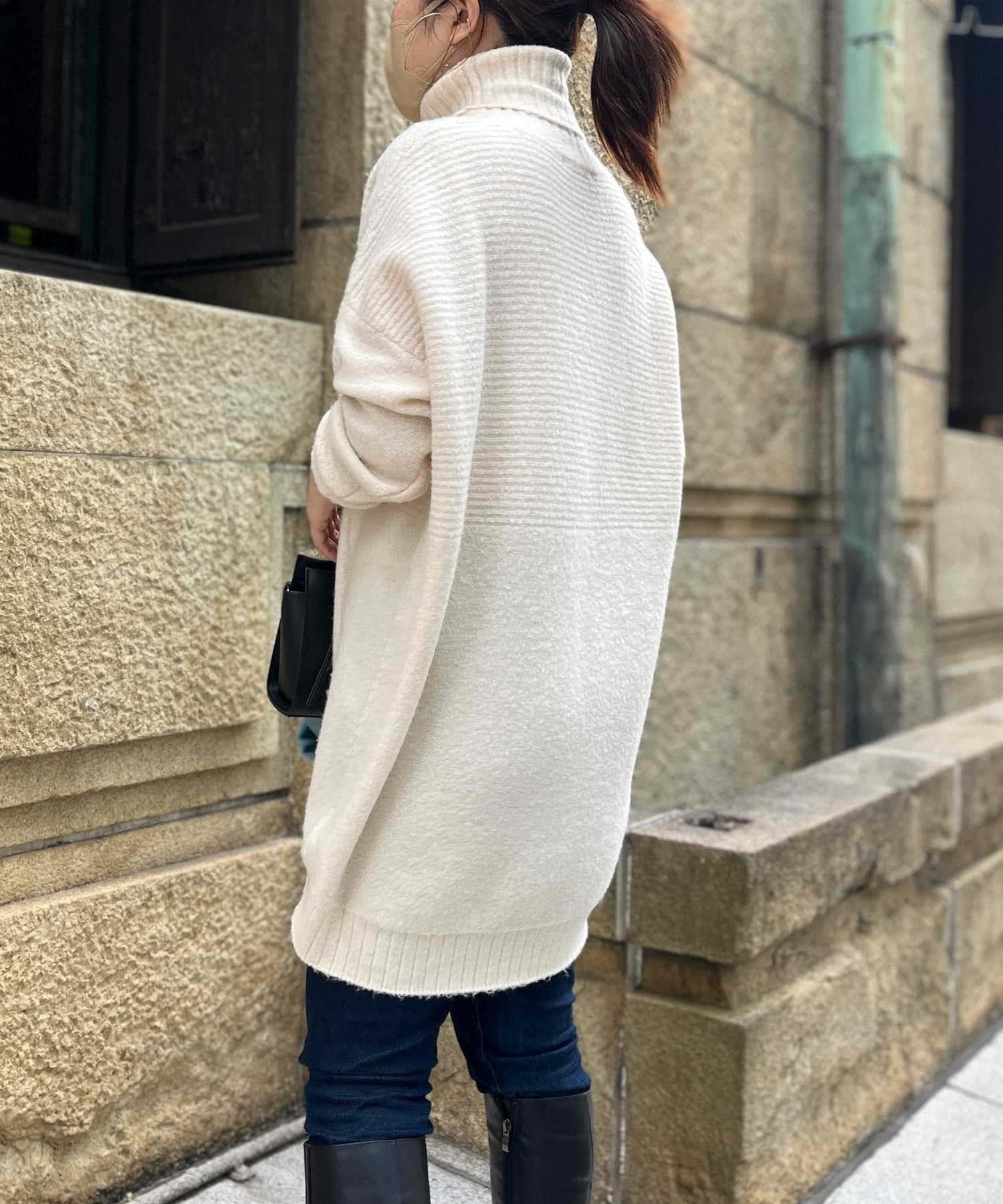 ・衿は太リブのタートルネックになっているので、真冬でも安心の暖かさです。