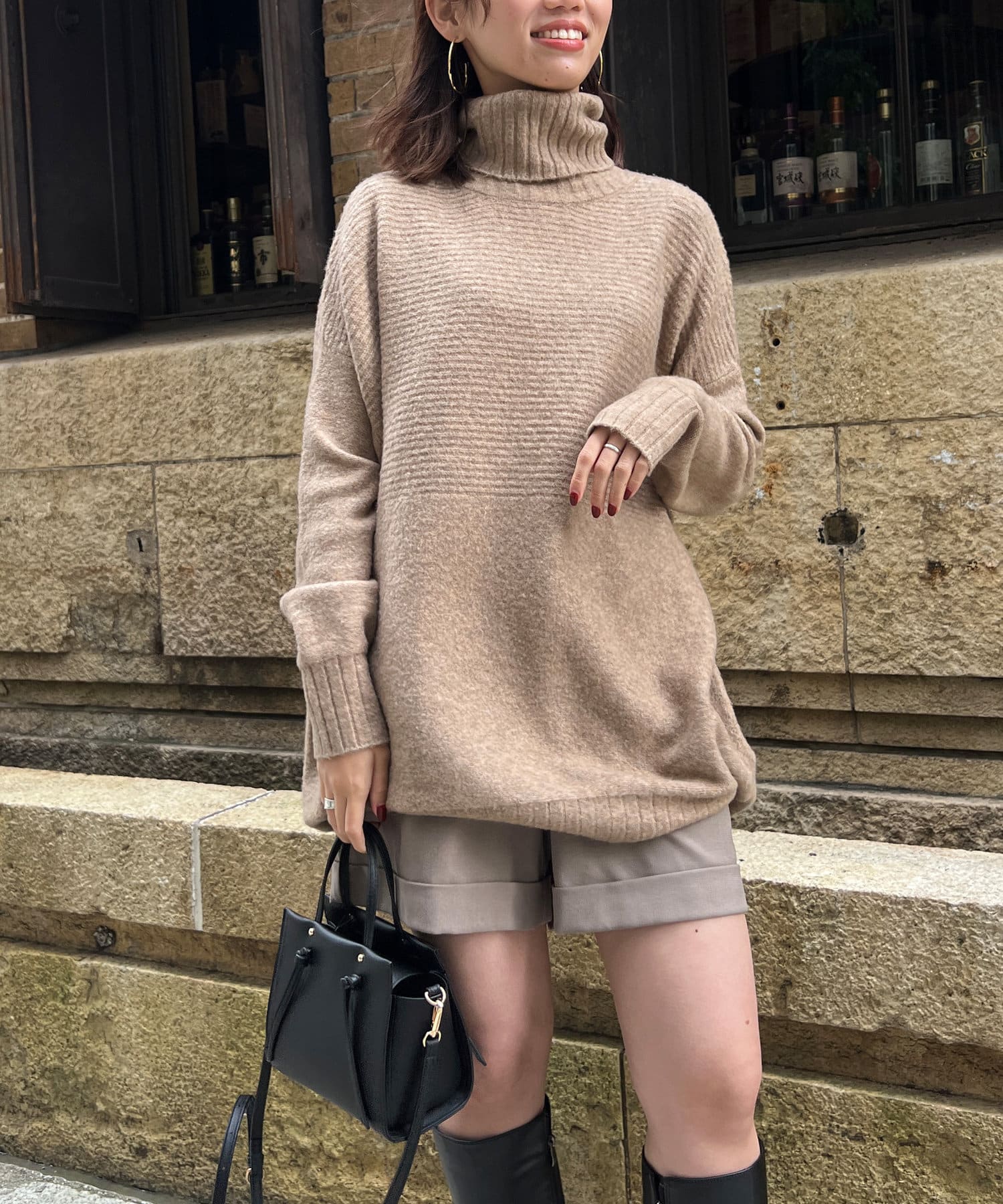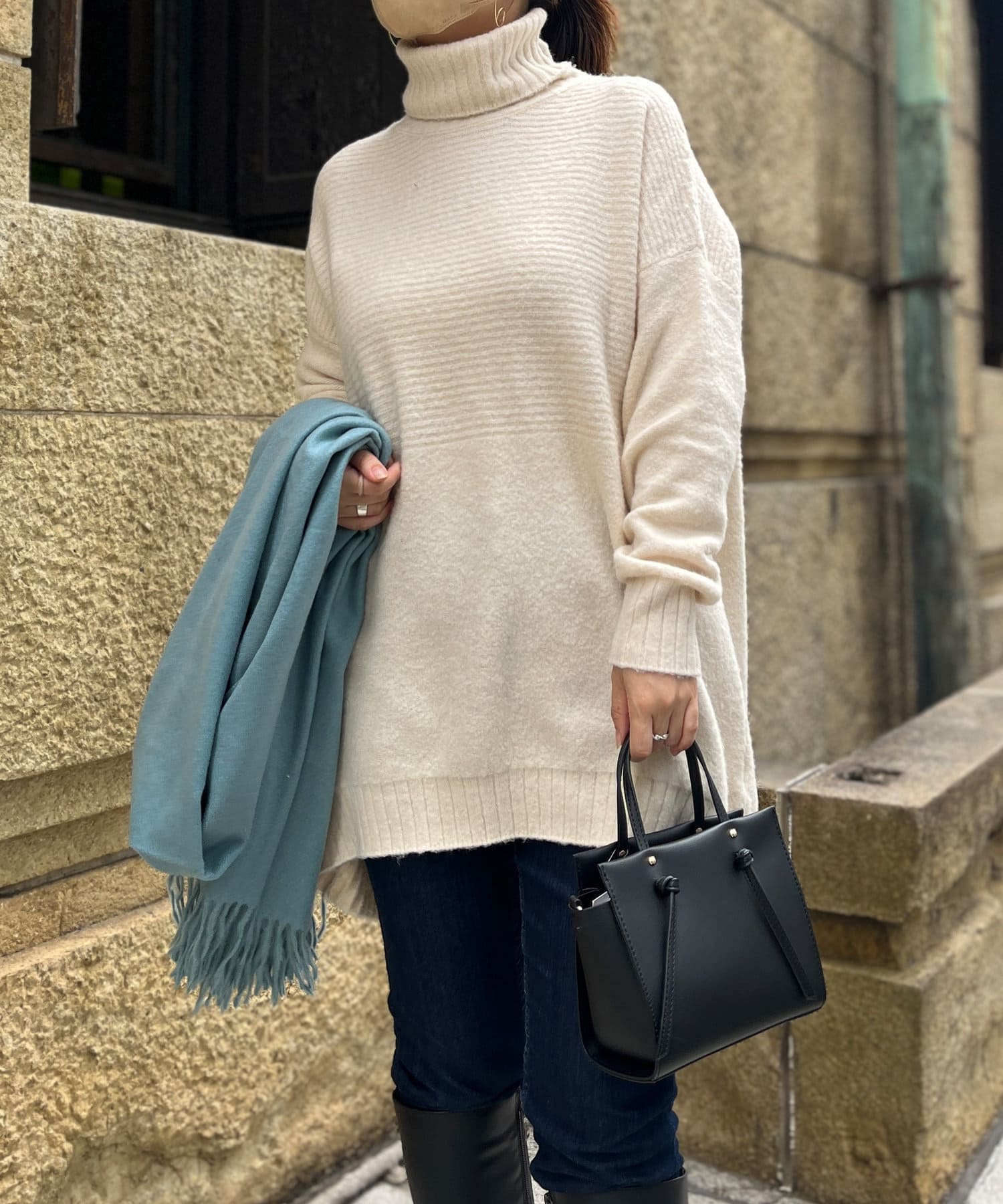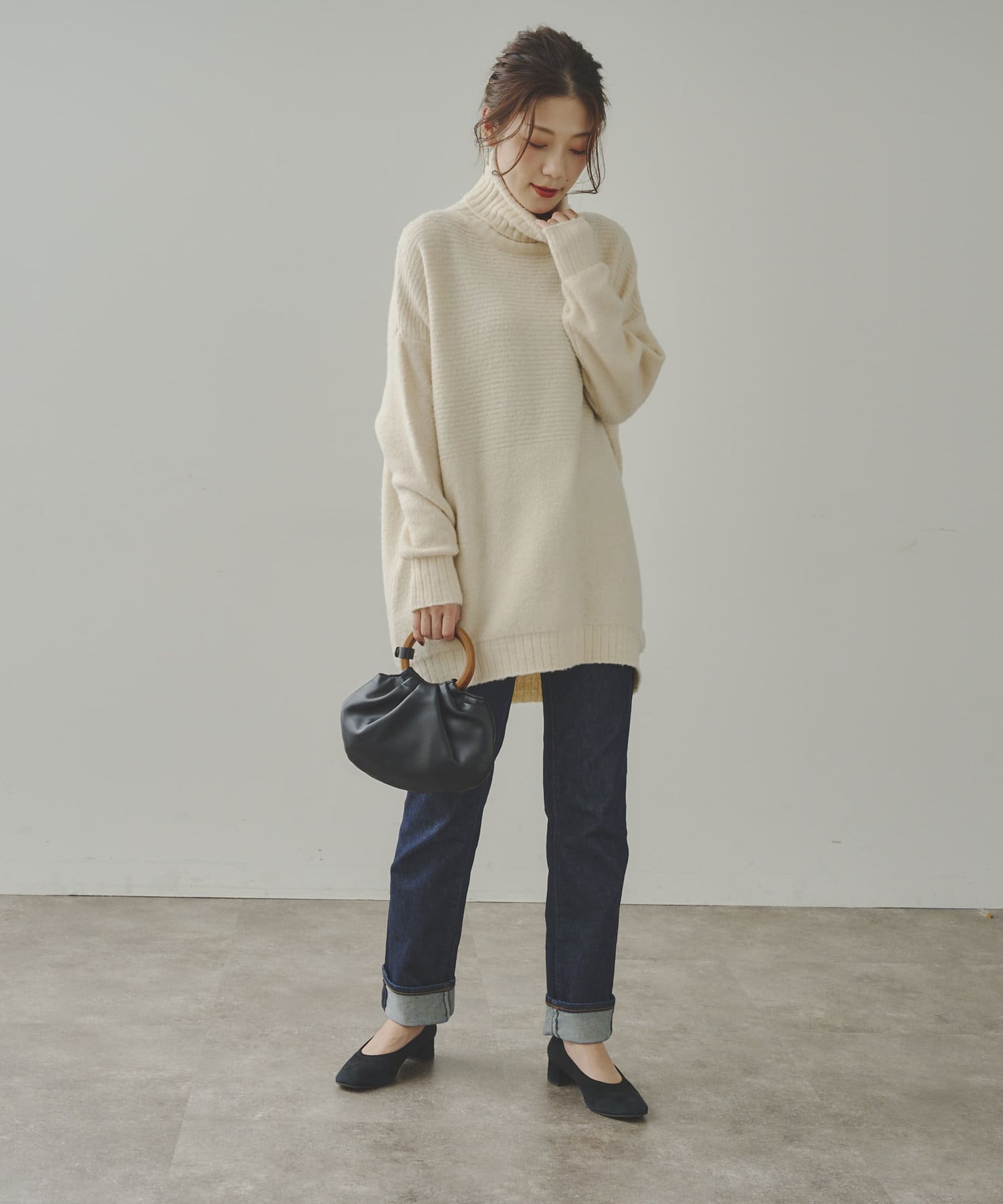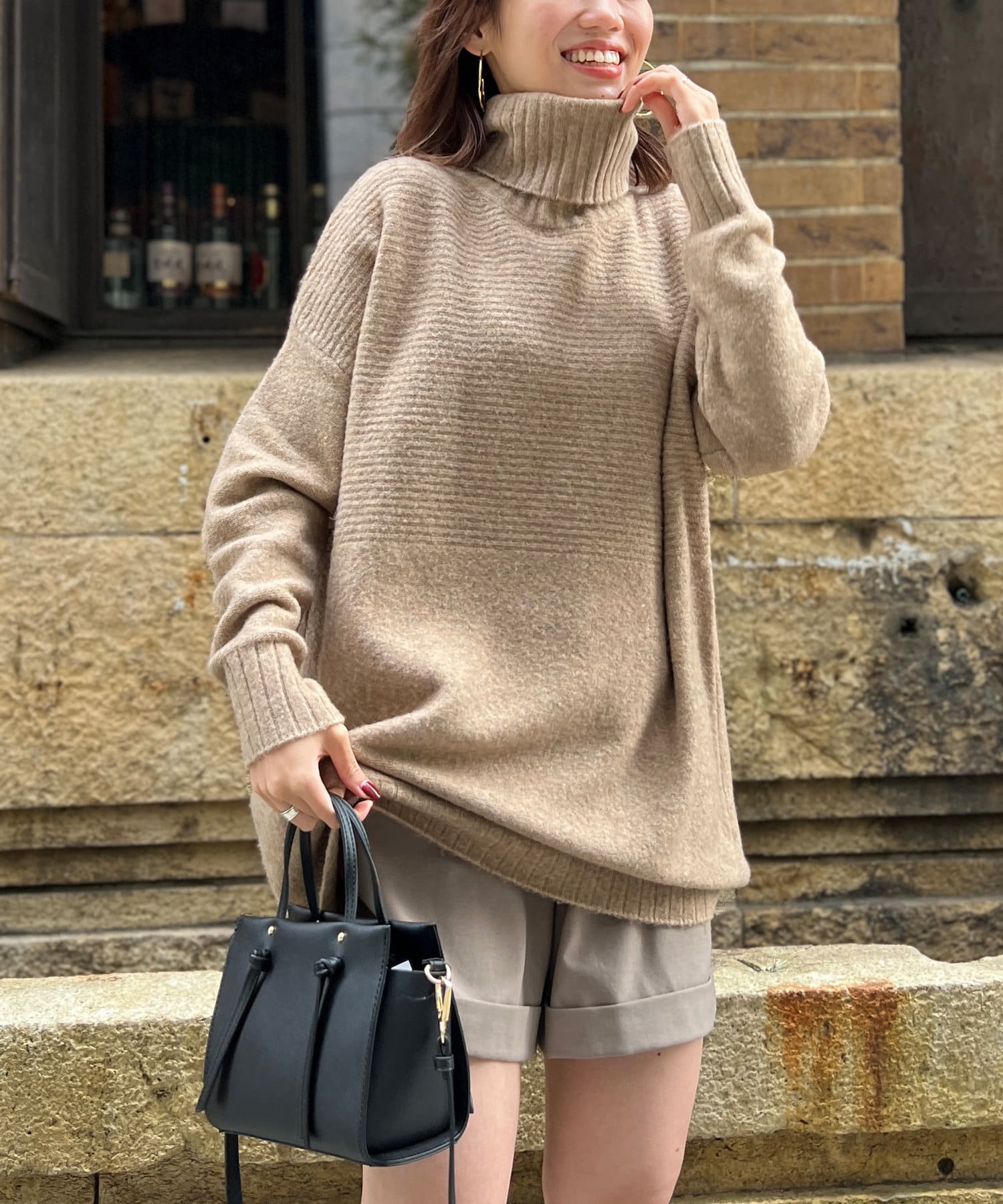 ・衿は太リブのタートルネックになっているので、真冬でも安心の暖かさです。