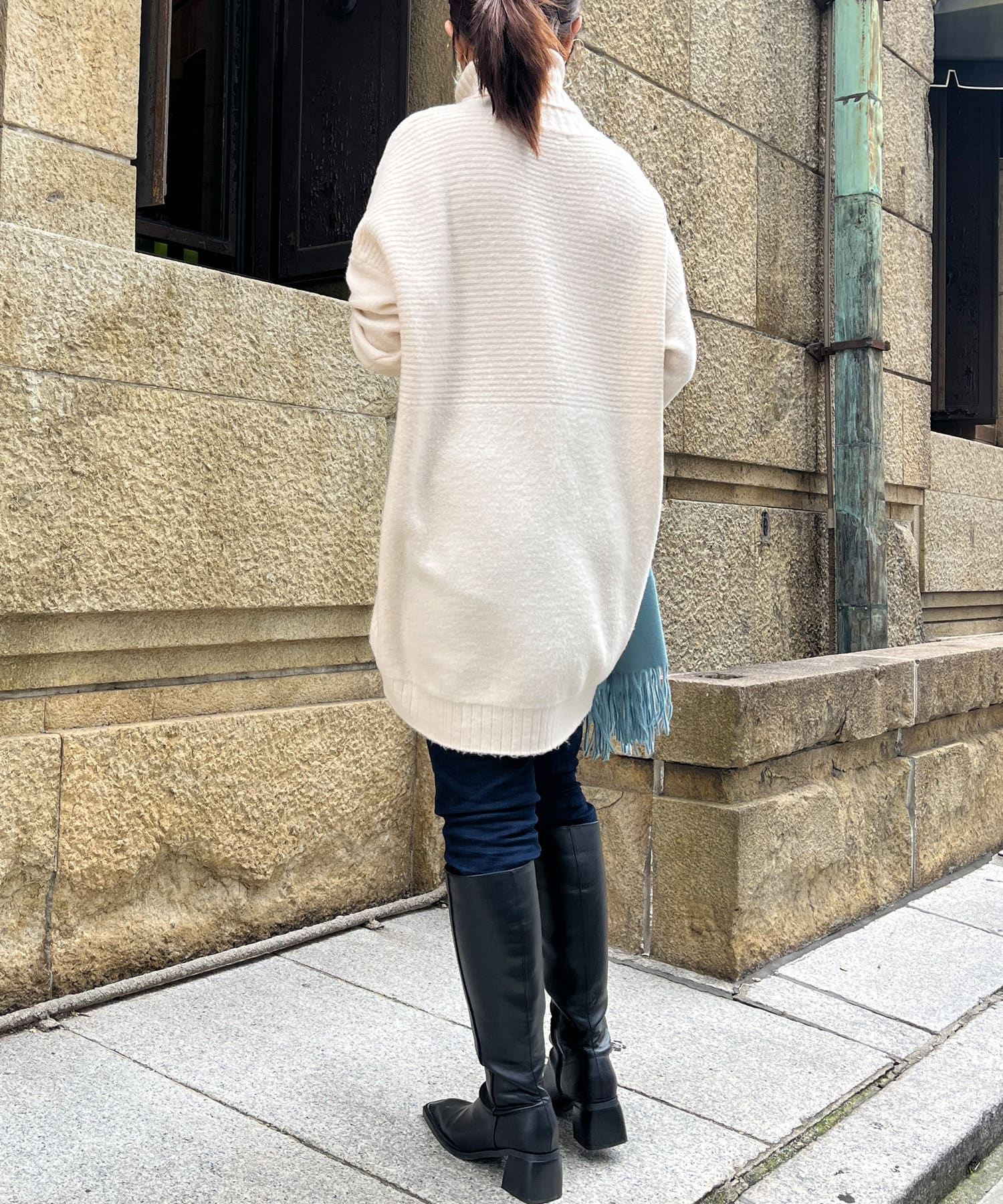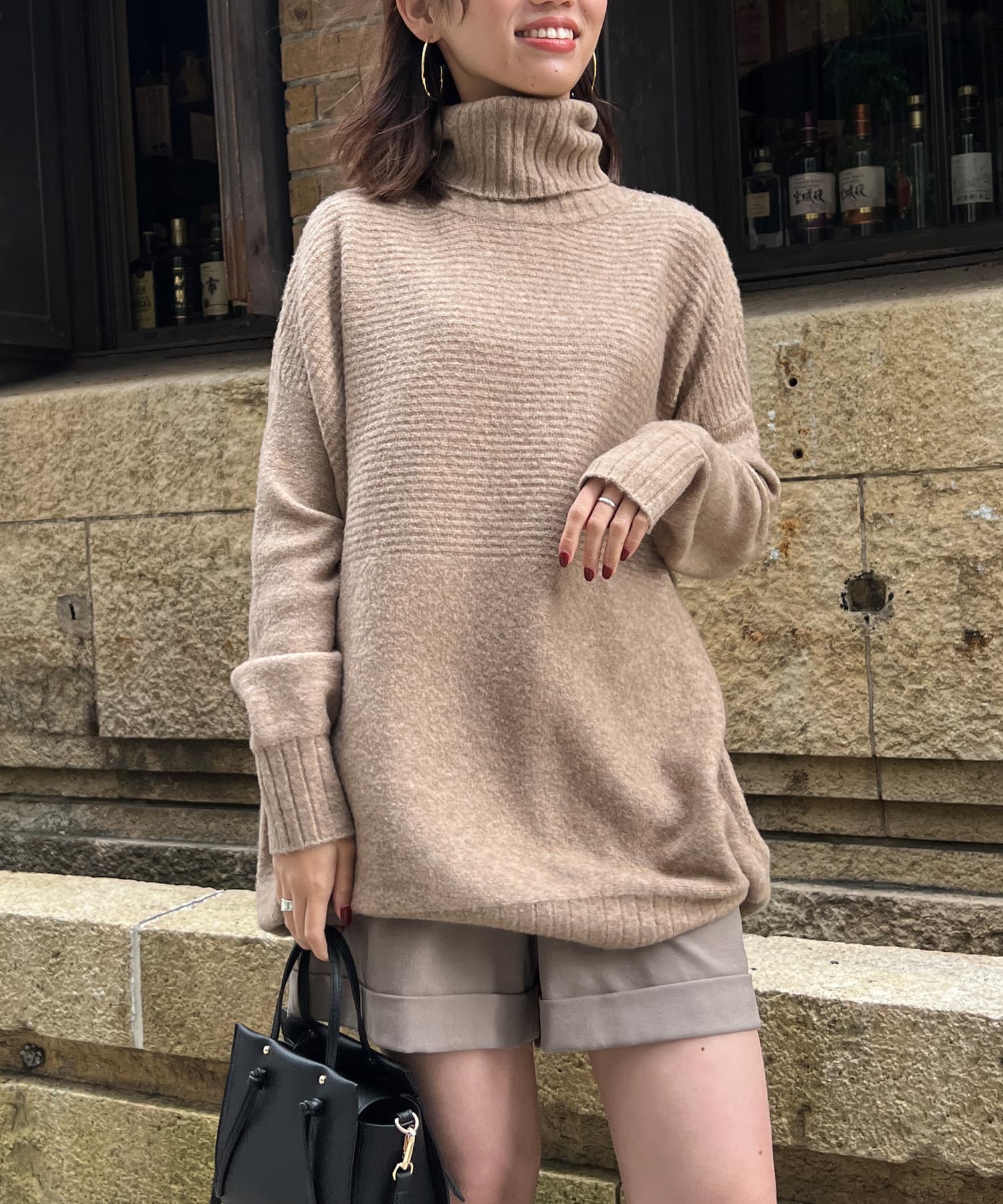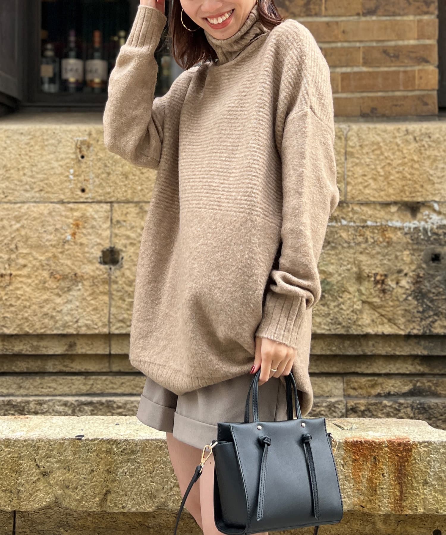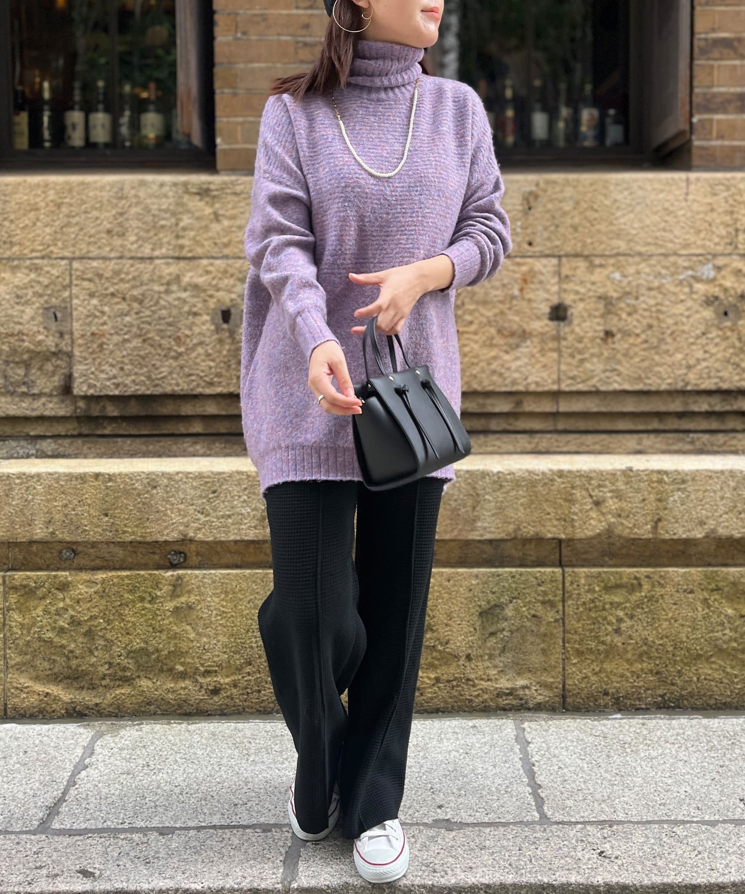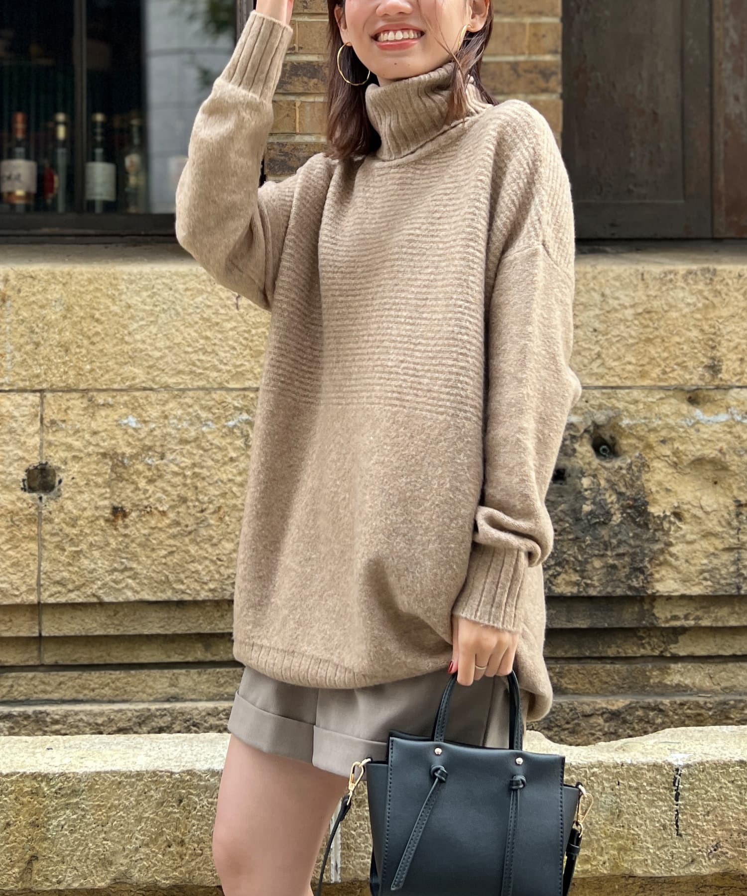 ・衿は太リブのタートルネックになっているので、真冬でも安心の暖かさです。