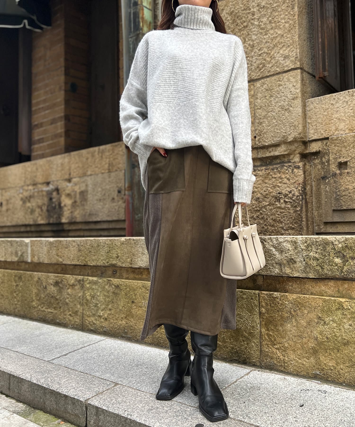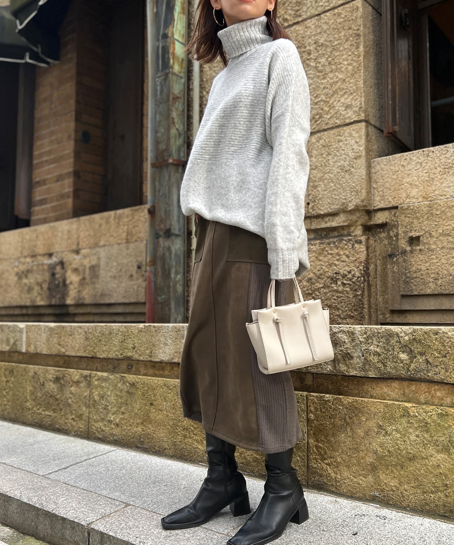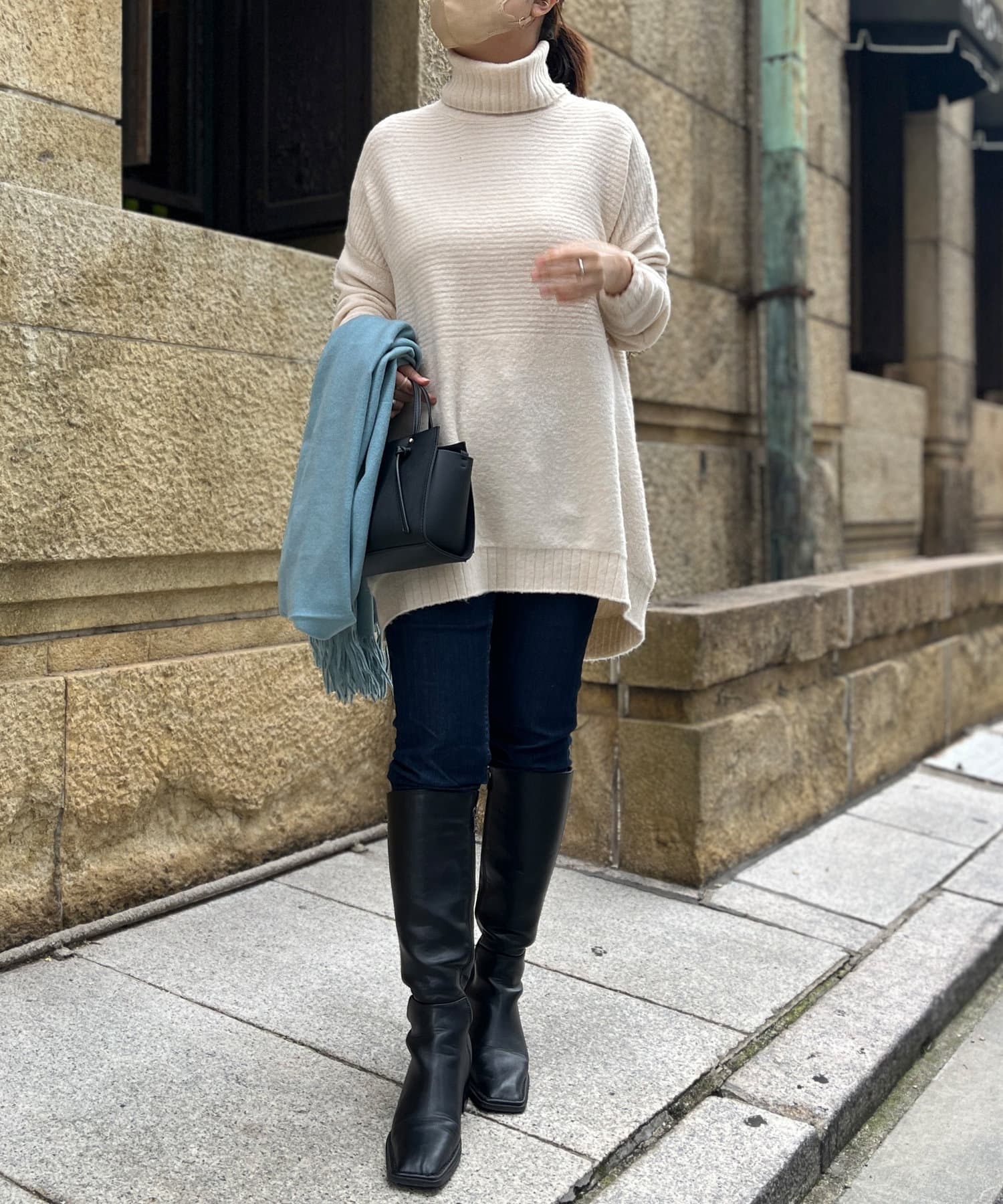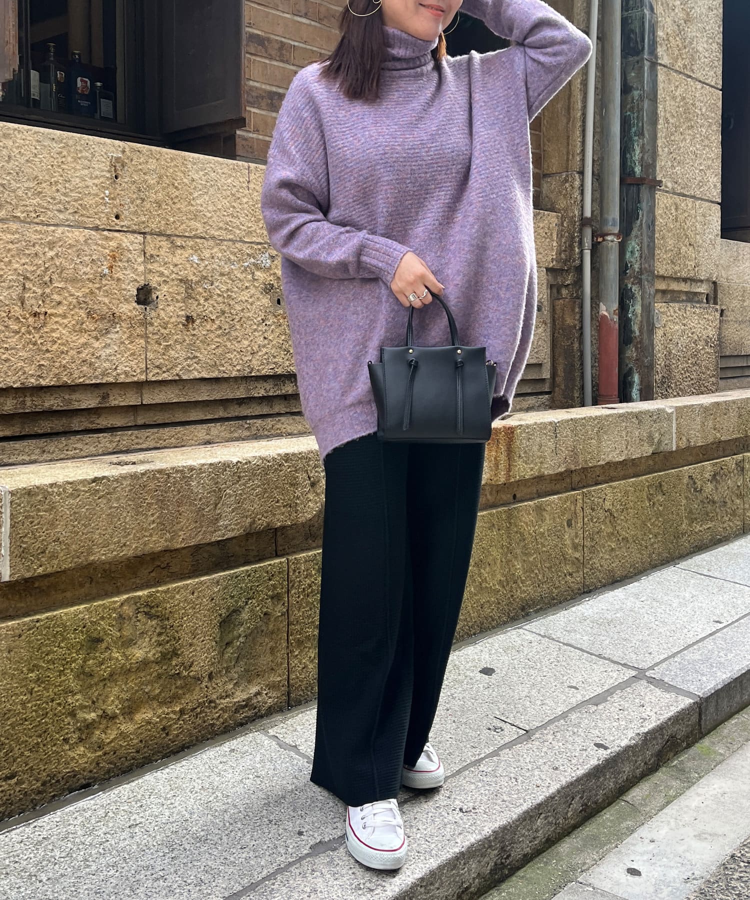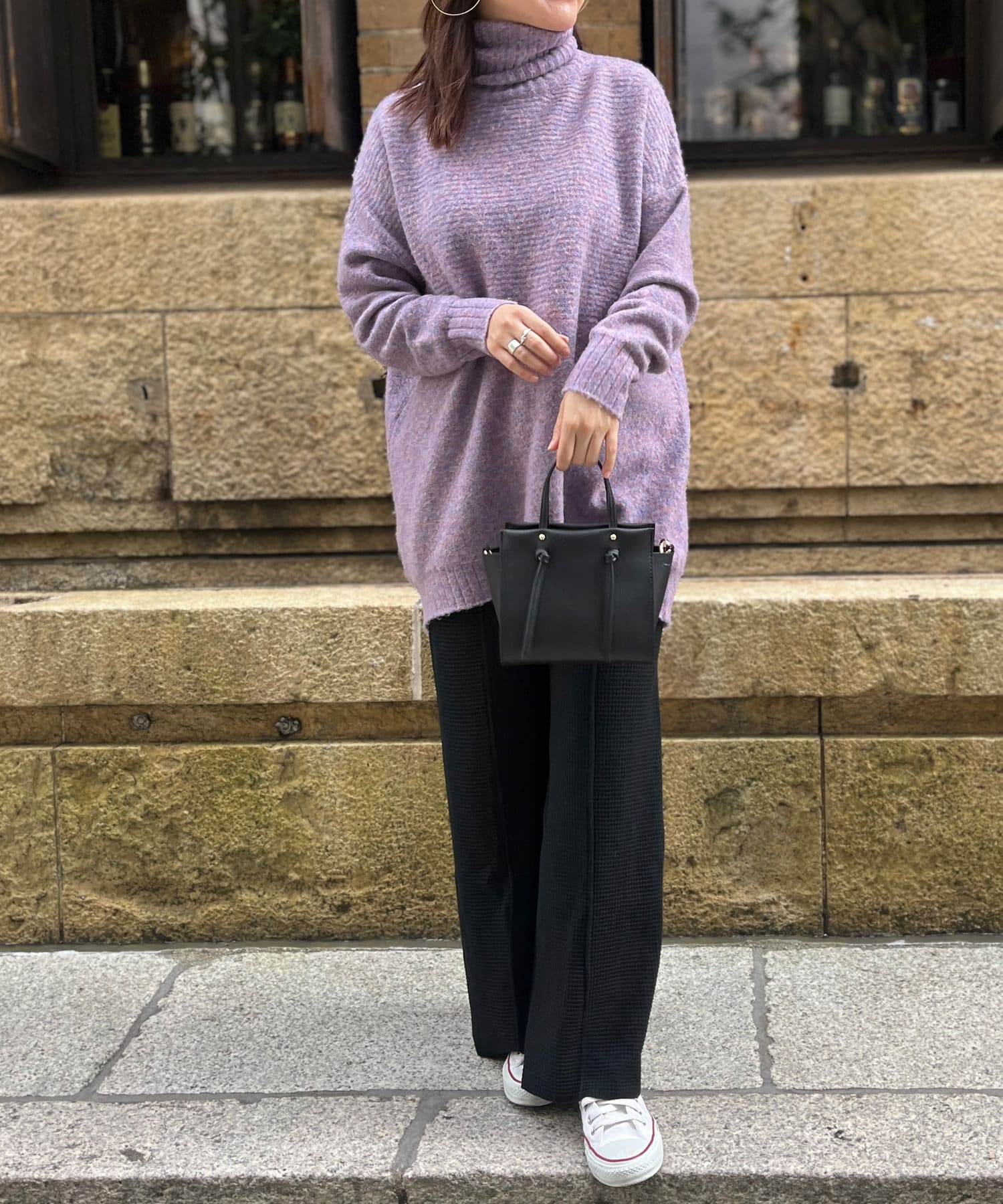 ・衿は太リブのタートルネックになっているので、真冬でも安心の暖かさです。