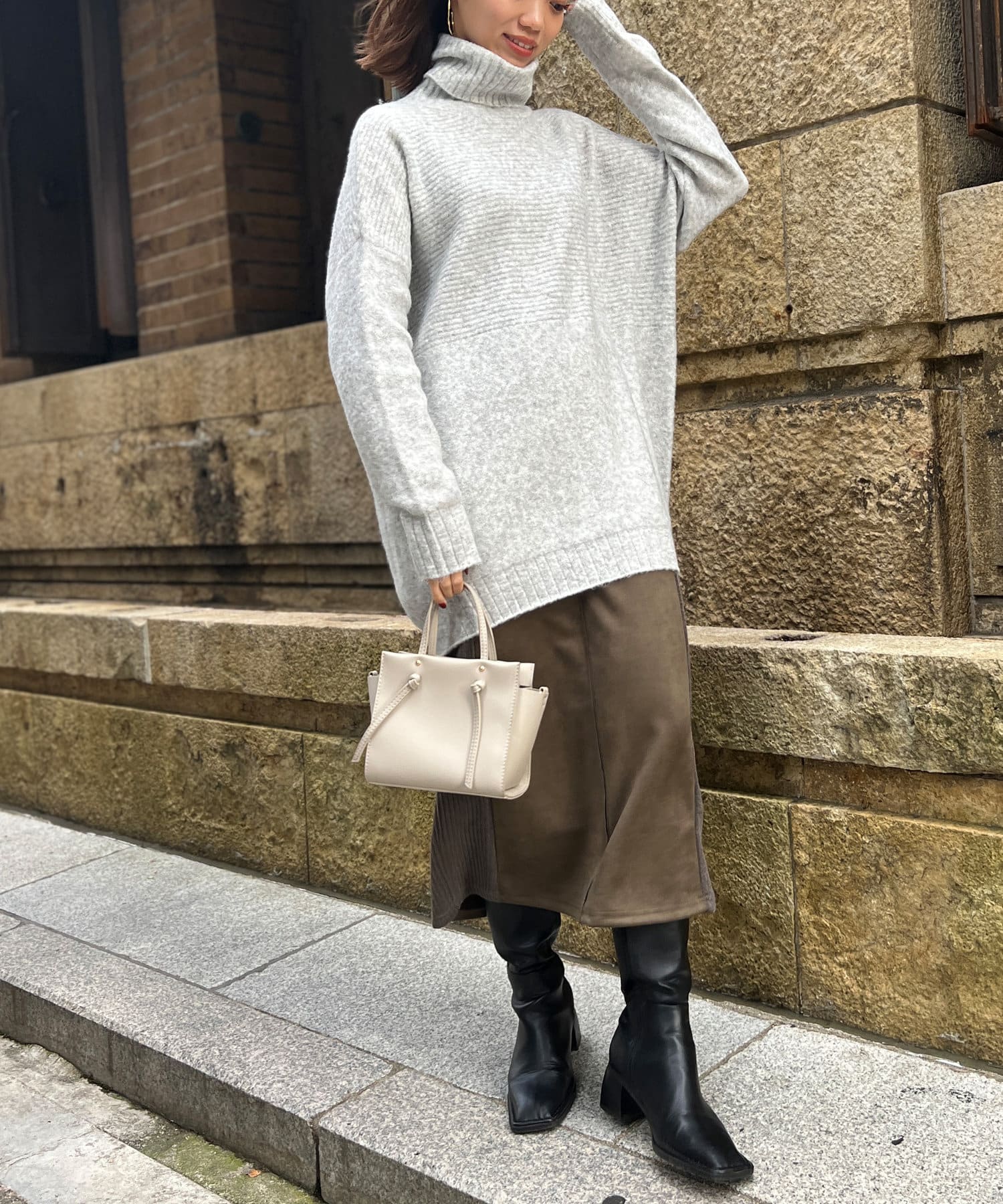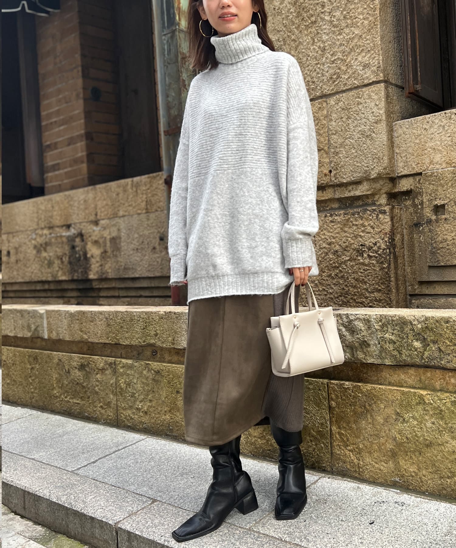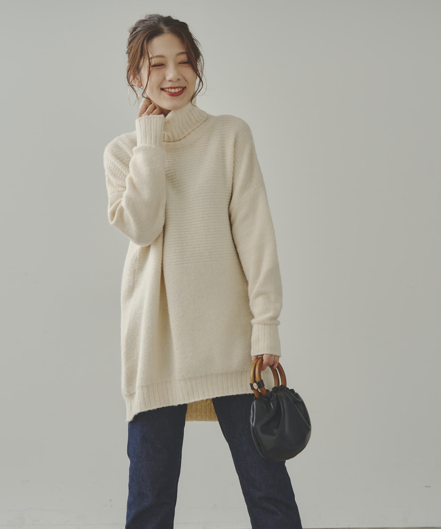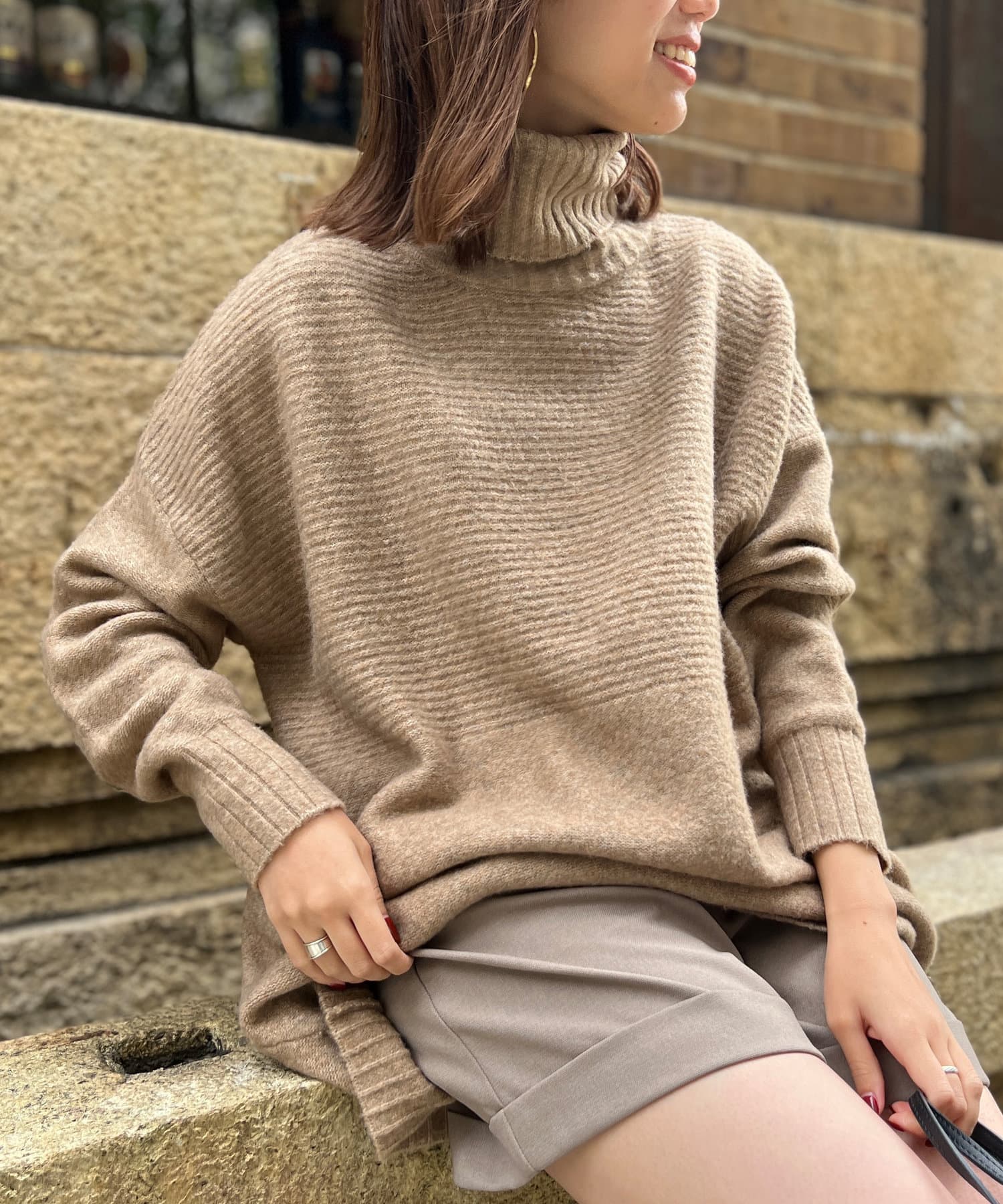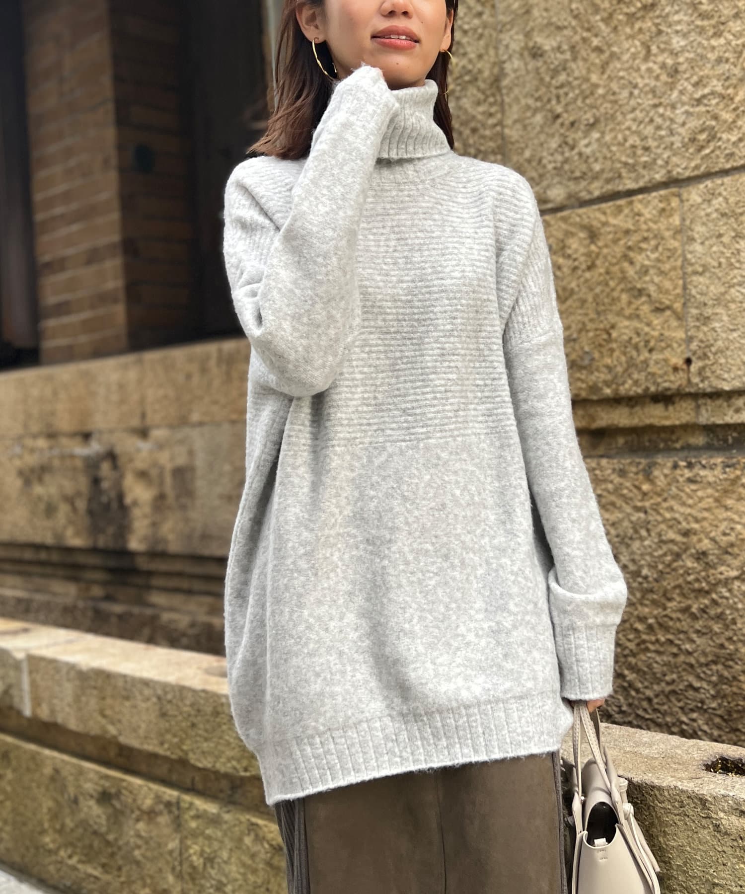しっとり滑らかな質感のチュニック丈ニット
