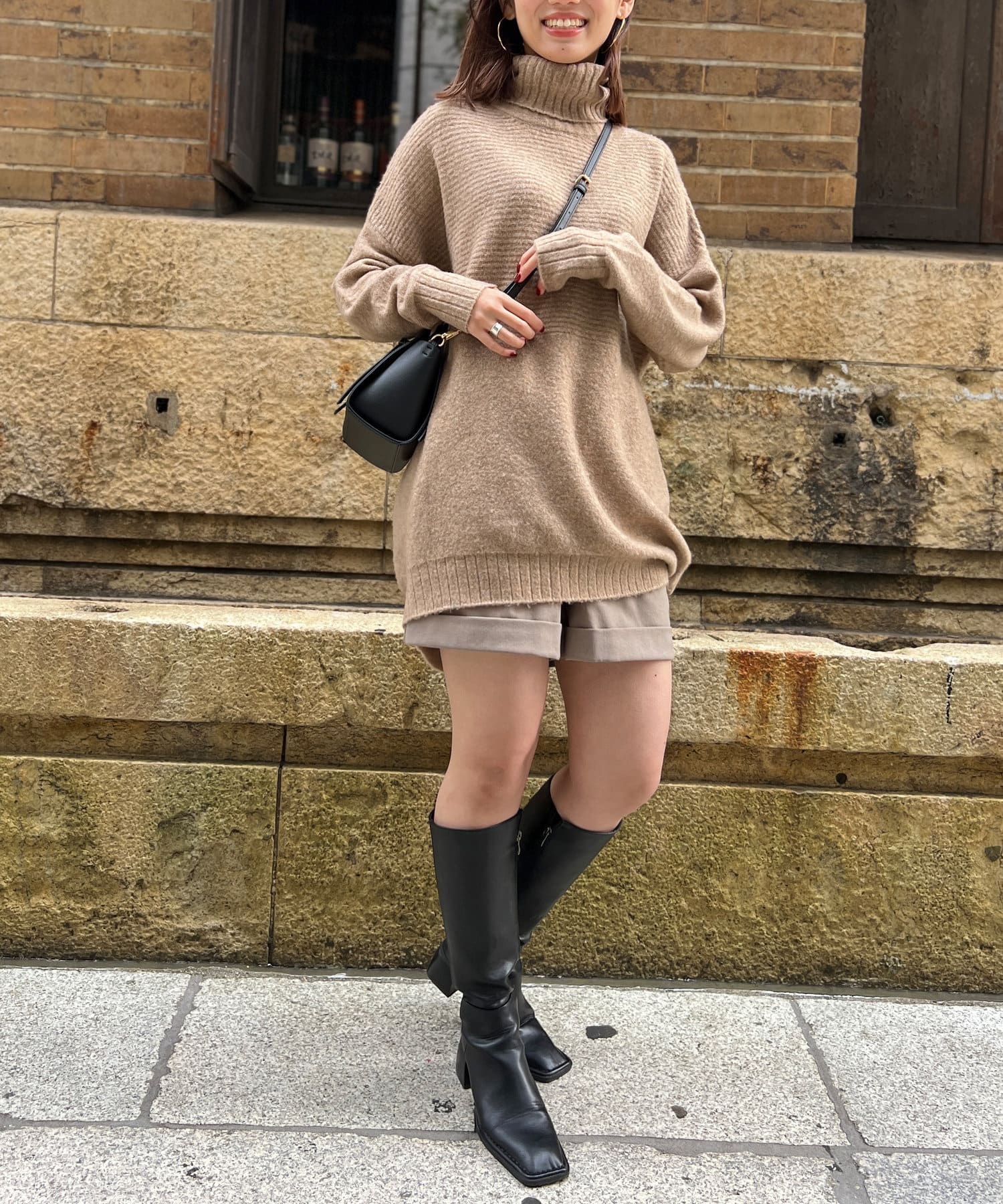 お尻が隠れる長さなので、ハーフパンツにロングブーツの