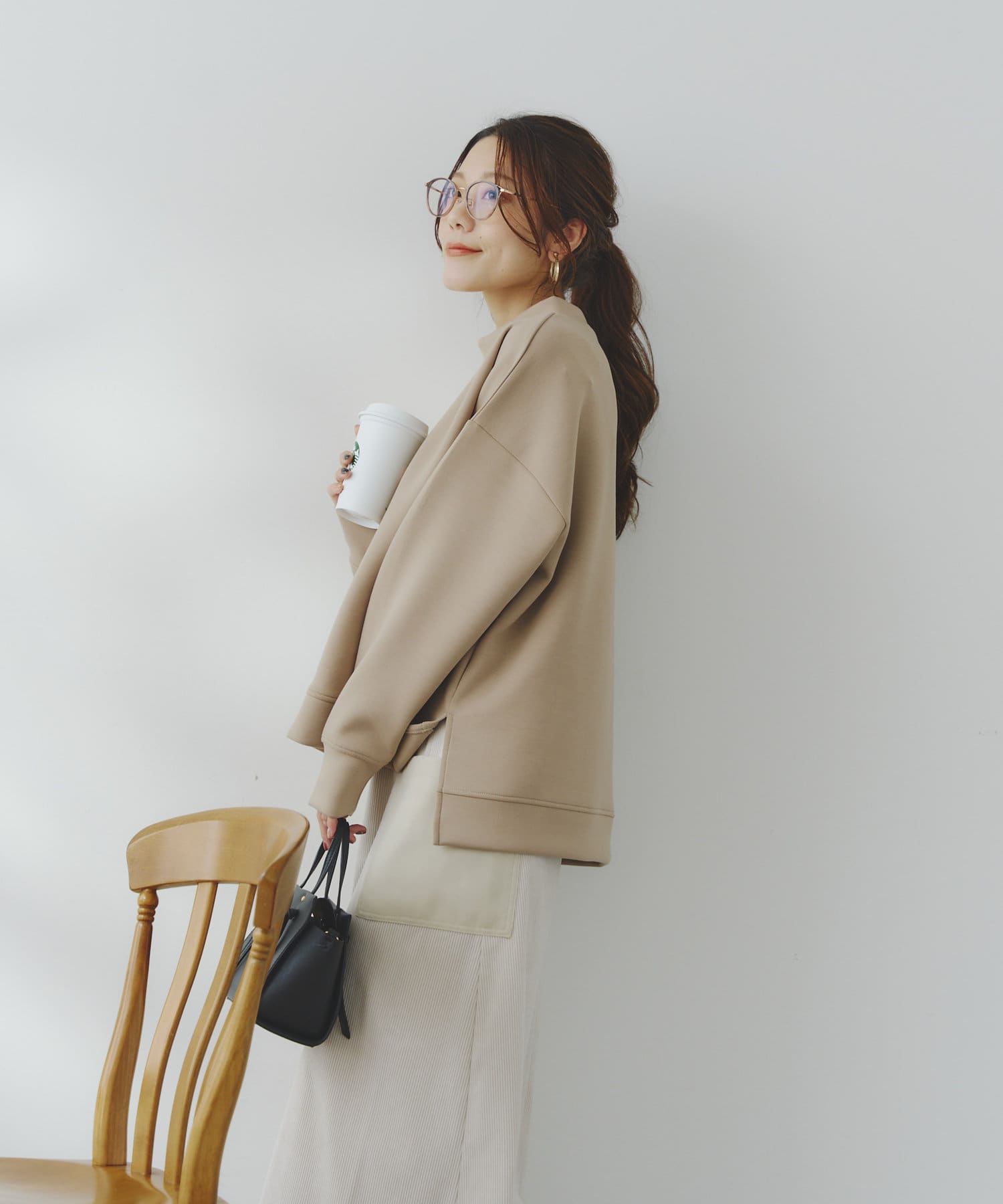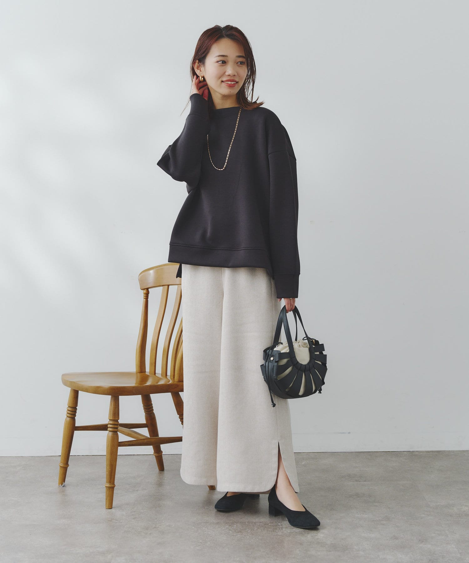 シンプルなアイテムなので、どんなアイテムとも合わせやすくバランス良く着ていただけます。