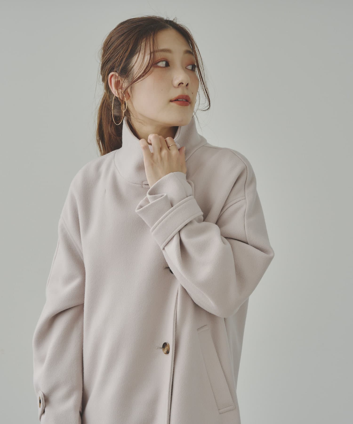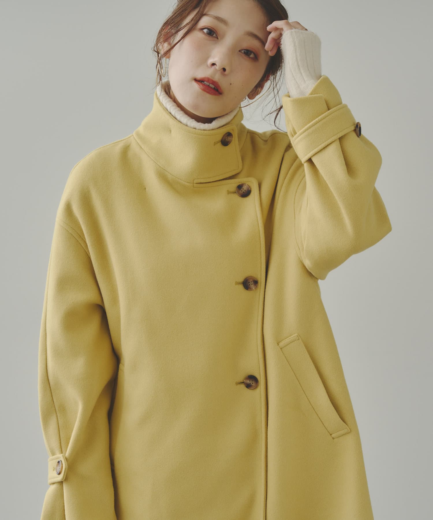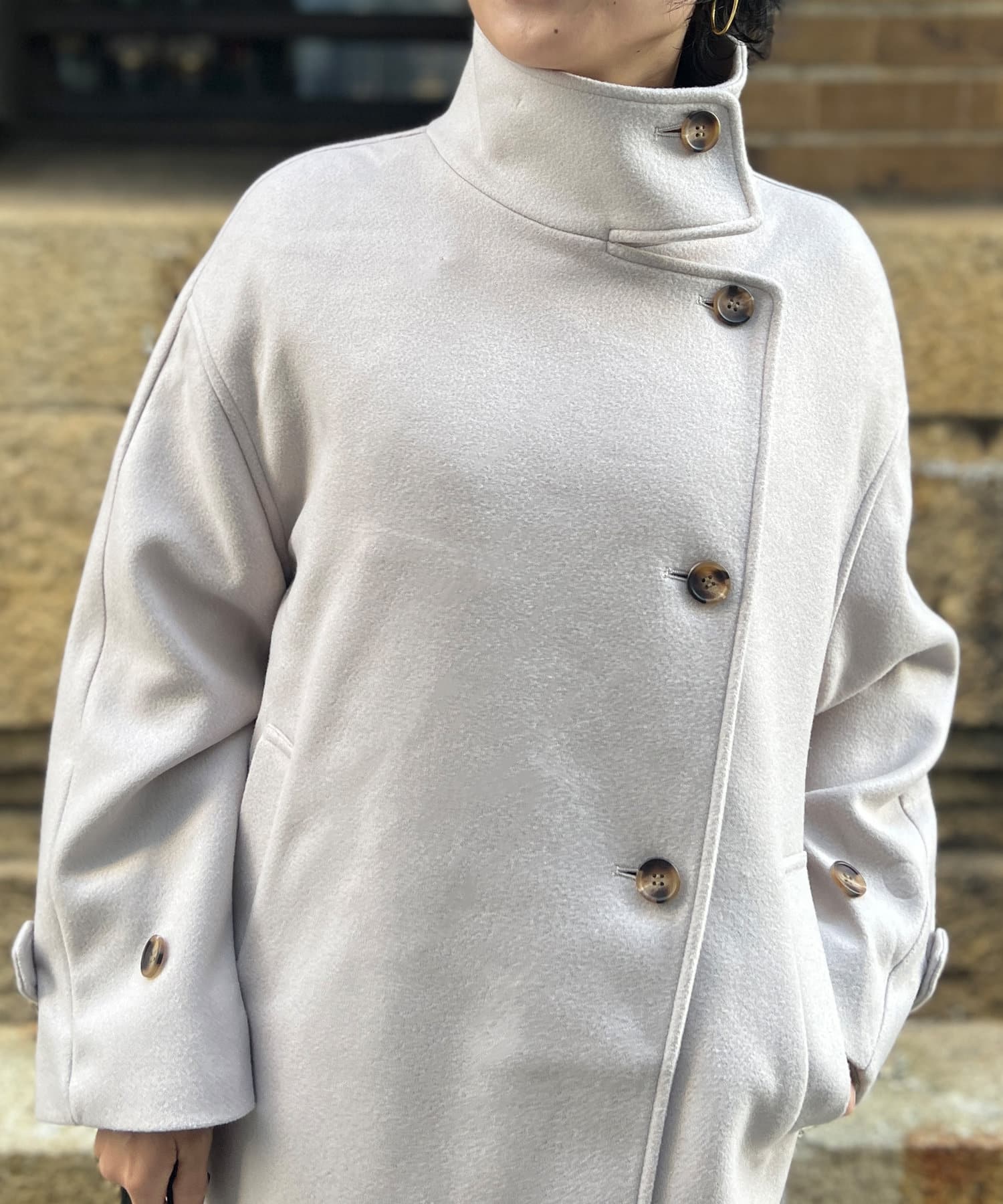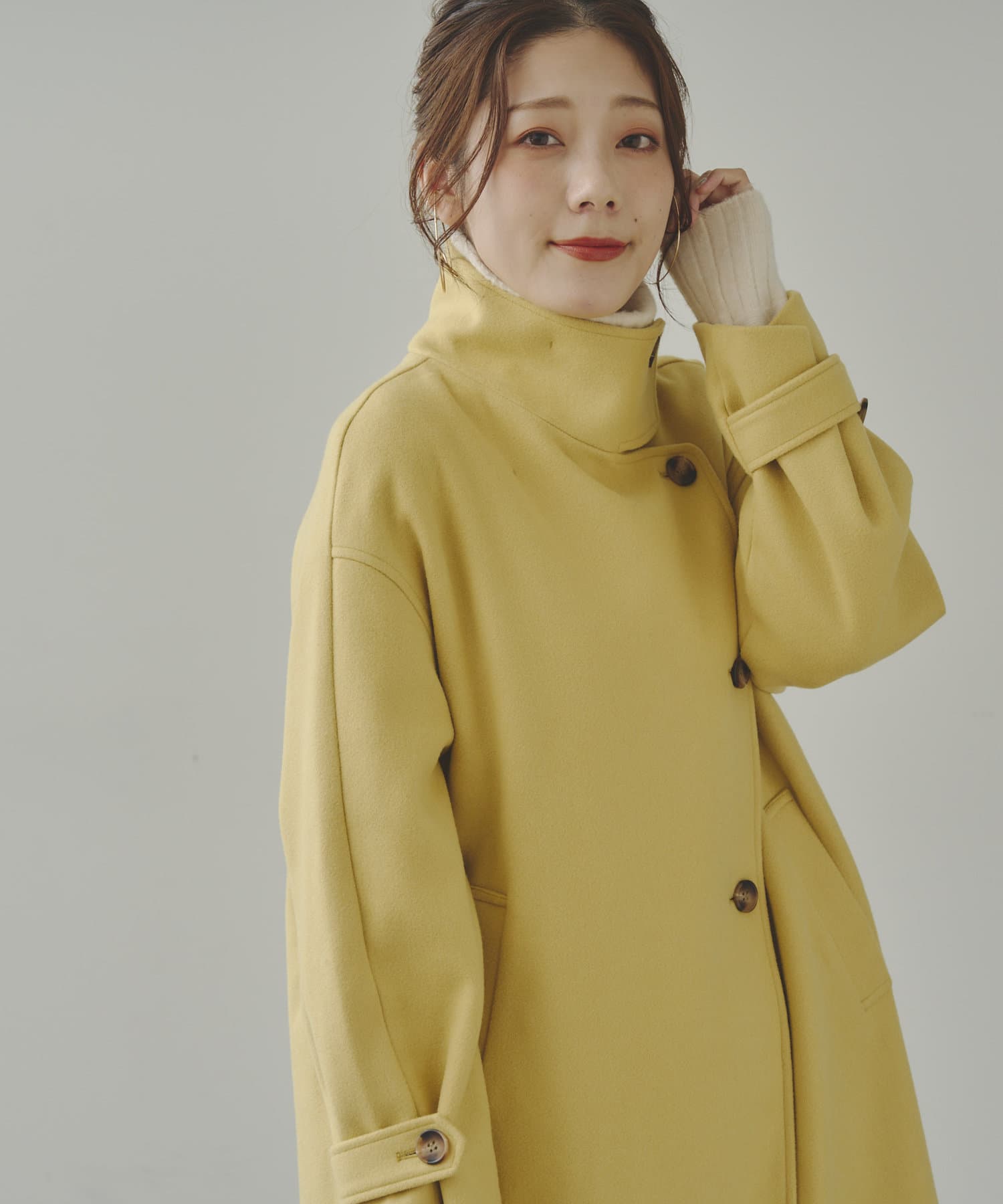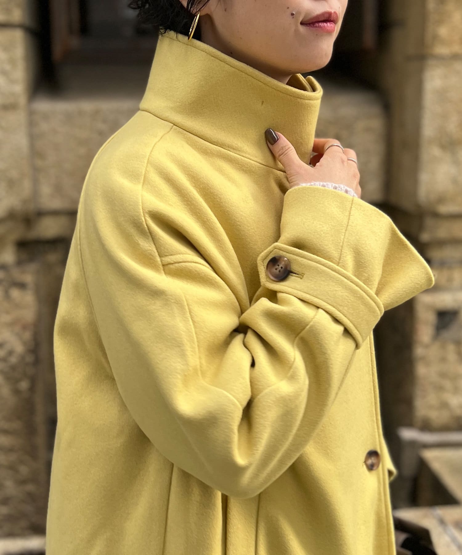 袖ボリュームスタンドネックコート