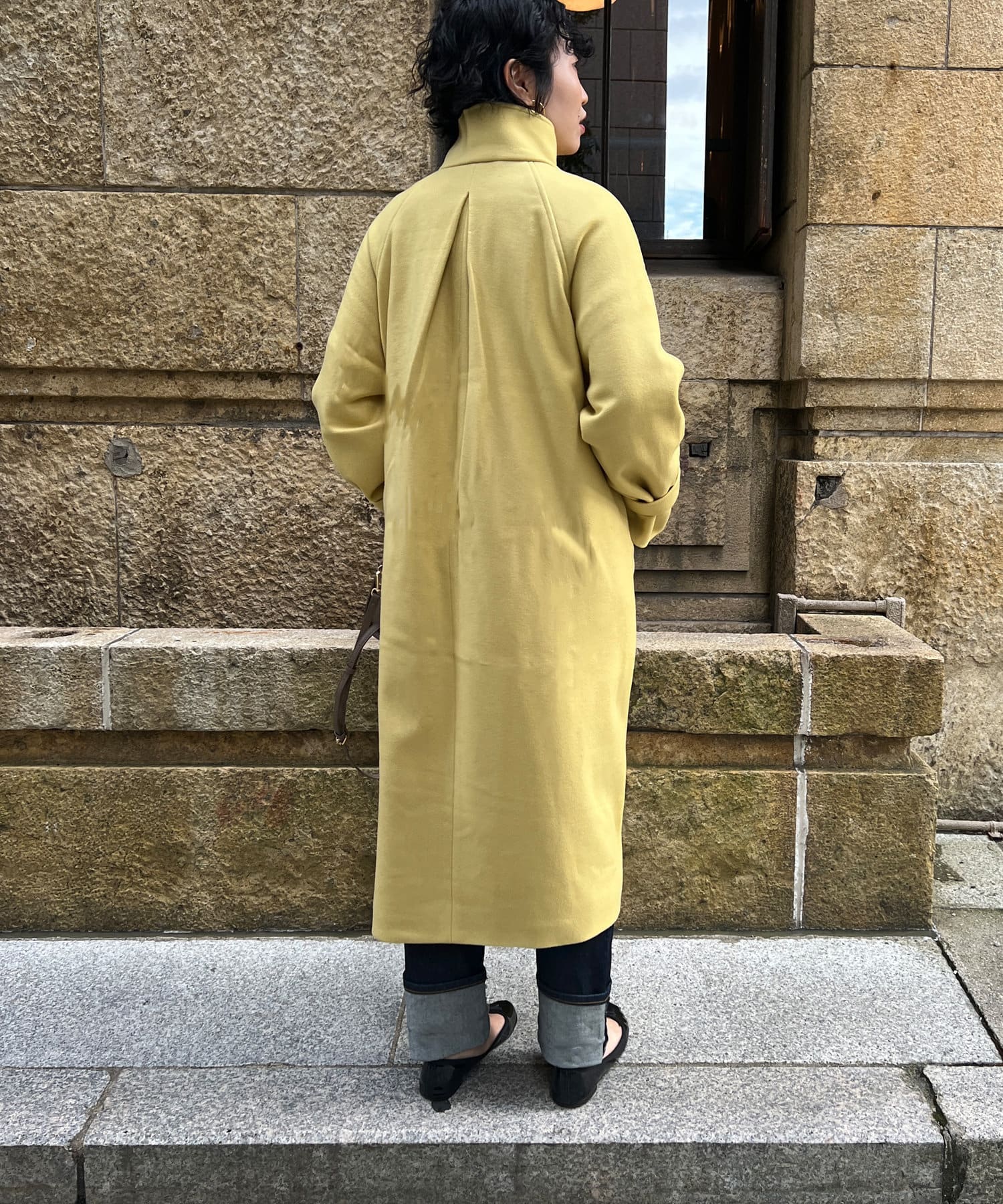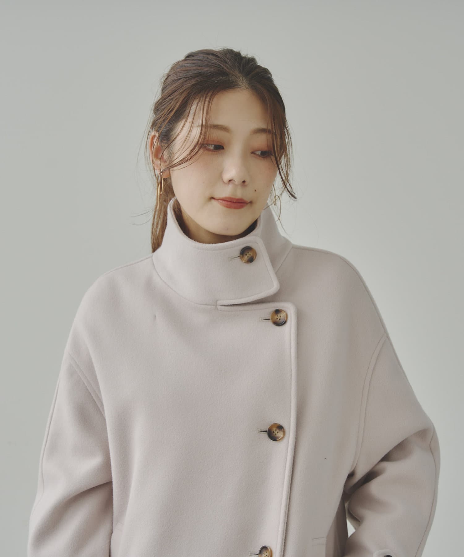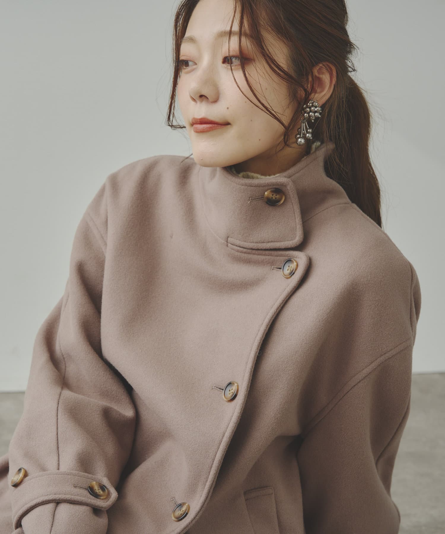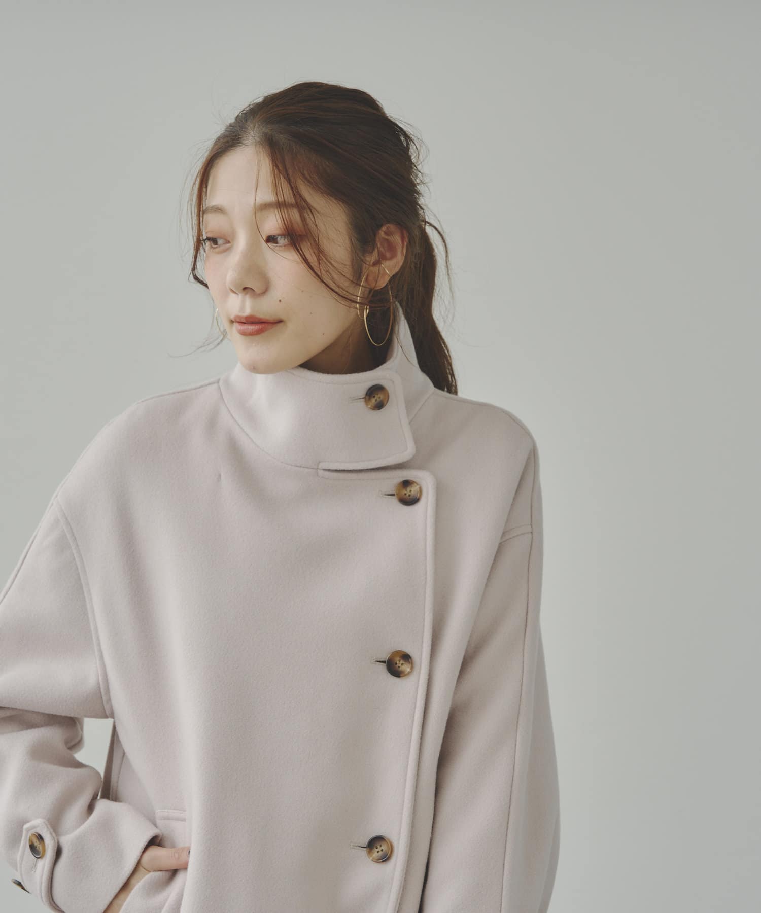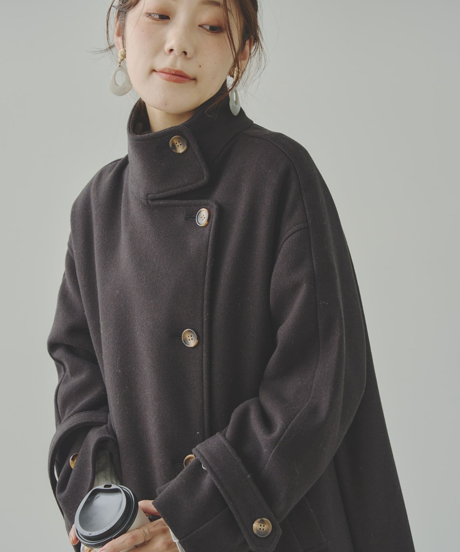 袖ボリュームスタンドネックコート