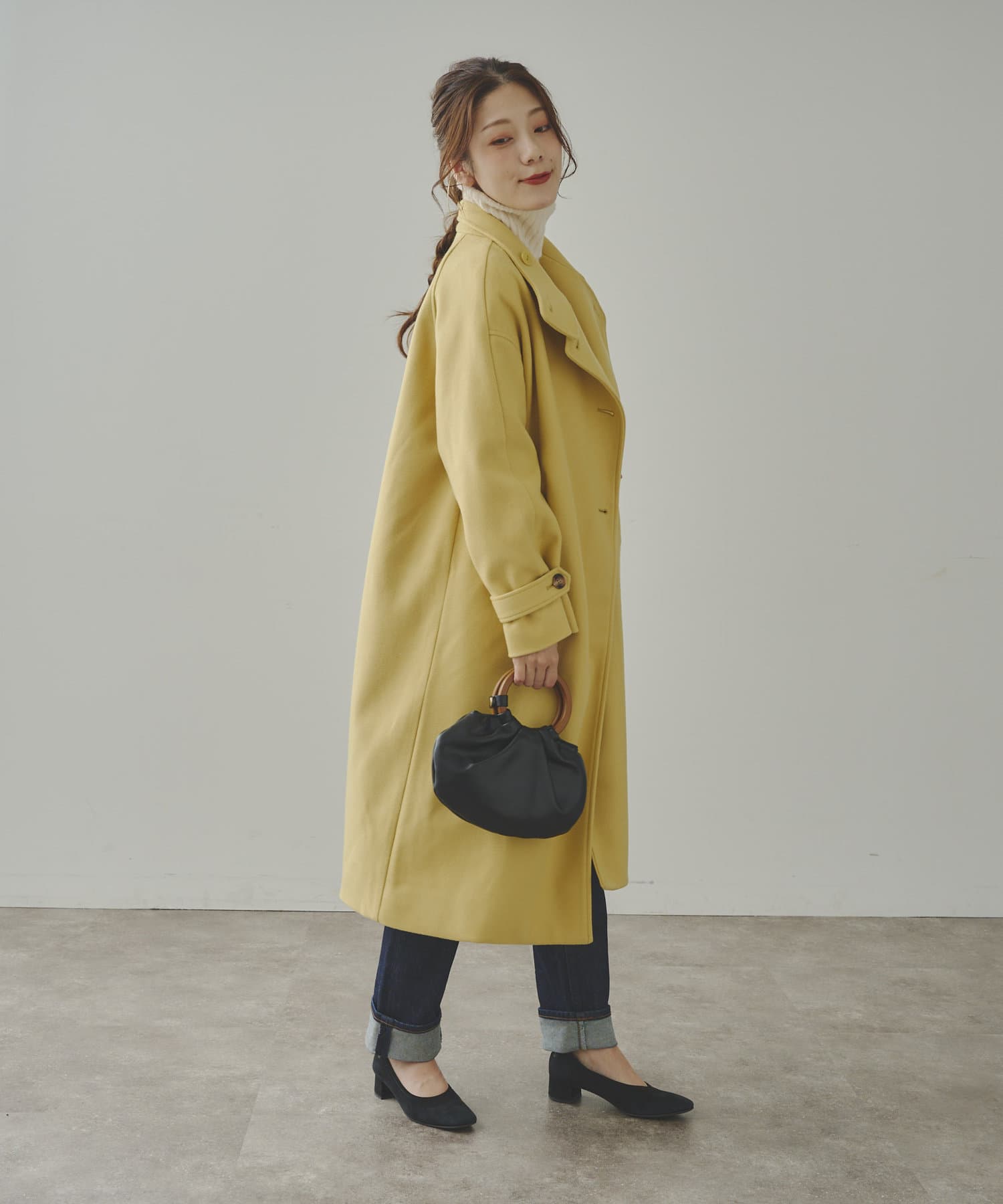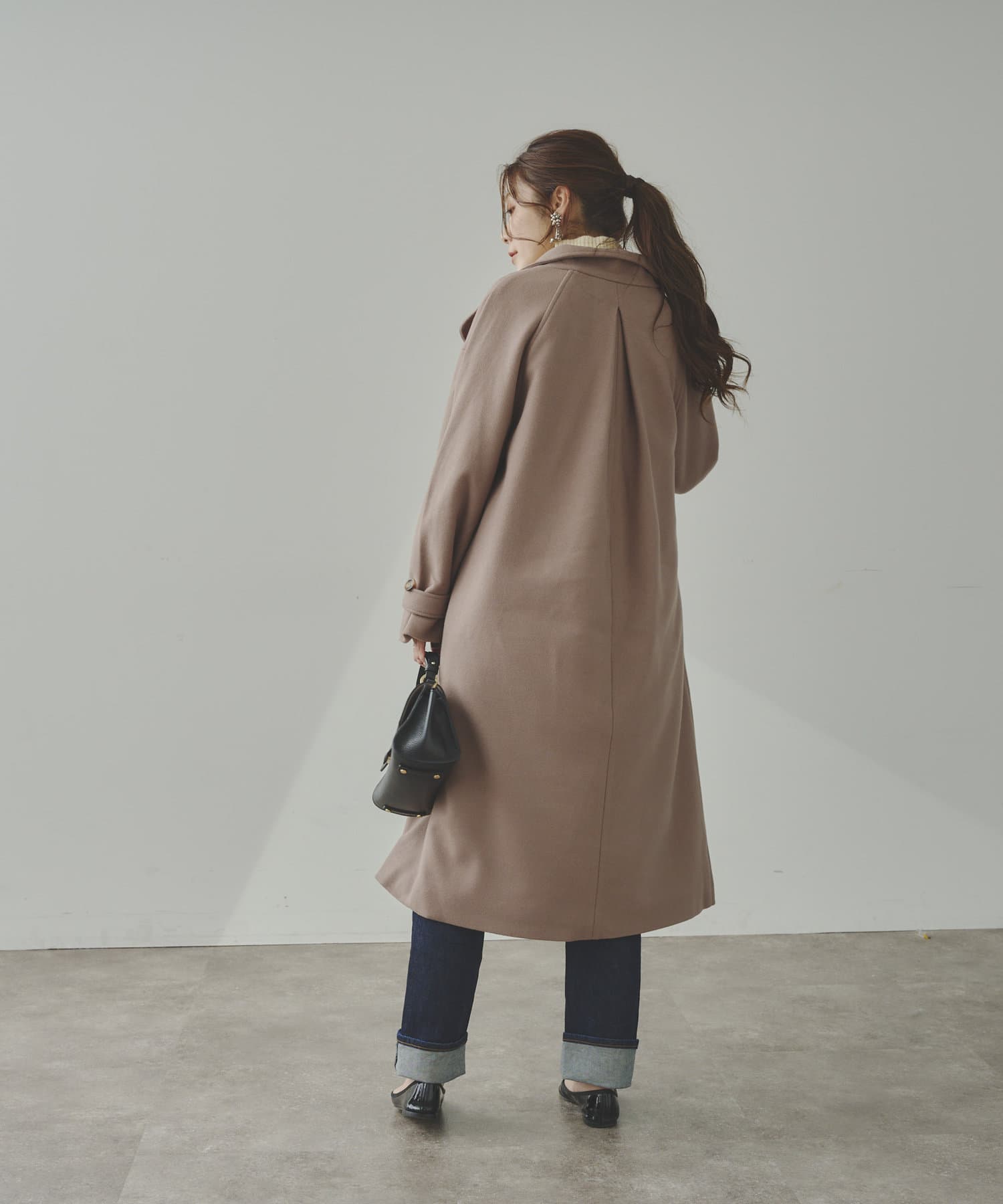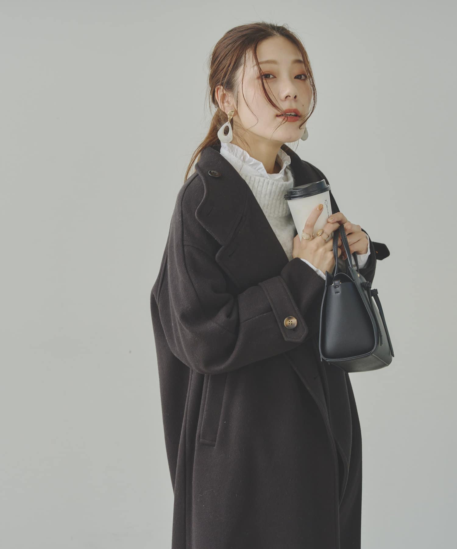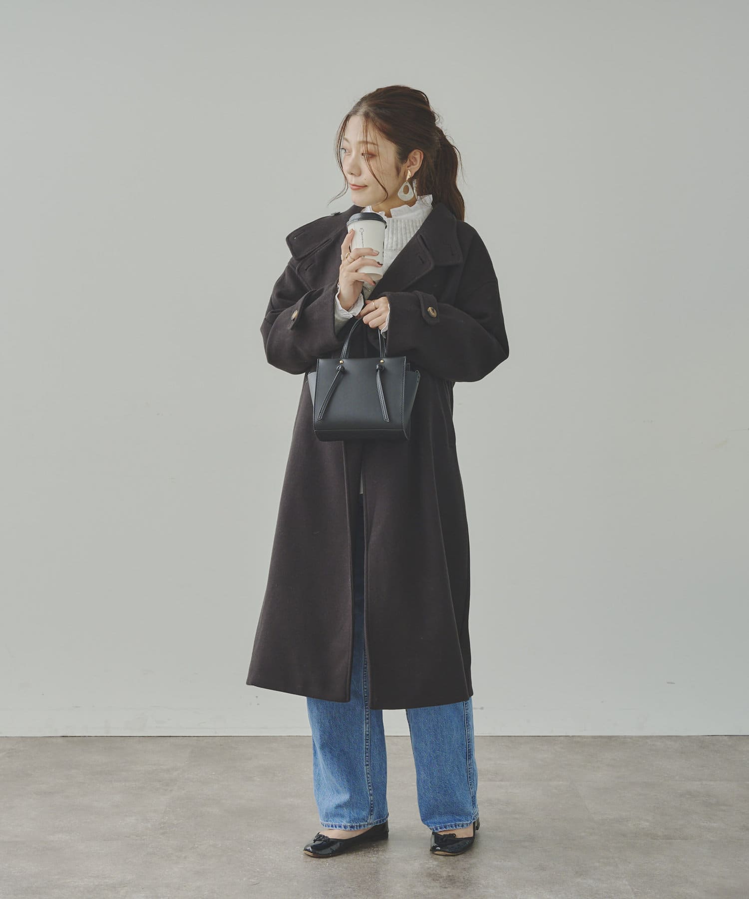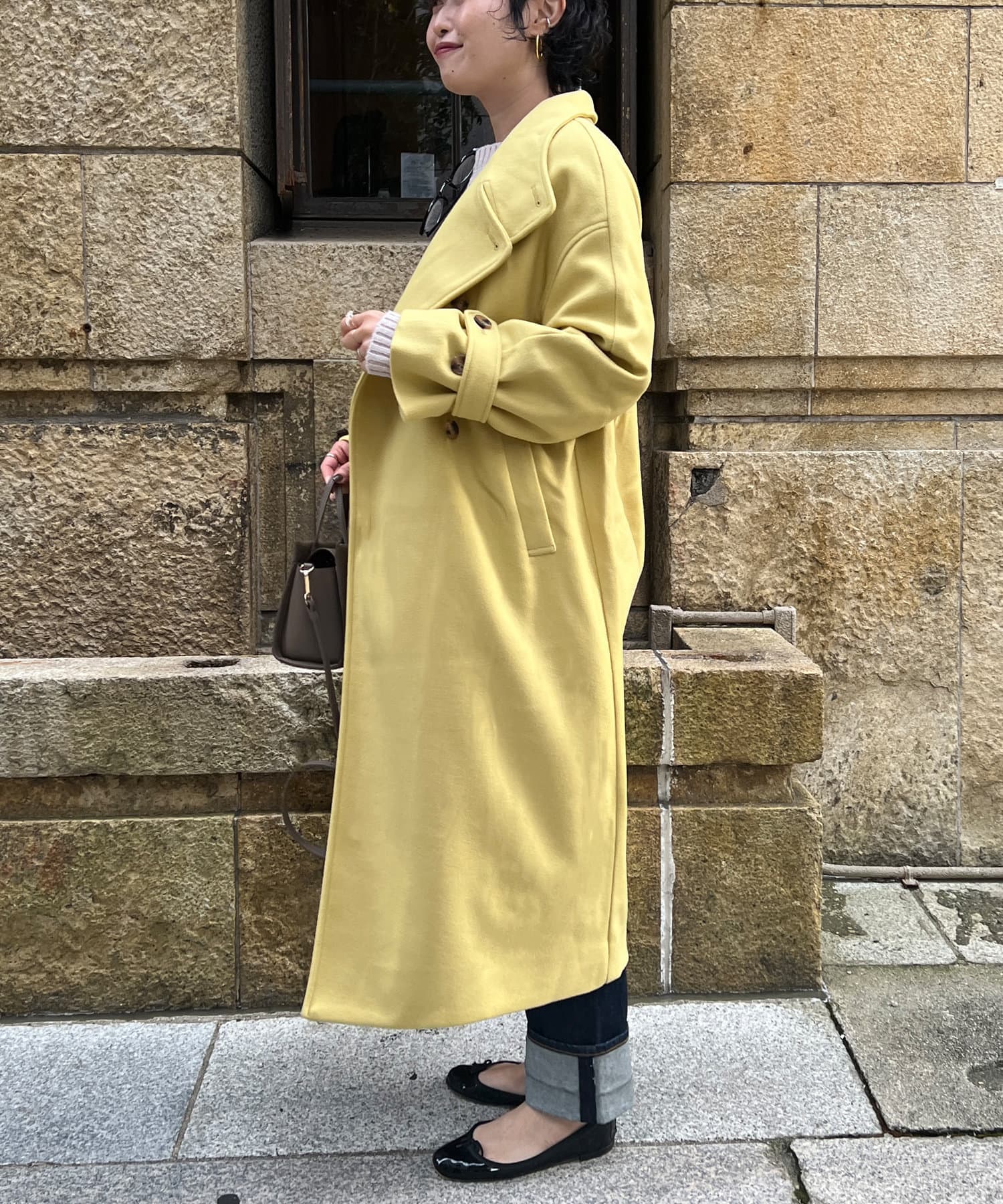 ベーシックなロングコートなので、どんなコーディネートにもマッチします。