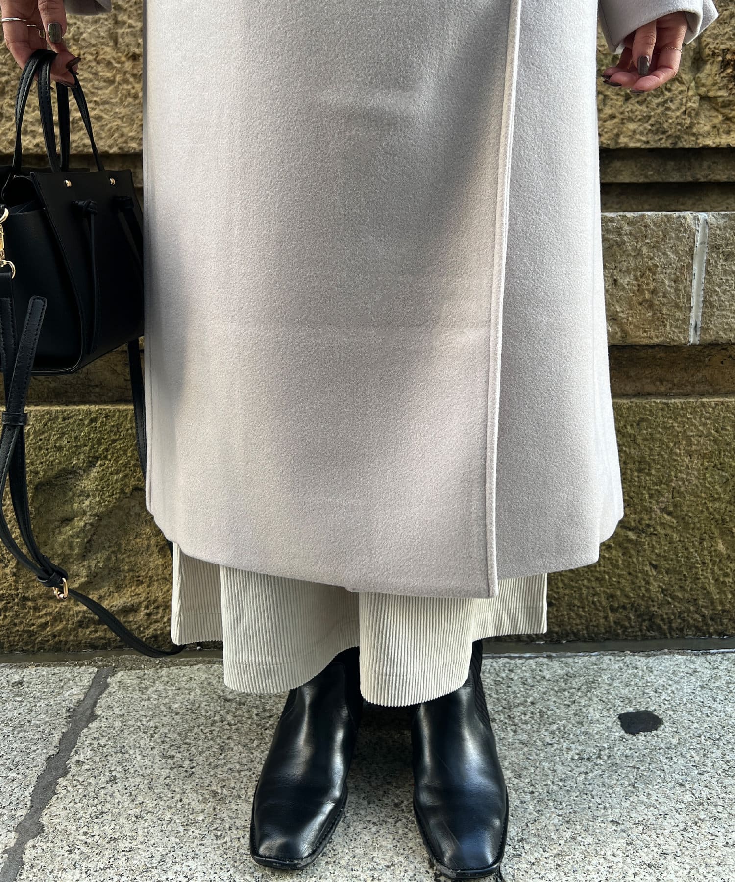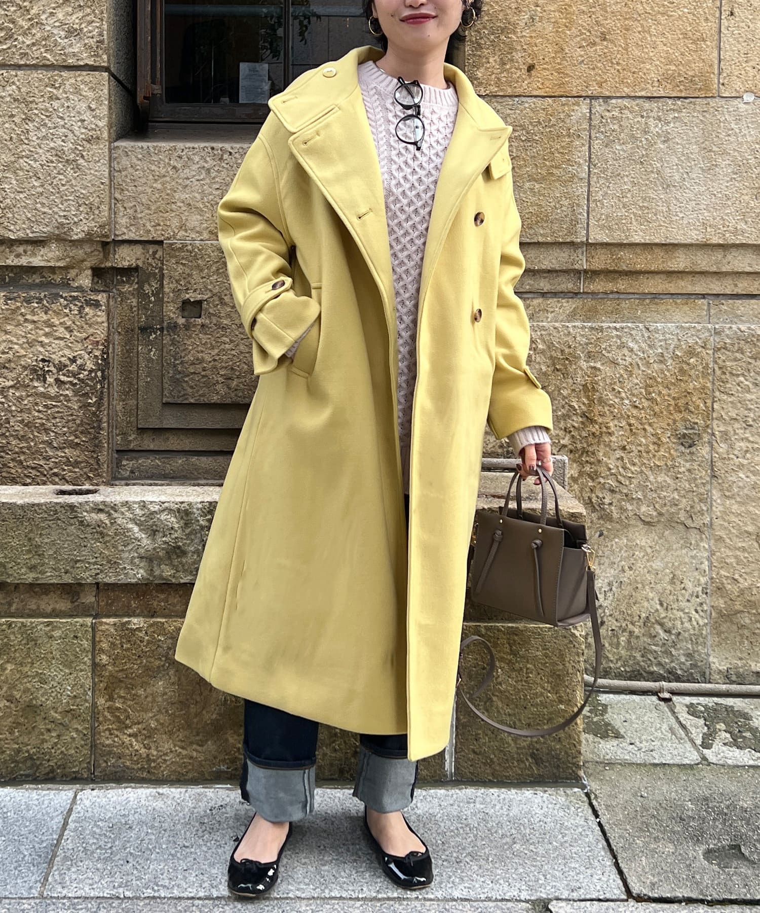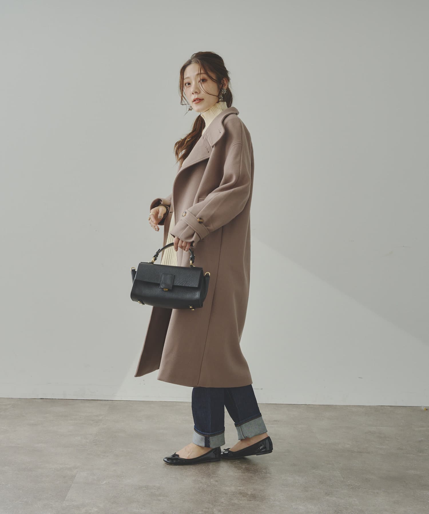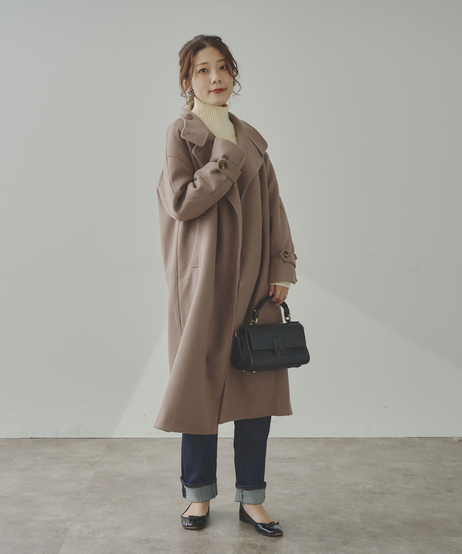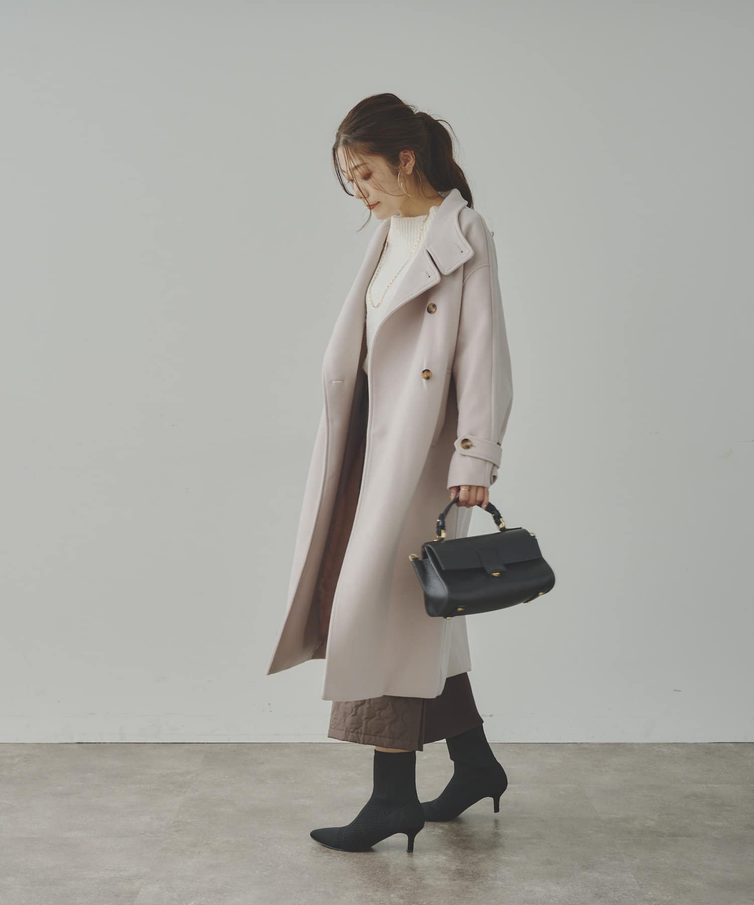 ベーシックなロングコートなので、どんなコーディネートにもマッチします。