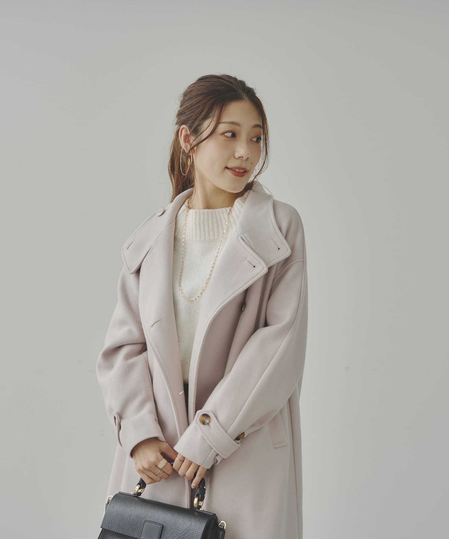 気分に合わせてネックデザインを楽しめるロングコート