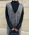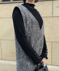 衿ぐりは前後両方Vネックのデザインですっきりとしたディティールに。ボリュームトップスと合わせてももたつきのないデザインです。