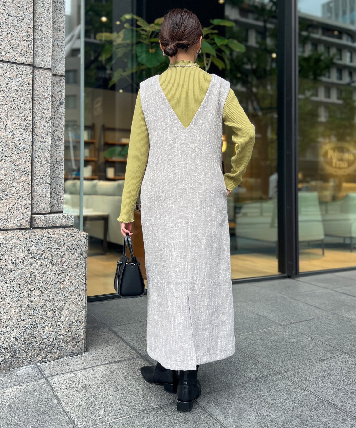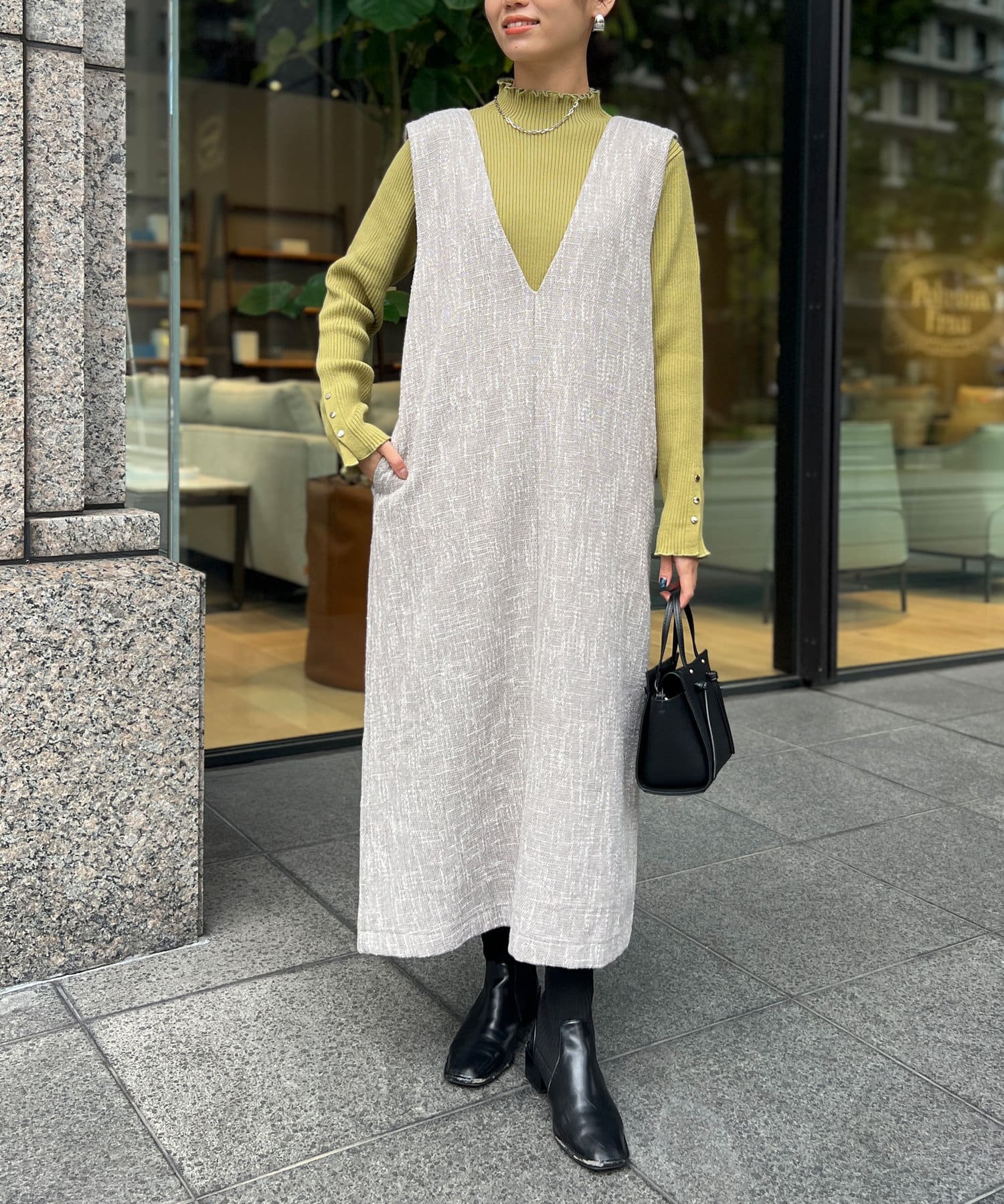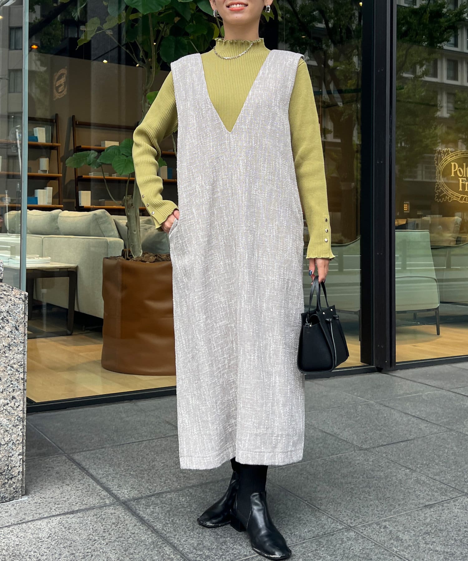 インナー次第で雰囲気に変化を出せるので、春先までロングシーズン着回しできるジャンスカです。
