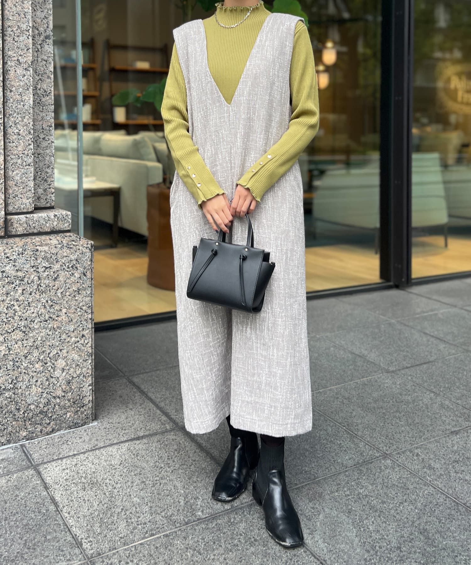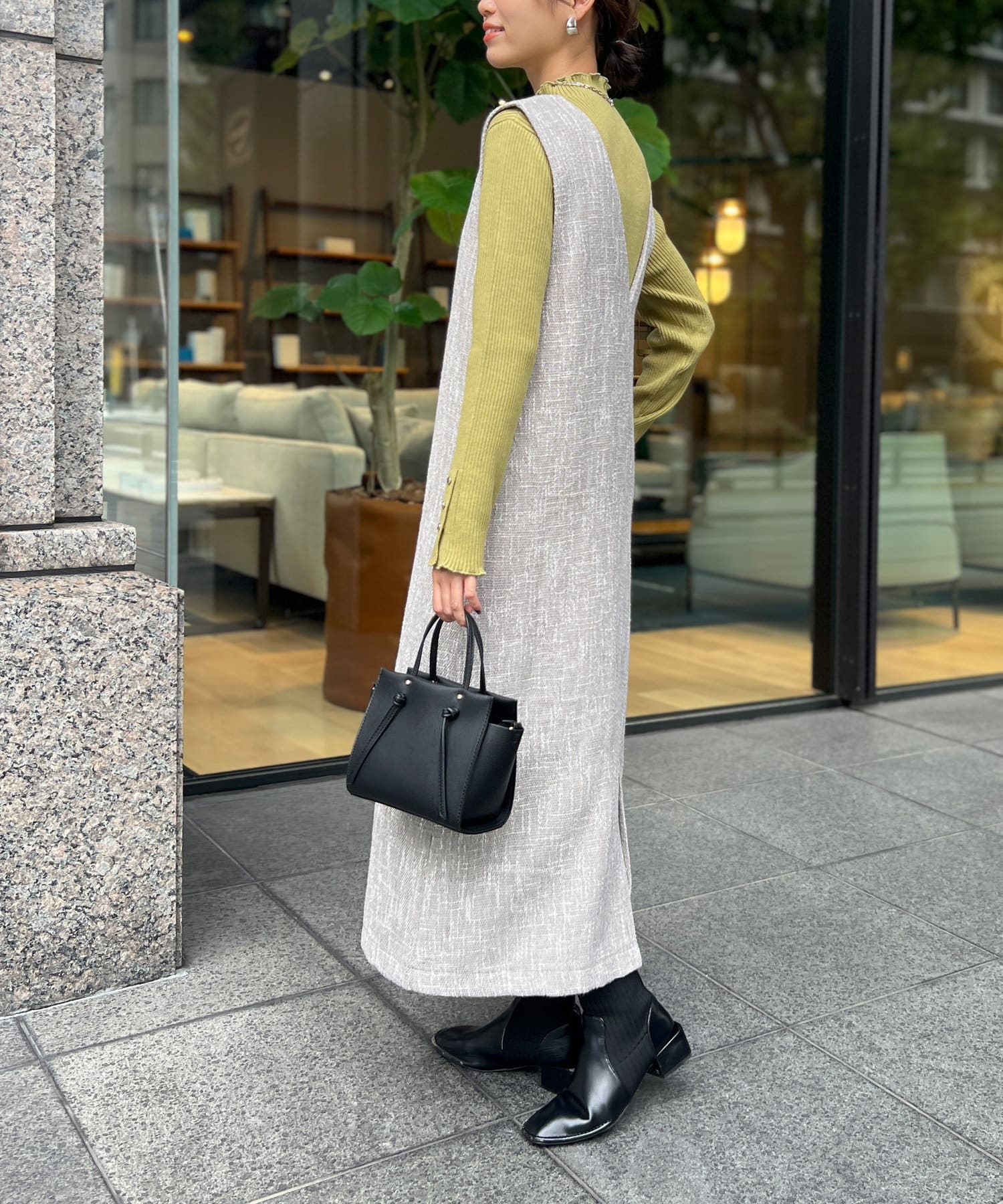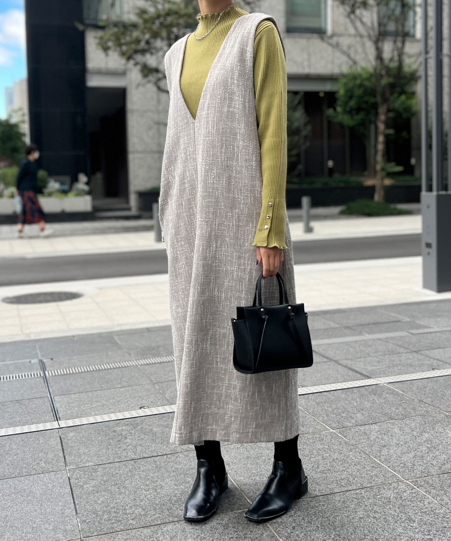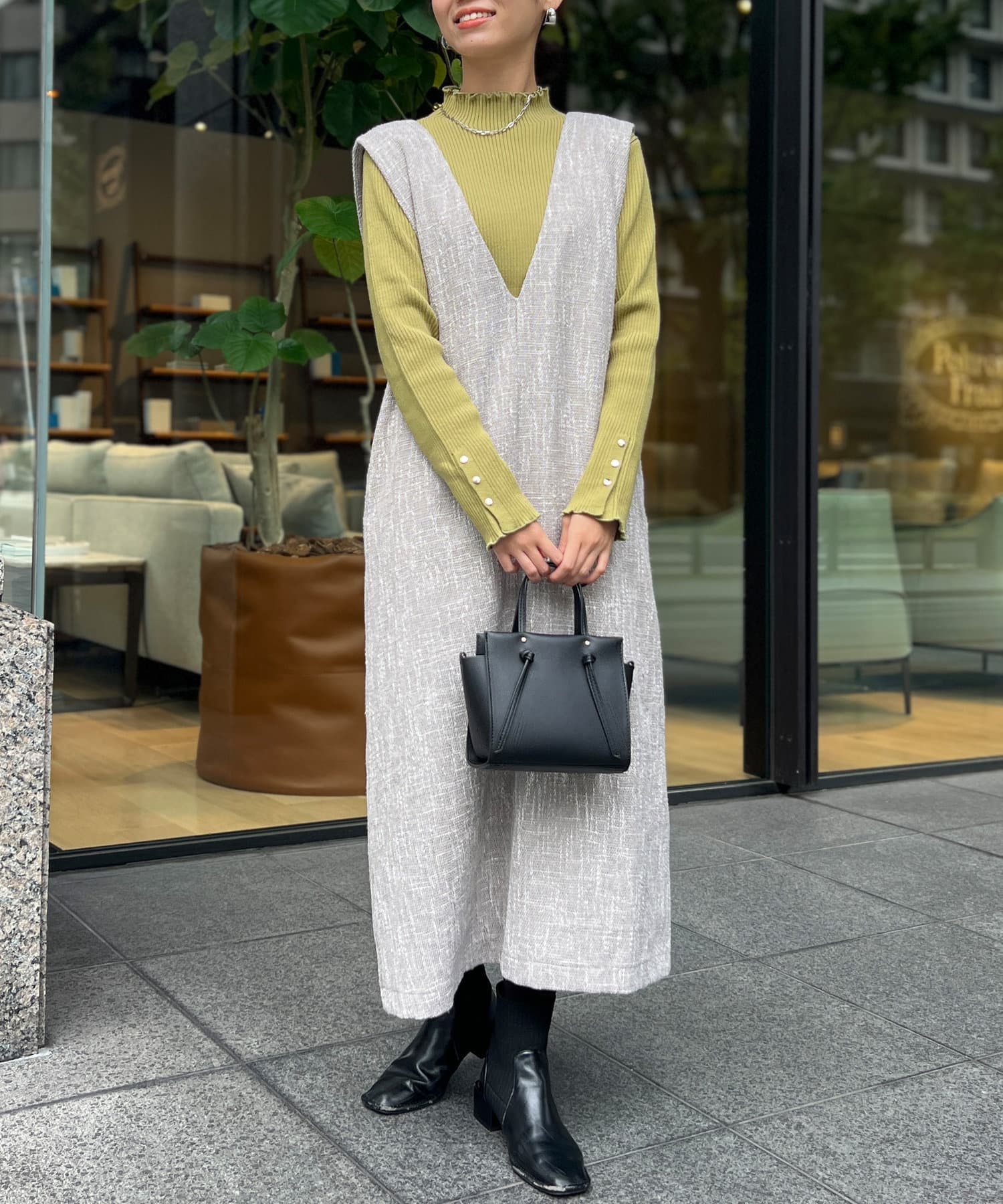 インナー次第で雰囲気に変化を出せるので、春先までロングシーズン着回しできるジャンスカです。
