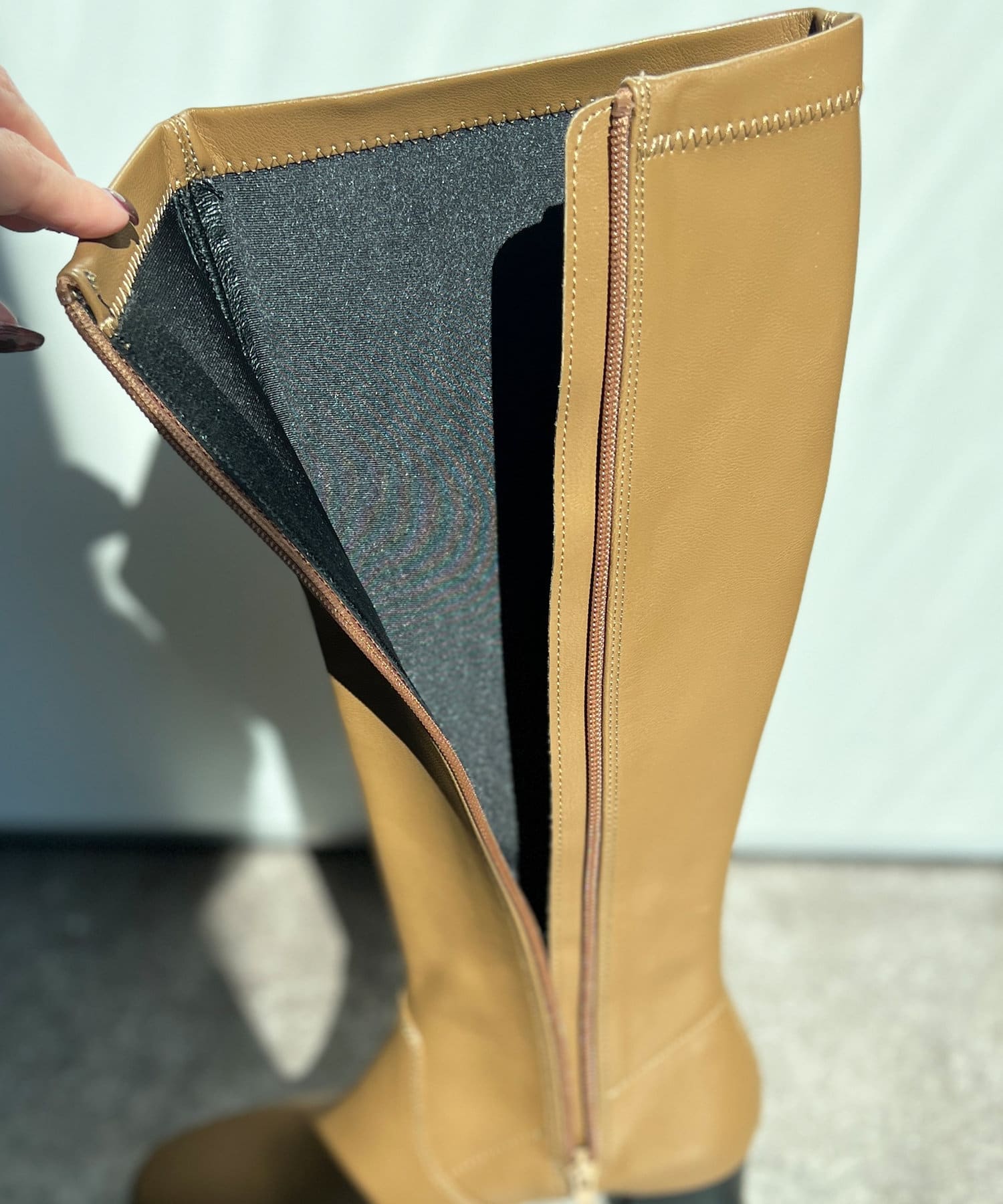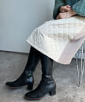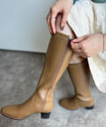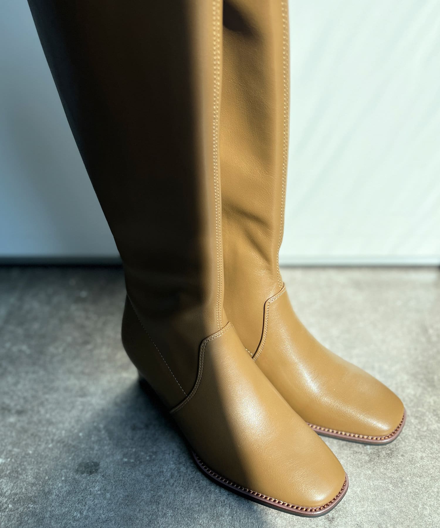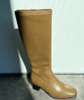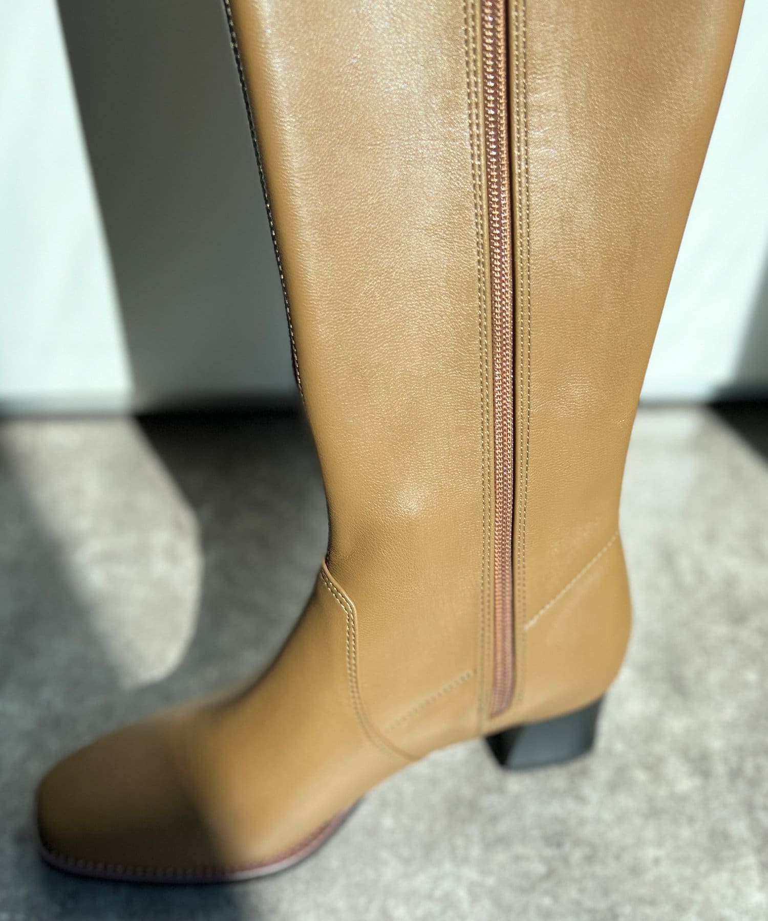 きれいめ見えするスクエアトゥと程よく高さのあるヒールのロングブーツです。