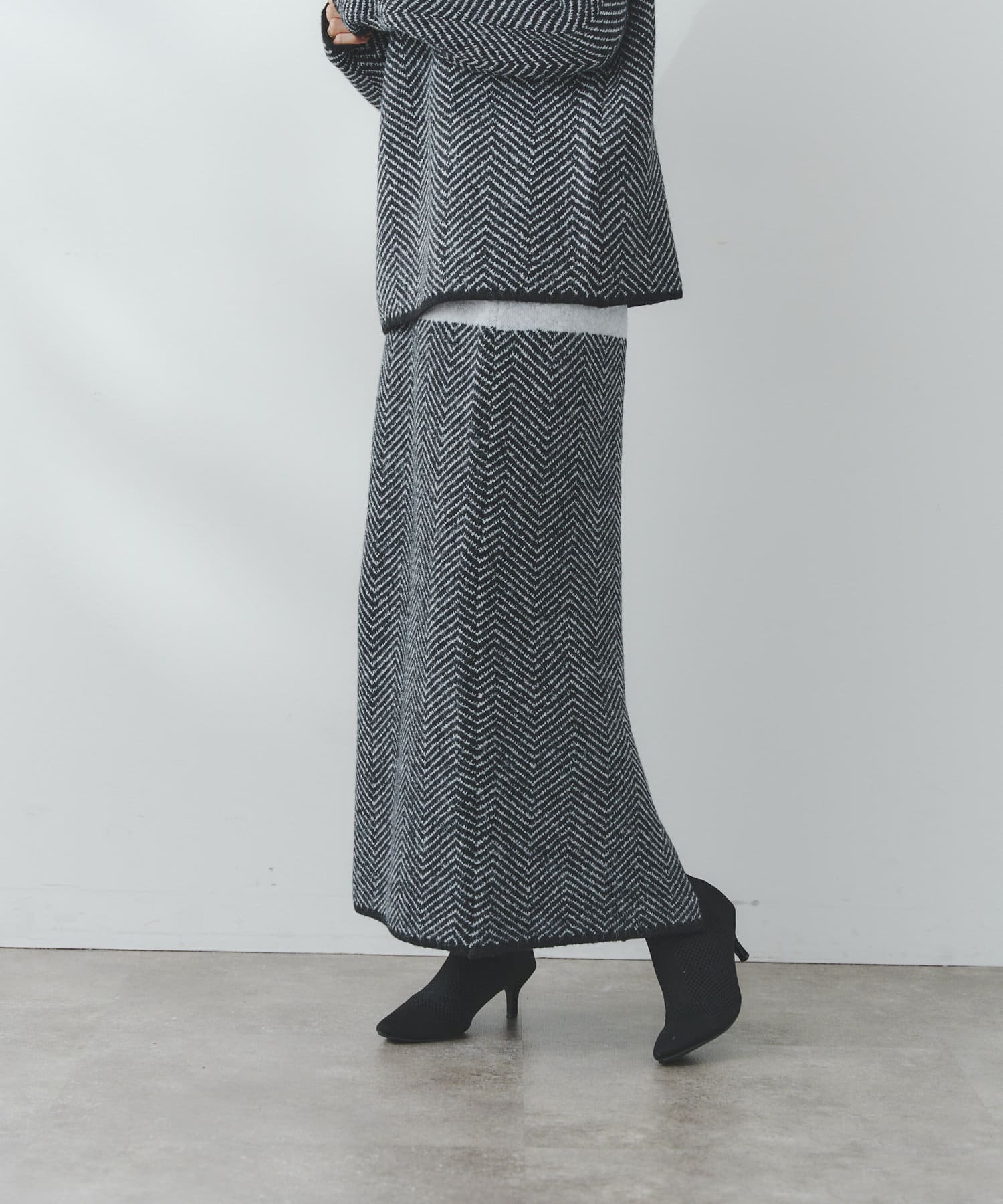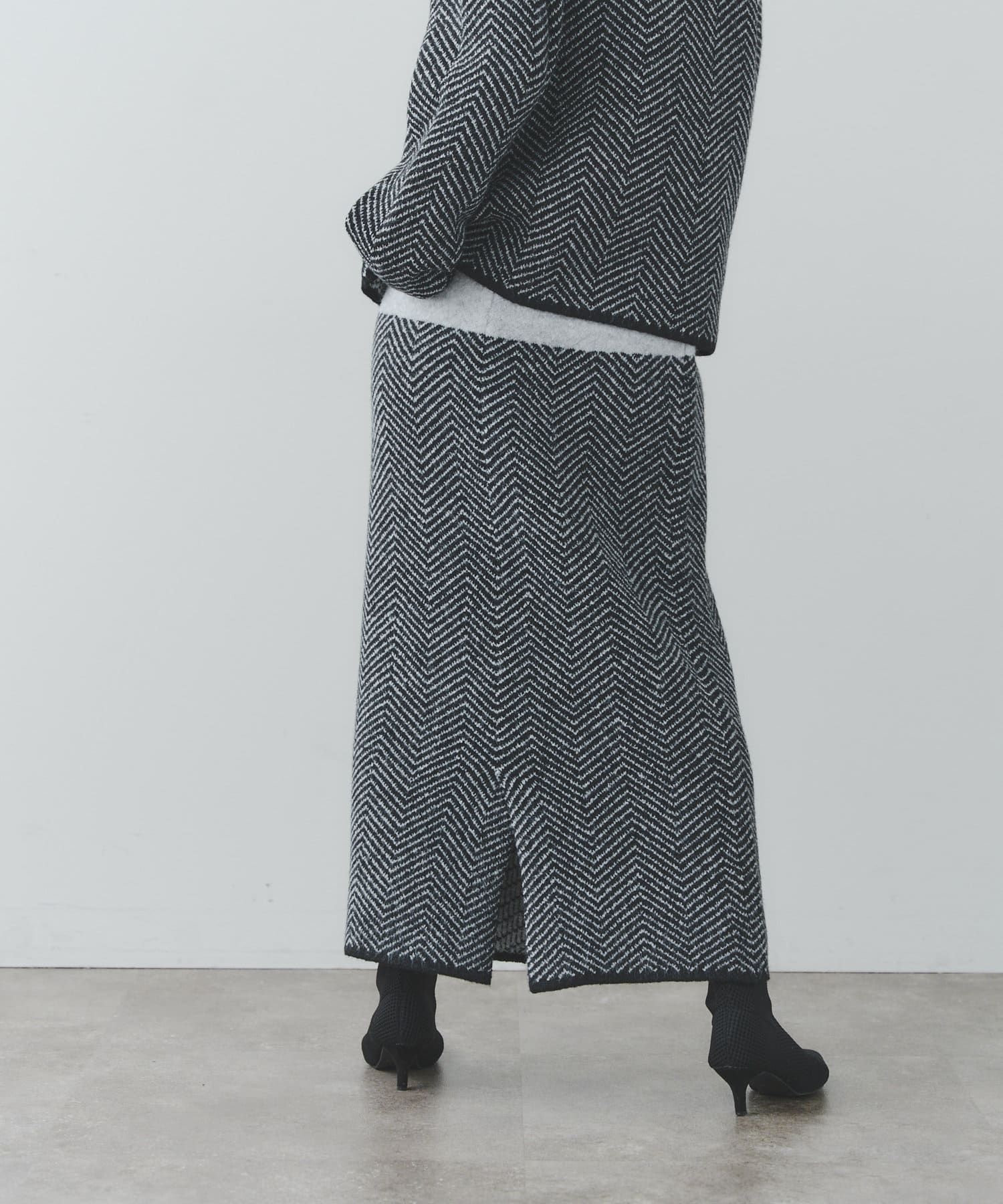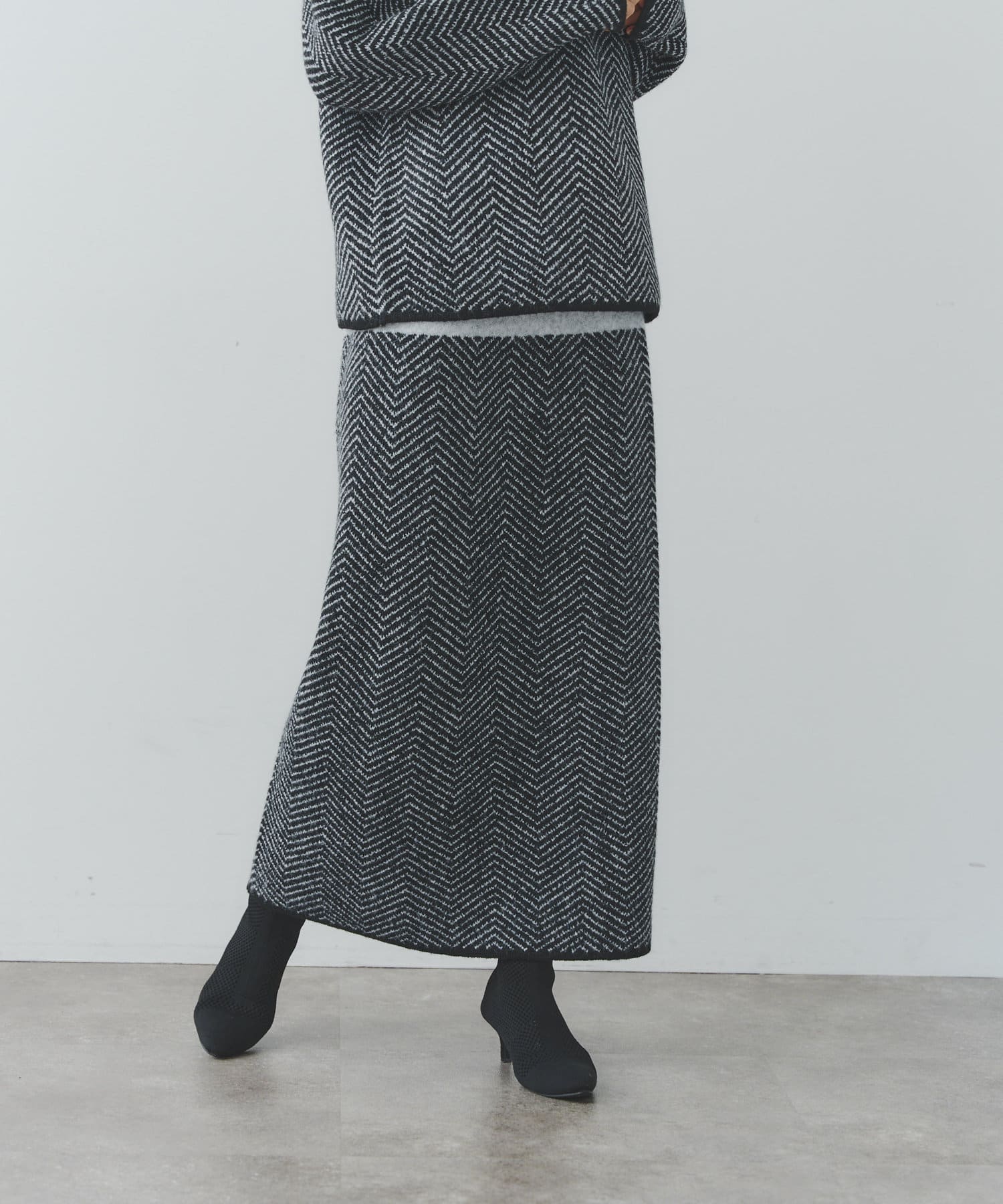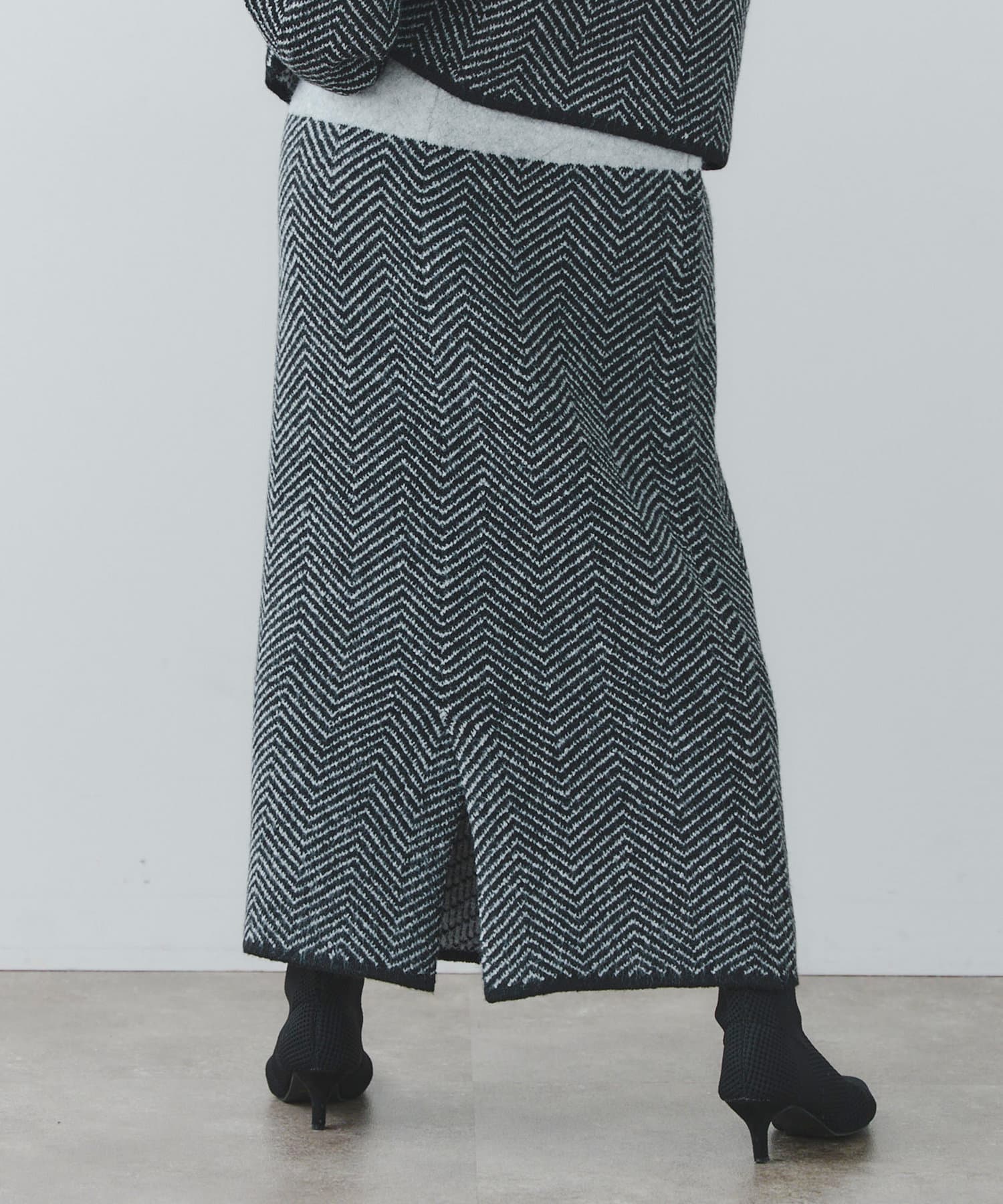 ・ヘリンボーン柄のジャカード編みのニットタイトスカート