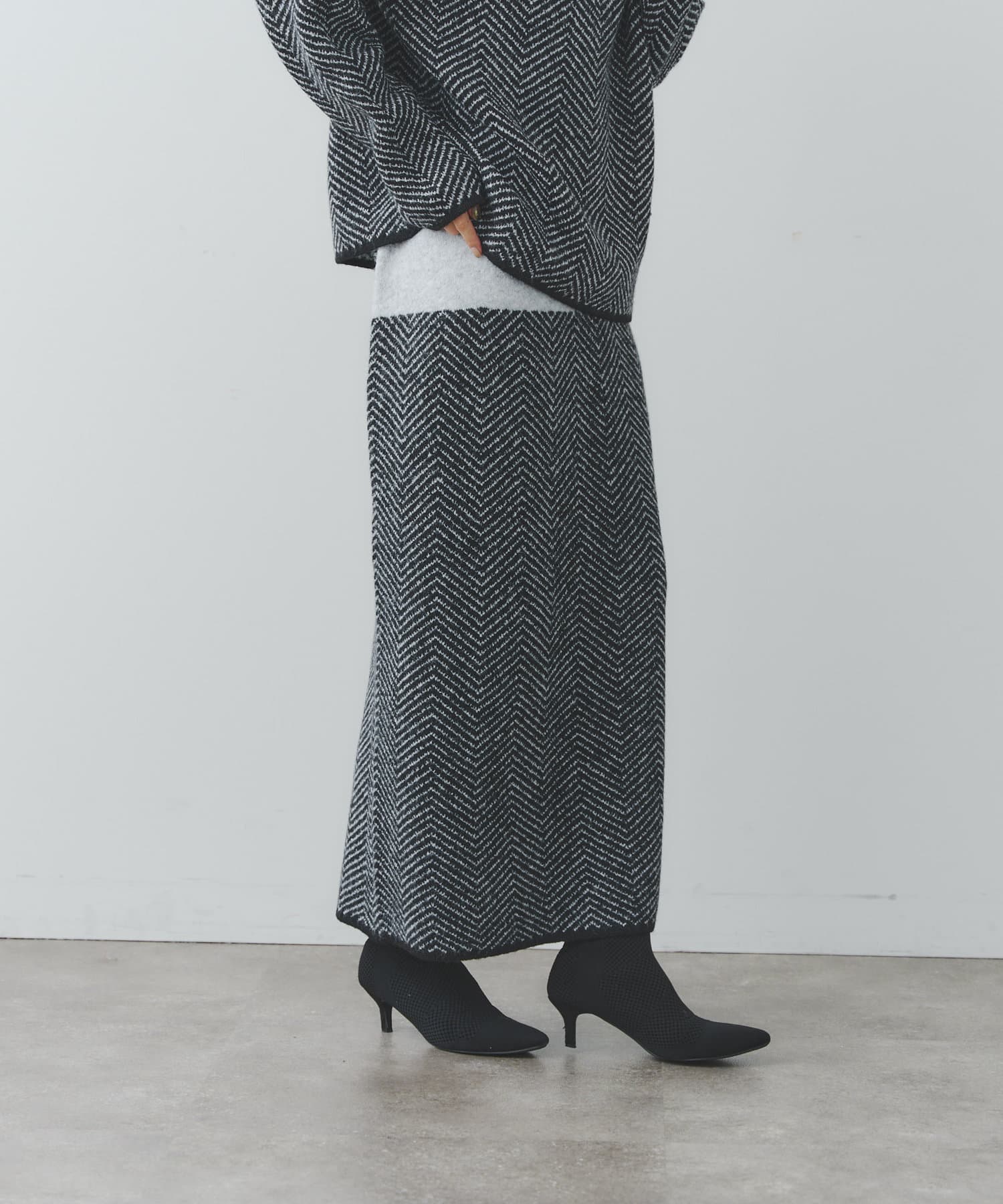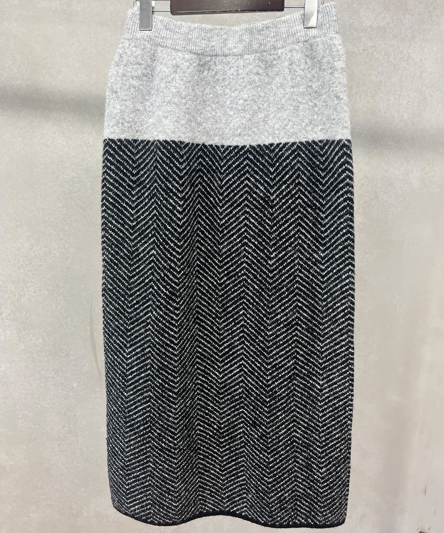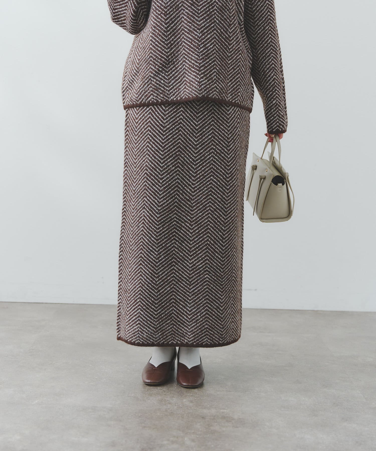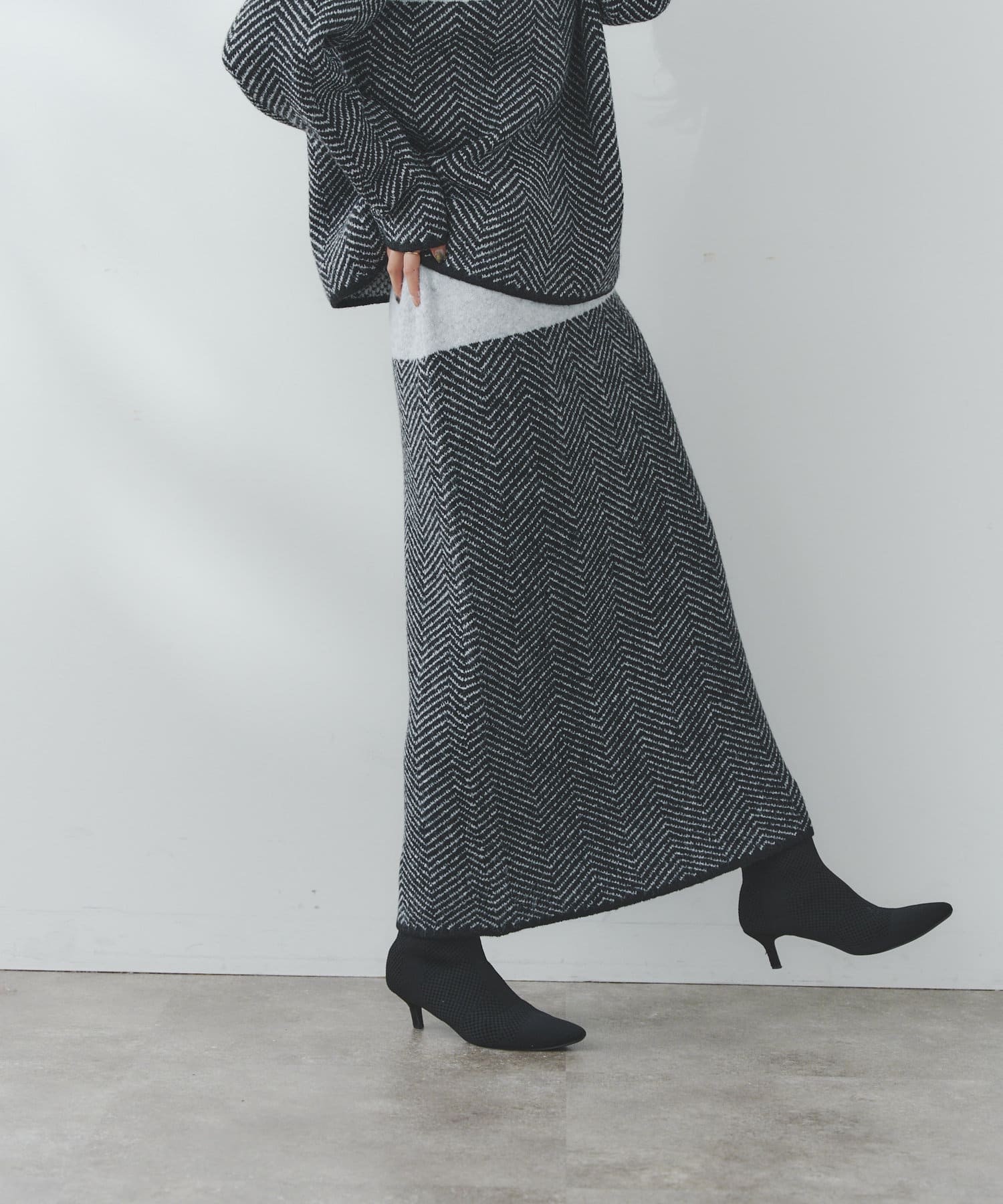 ・ヘリンボーン柄のジャカード編みのニットタイトスカート