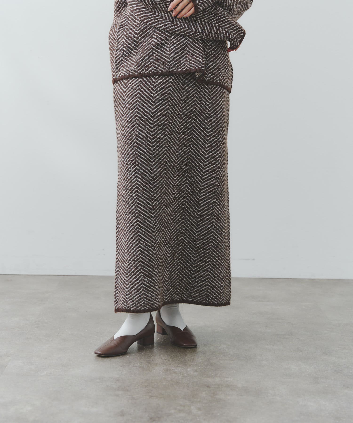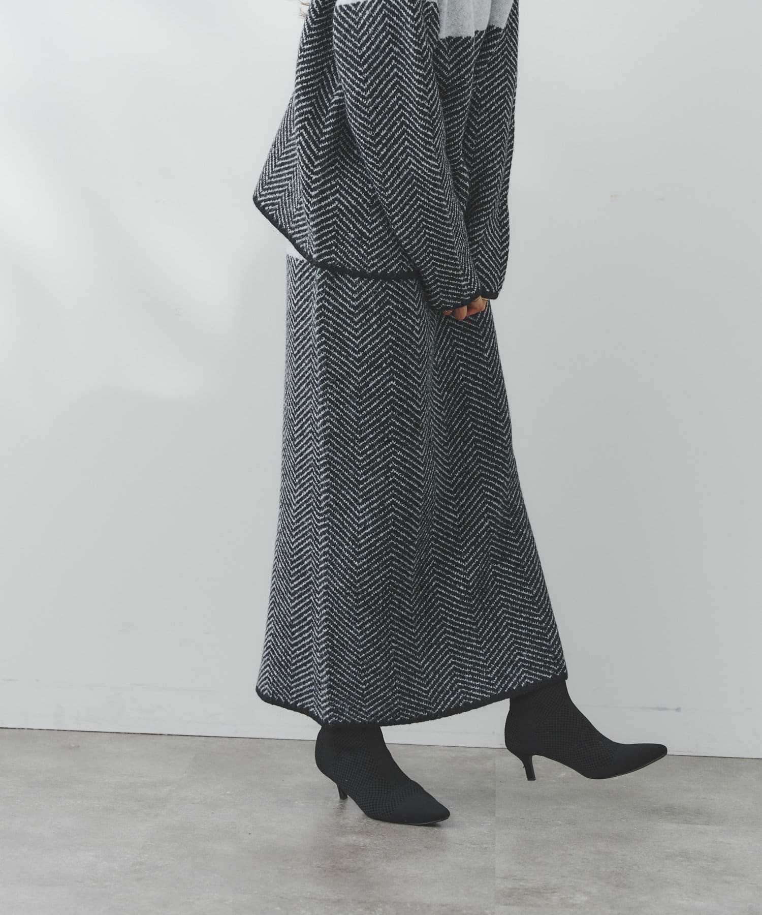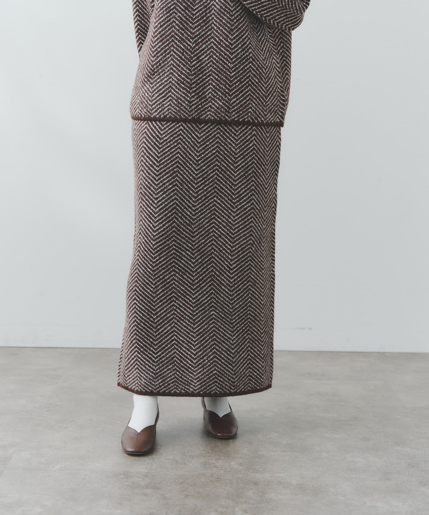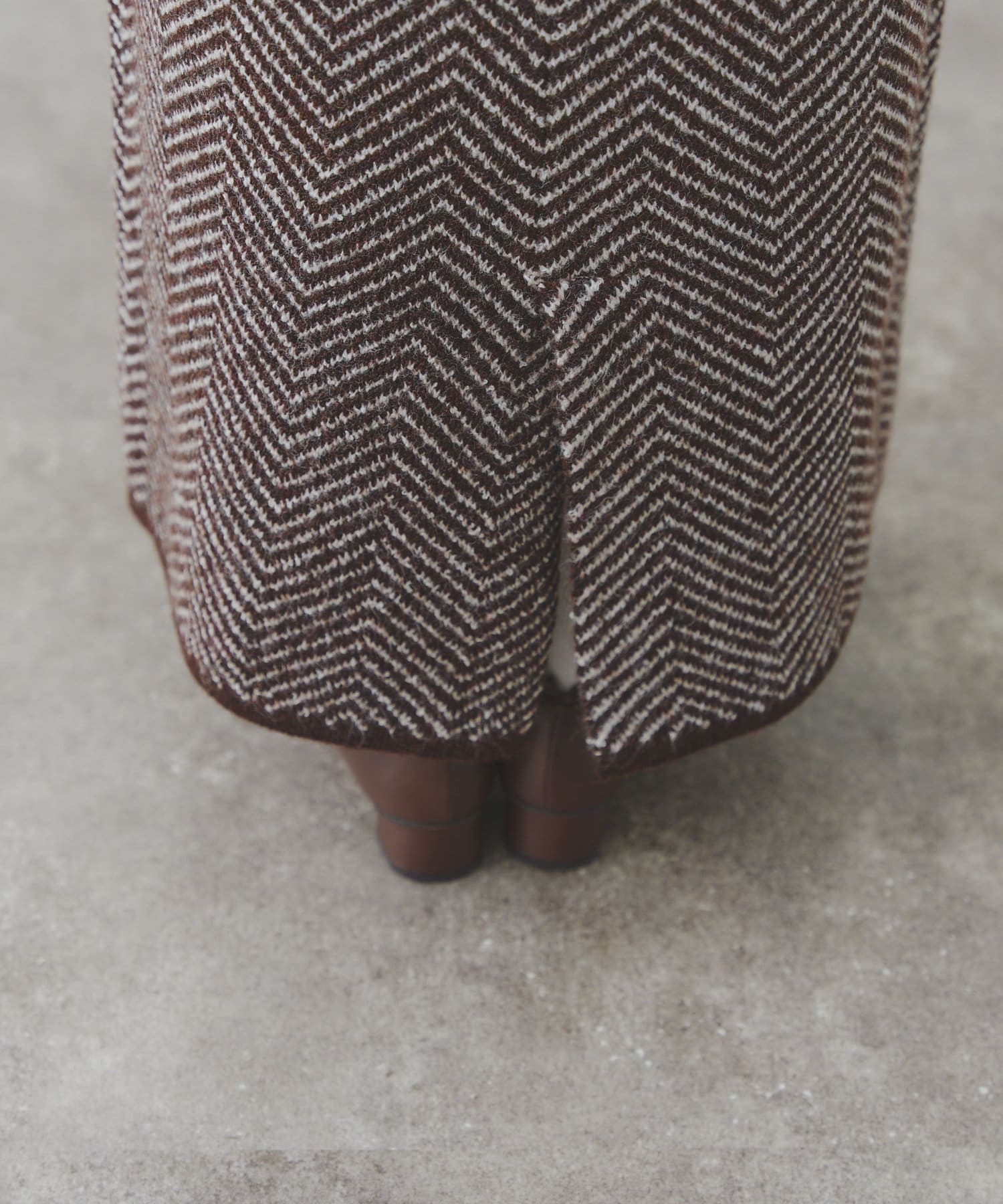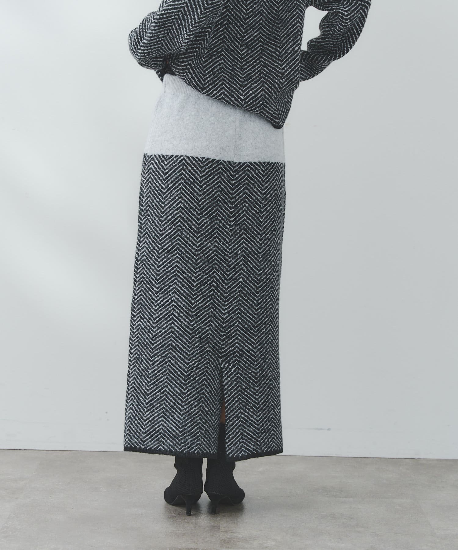 ・ヘリンボーン柄のジャカード編みのニットタイトスカート