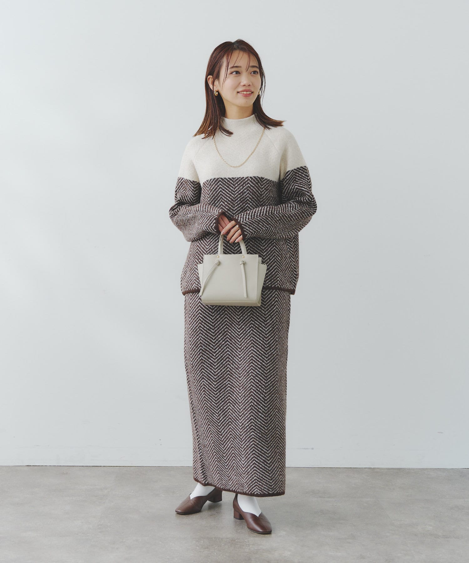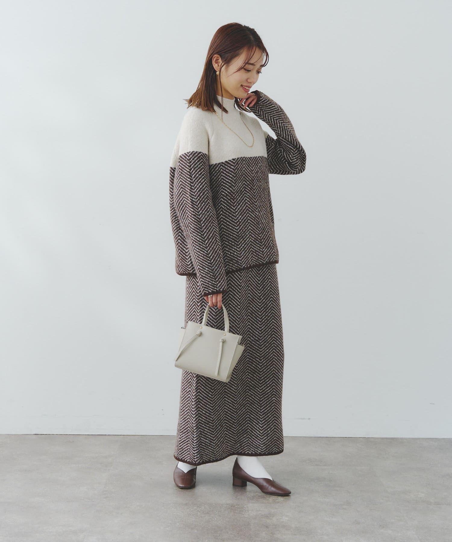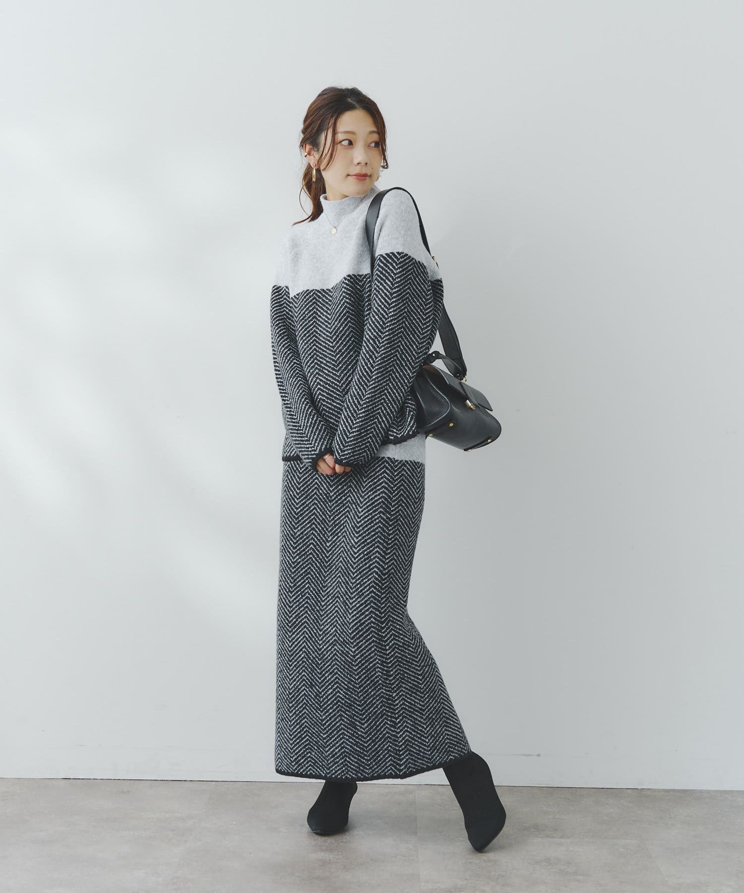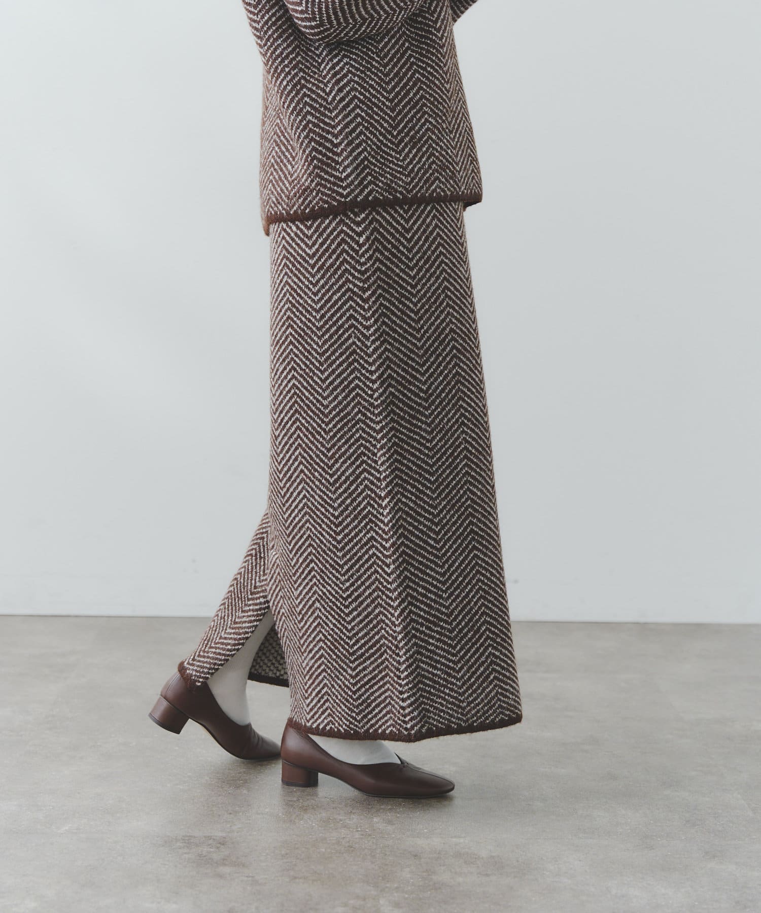・ヘリンボーン柄のジャカード編みのニットタイトスカート