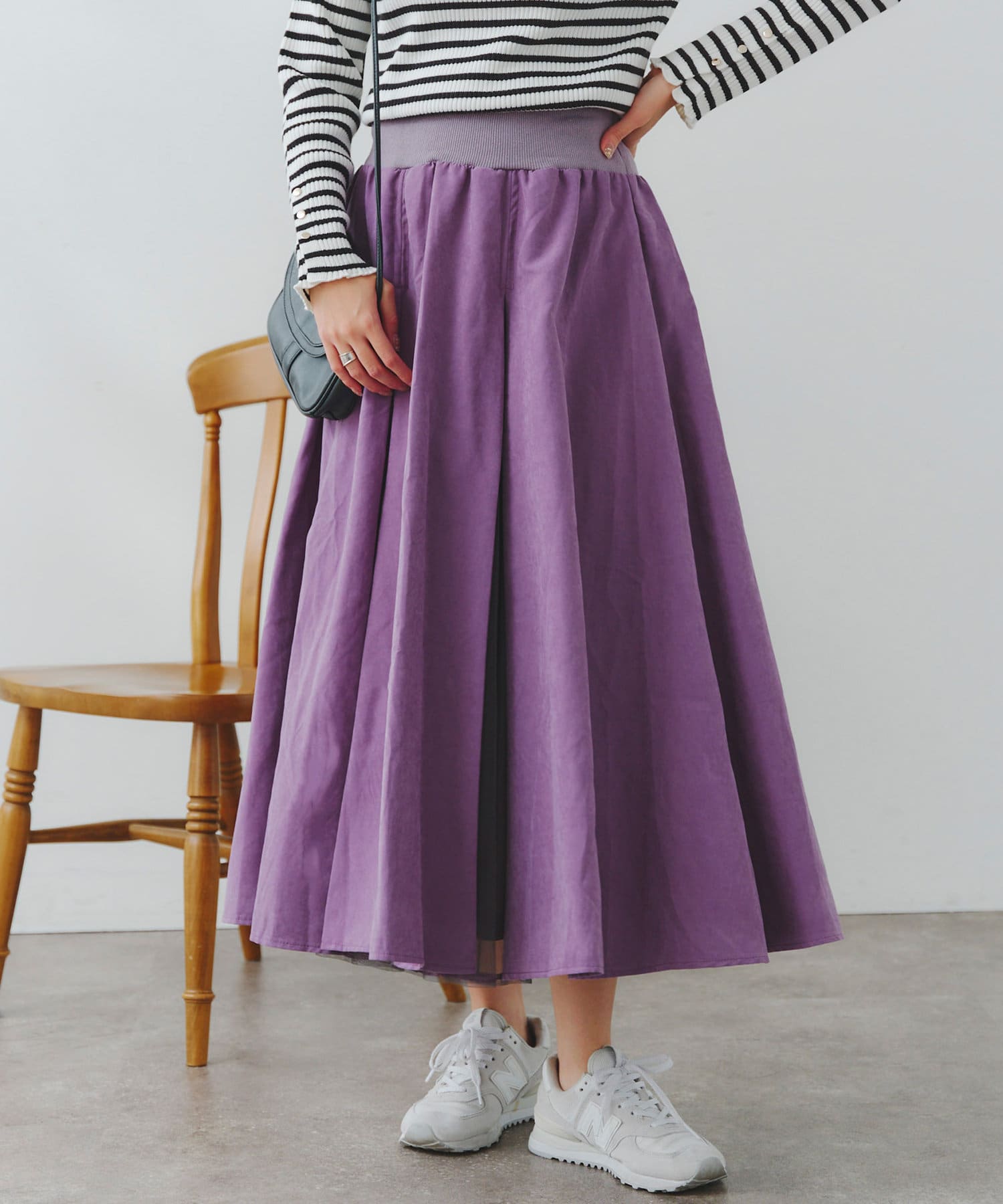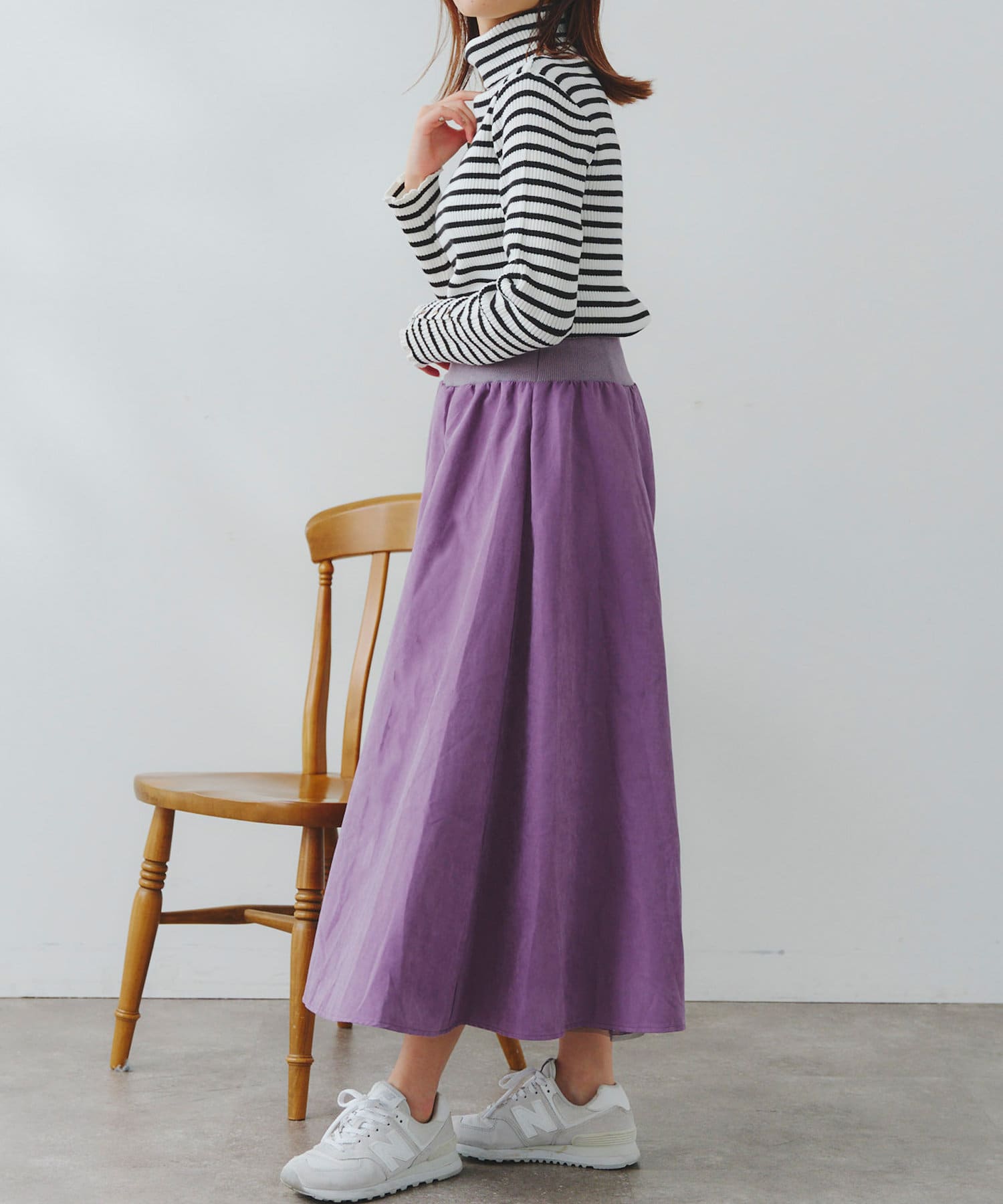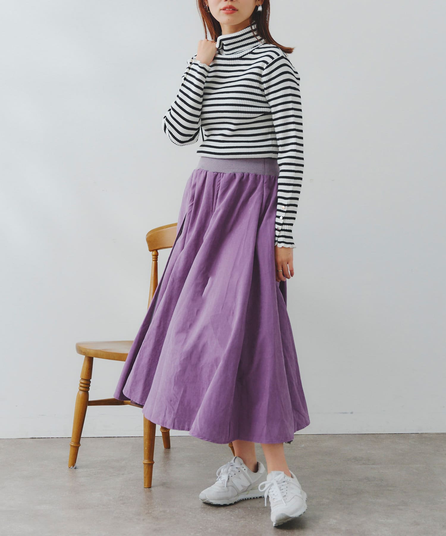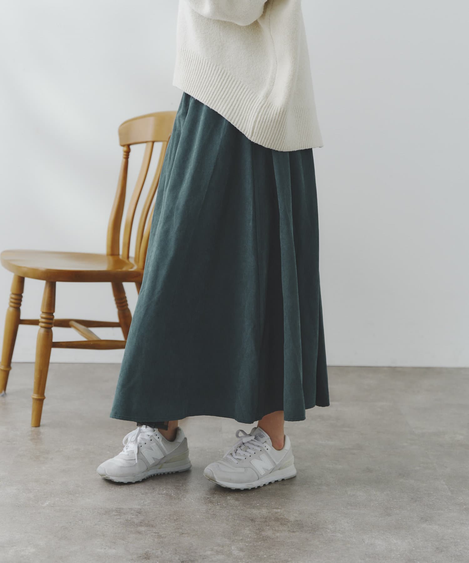 ふんわりとした広がりが軽やかな印象に見せてくれるので、ニットと合わせた時も重たくならず冬ファッションをフェミニンに彩ってくれます。