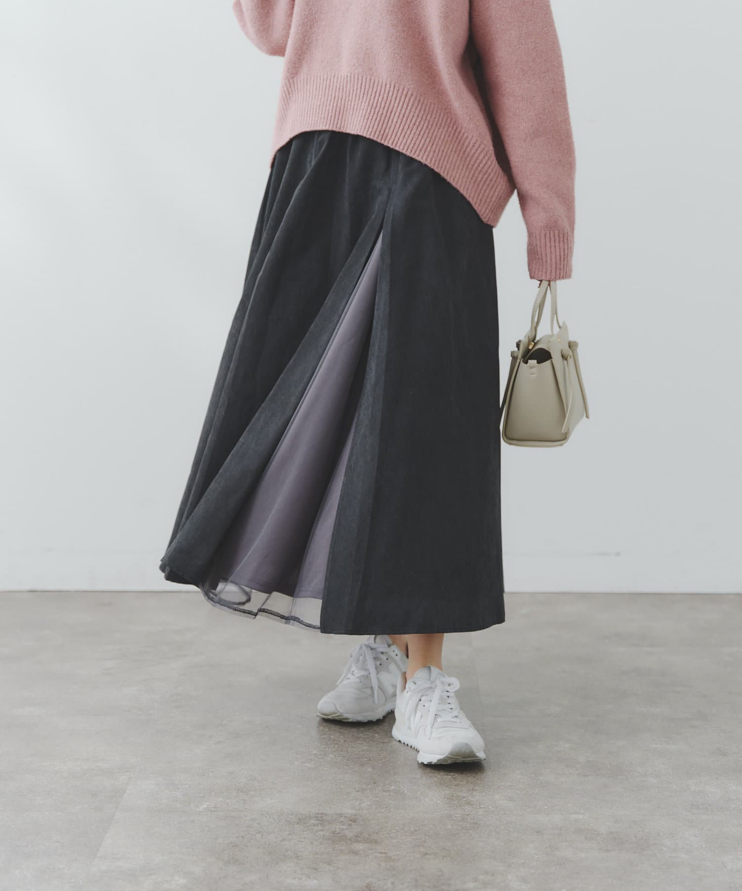 チュールのはぎデザインのおかげで空気感のあるシルエットに。