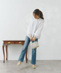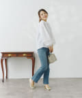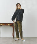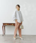 テーパードパンツを合わせてオフィススタイルにも!