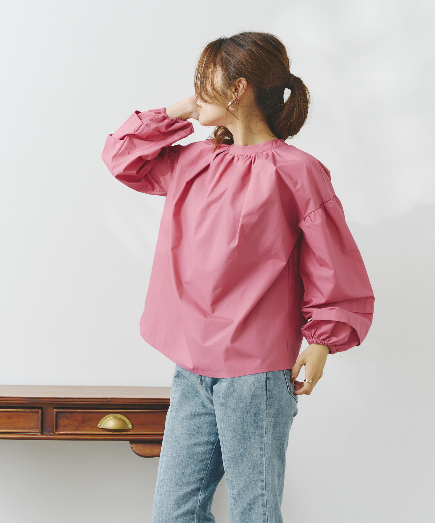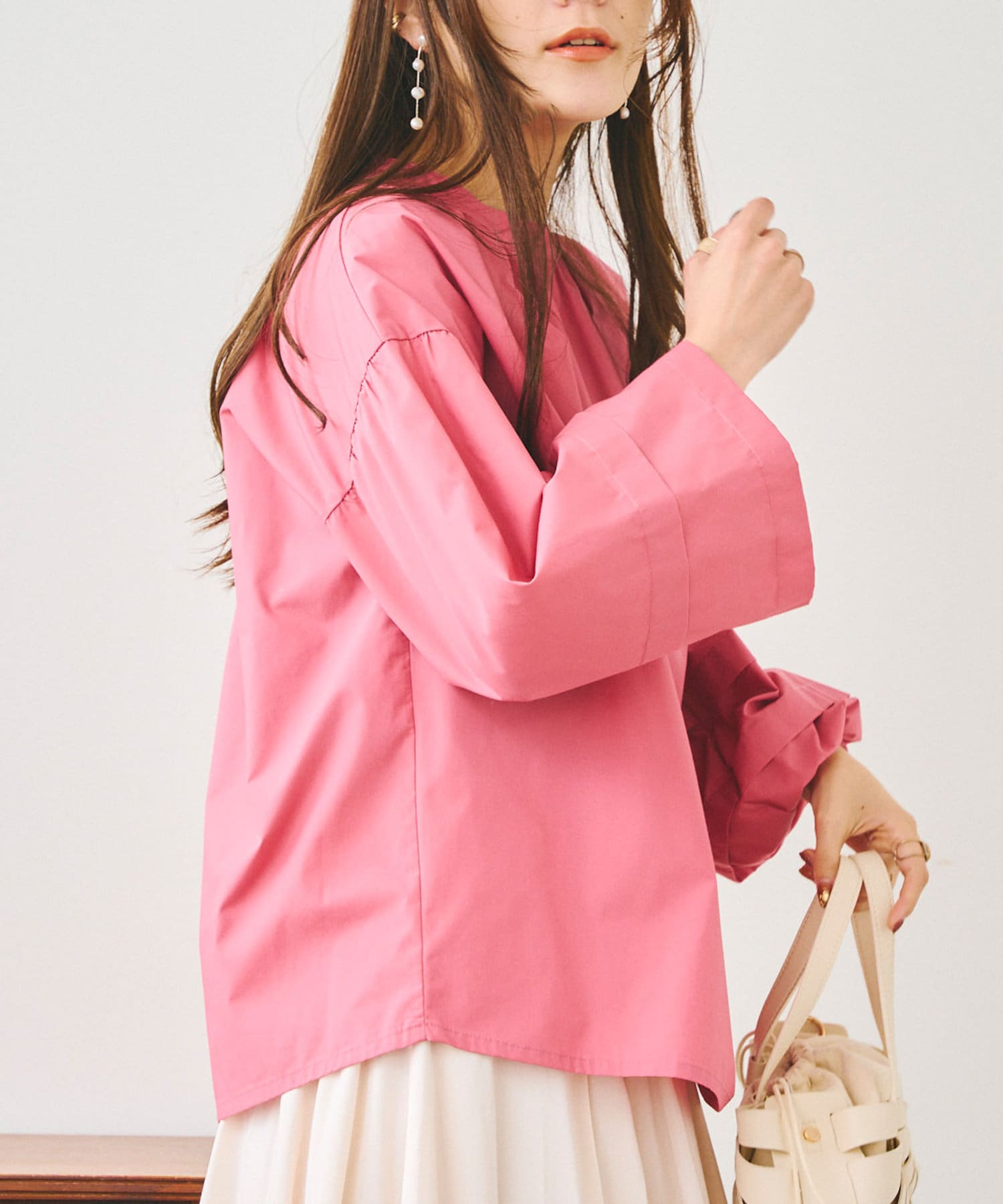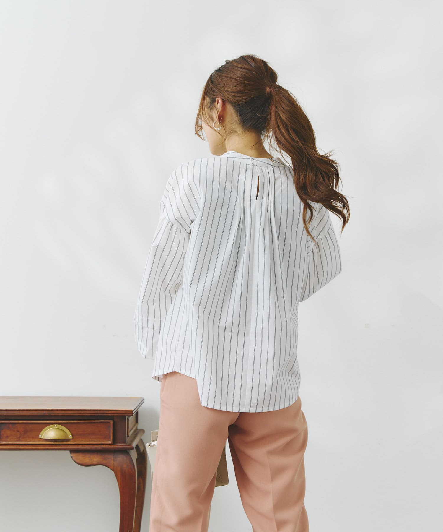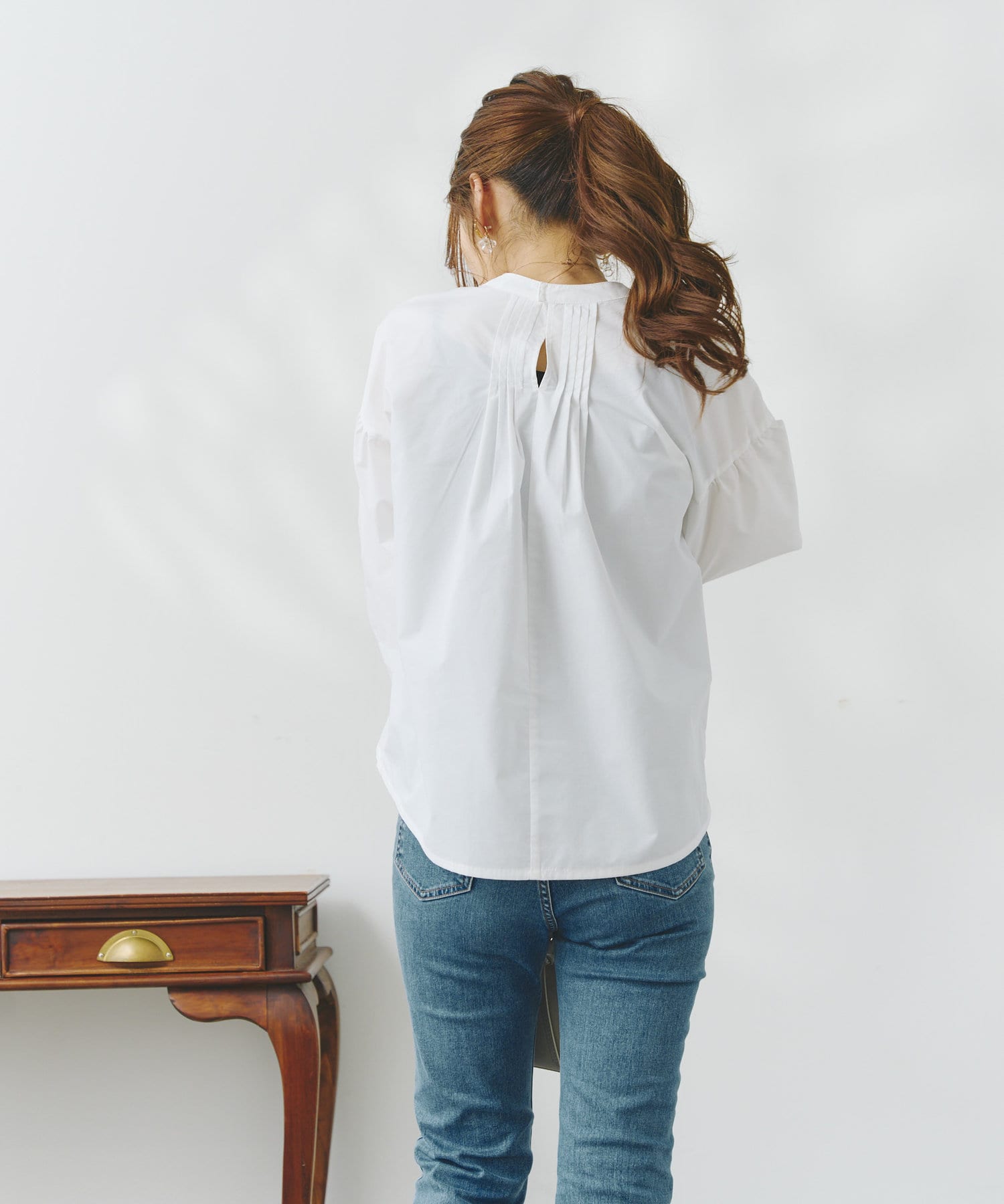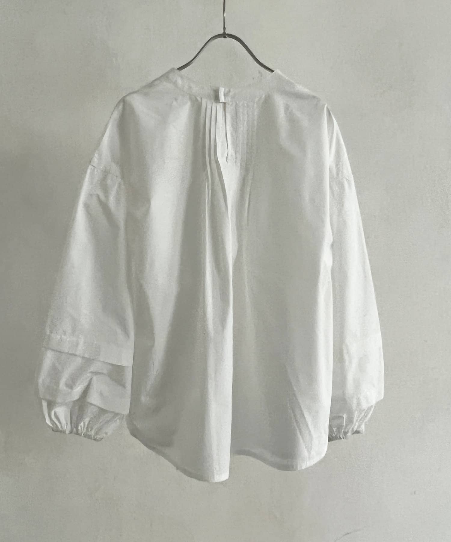 後ろ衿ぐりには細かなピンタックを入れているので、程よいボリューム感がありきれいめカジュアルな雰囲気の出るシルエットです。