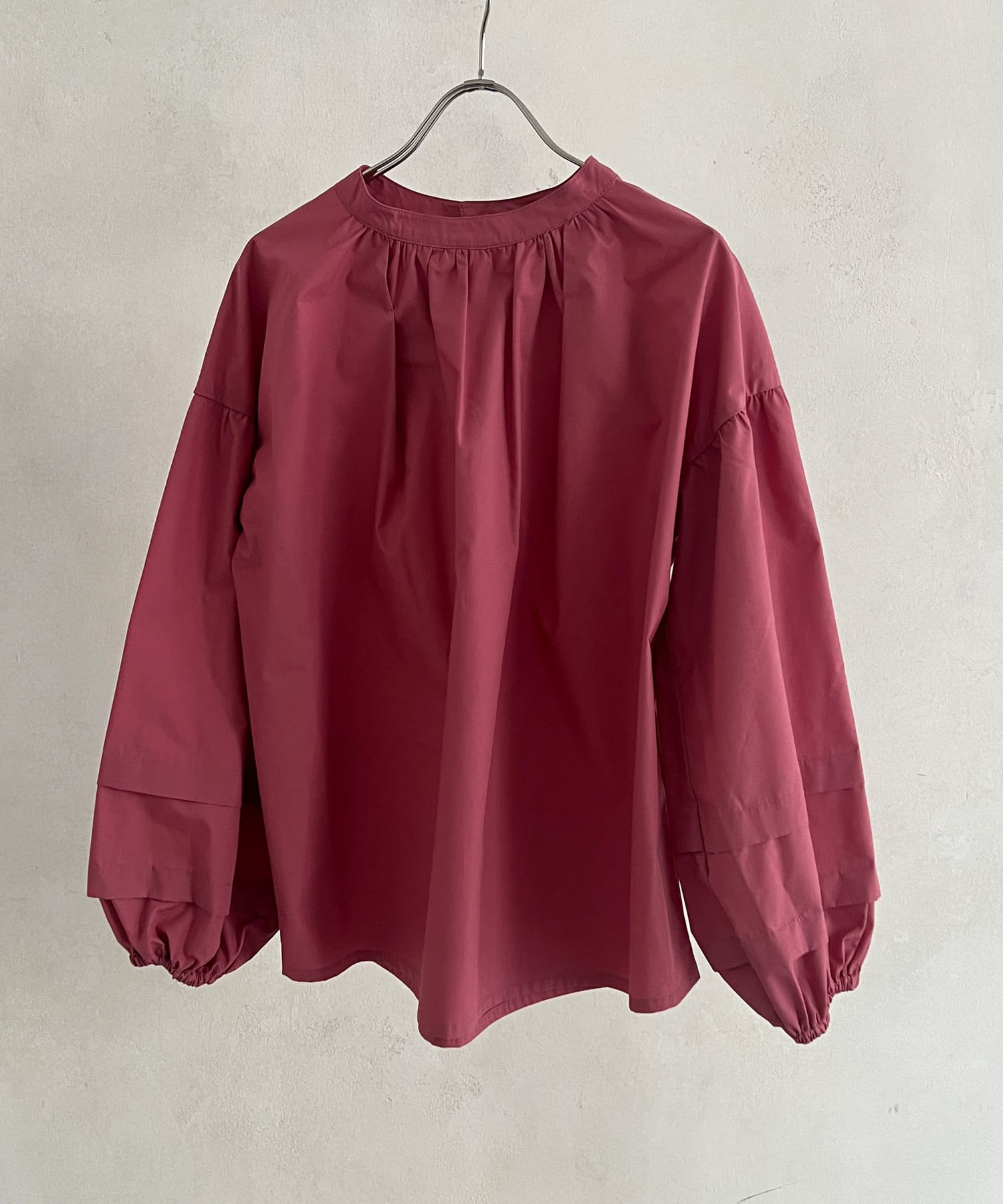 スタンドネックのベーシックなブラウス。