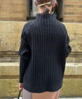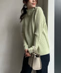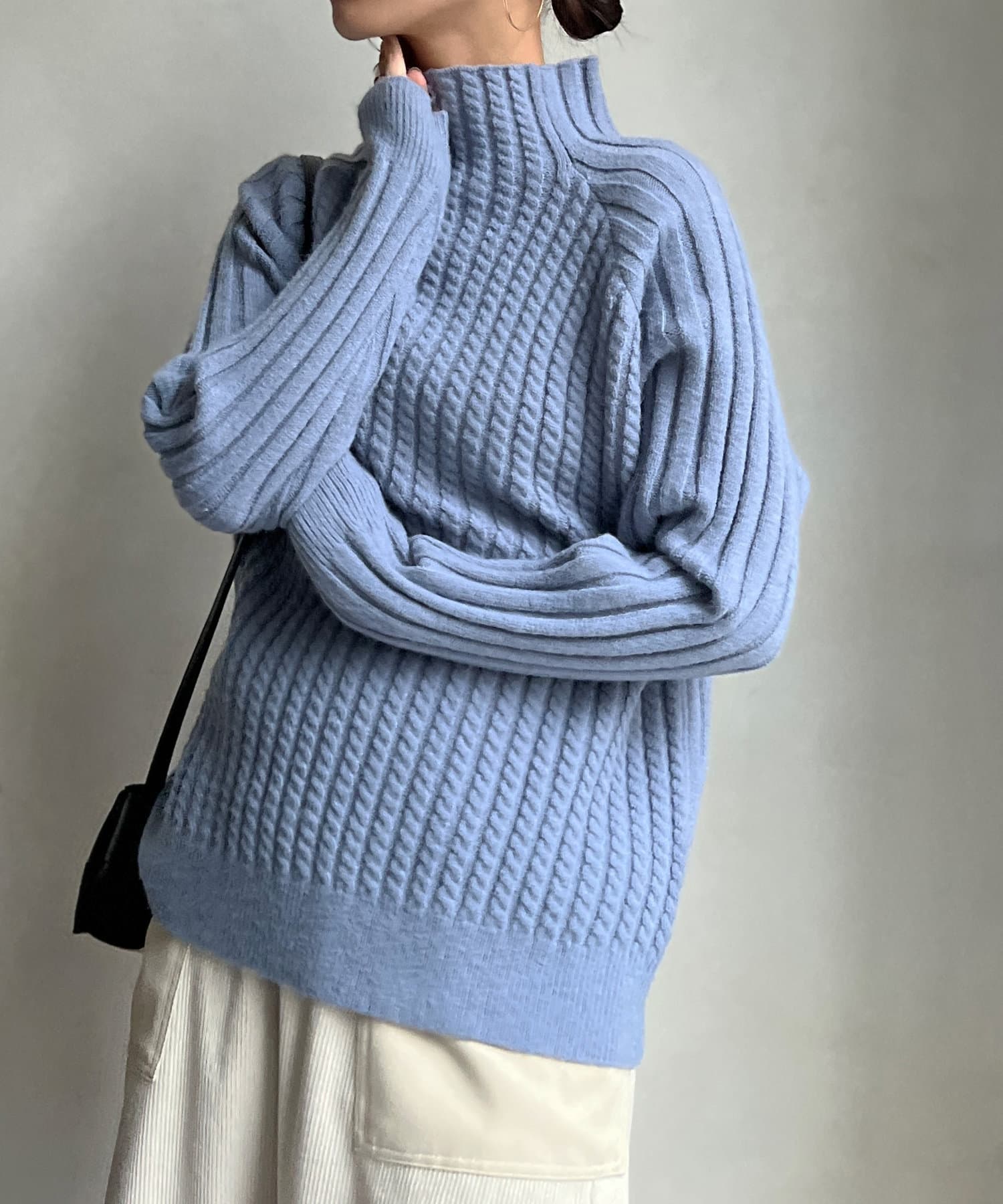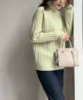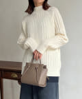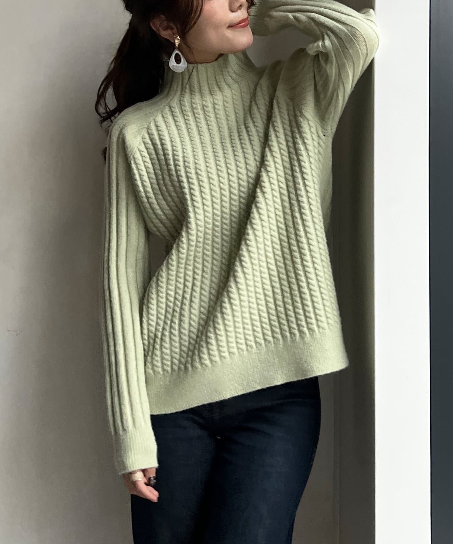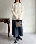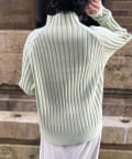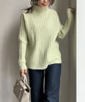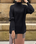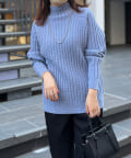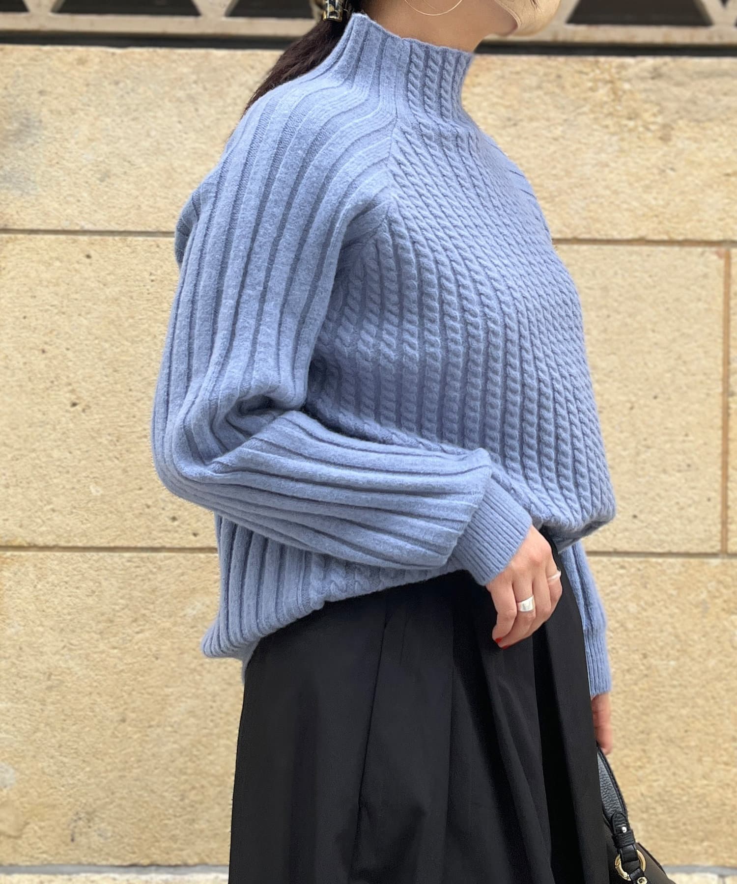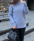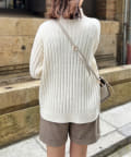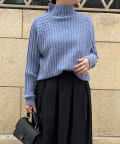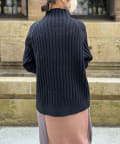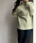 前身頃はケーブル編み、後ろはリブ編みの異なる編立がポイントのきれいめニット。