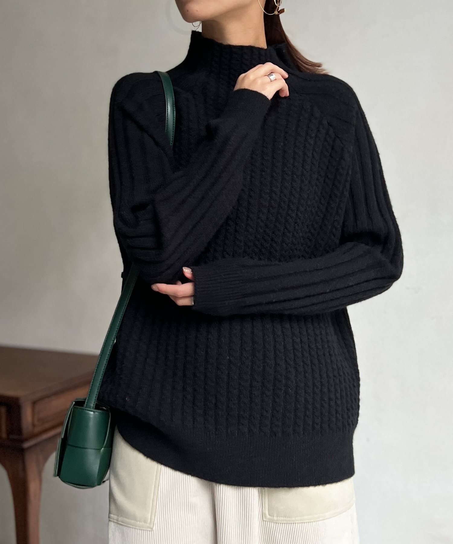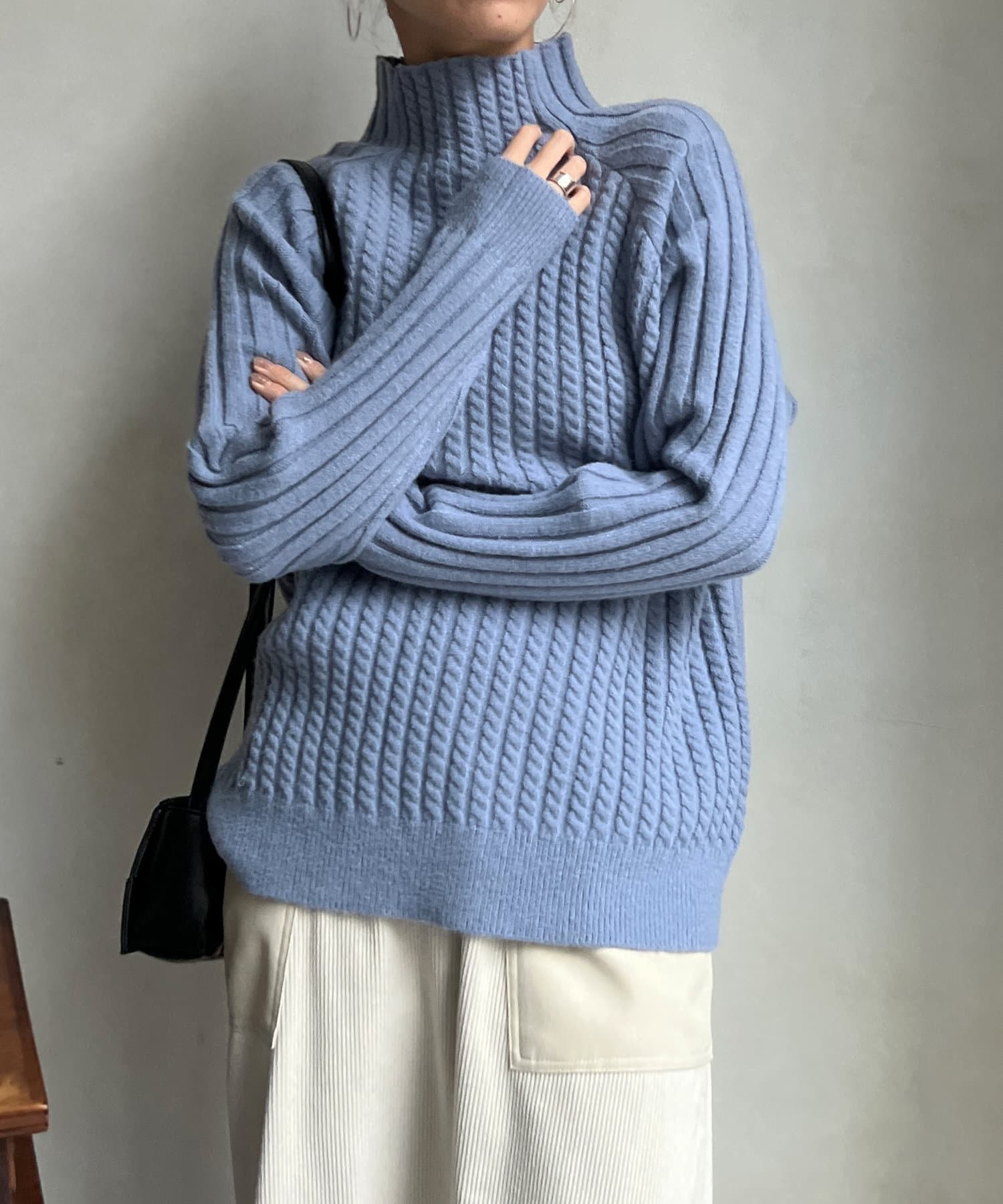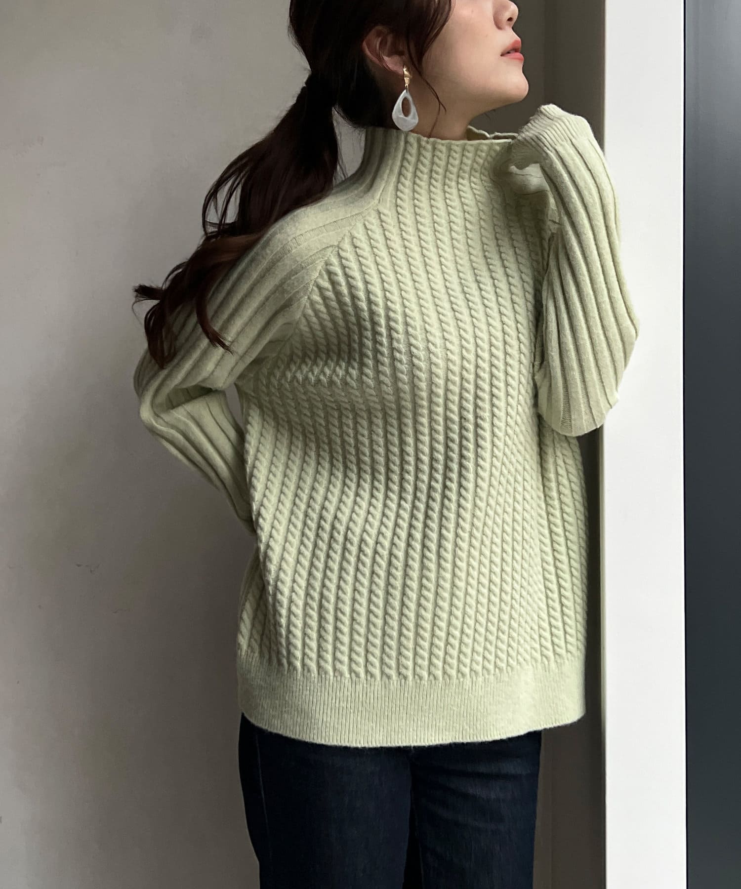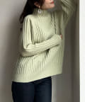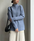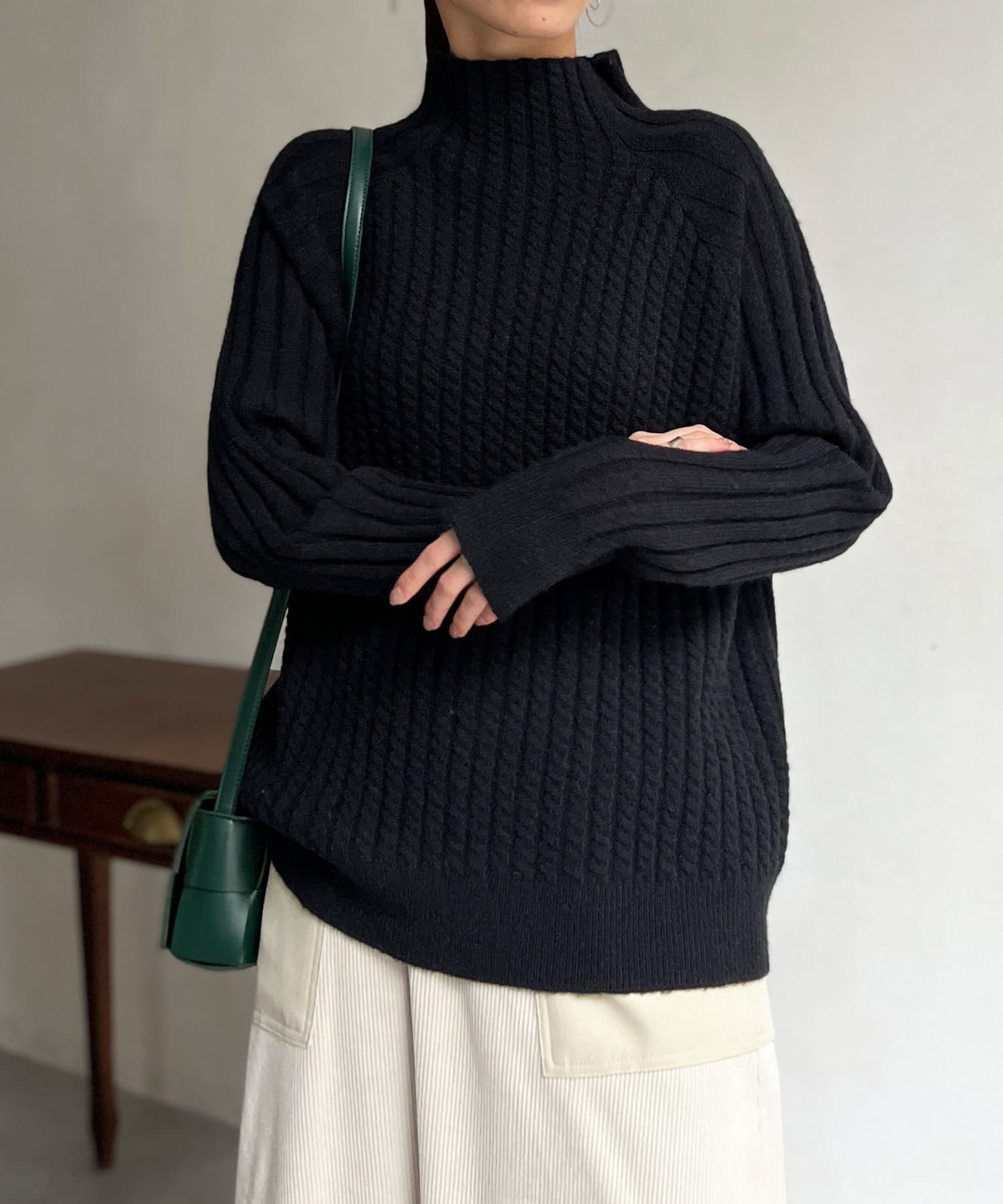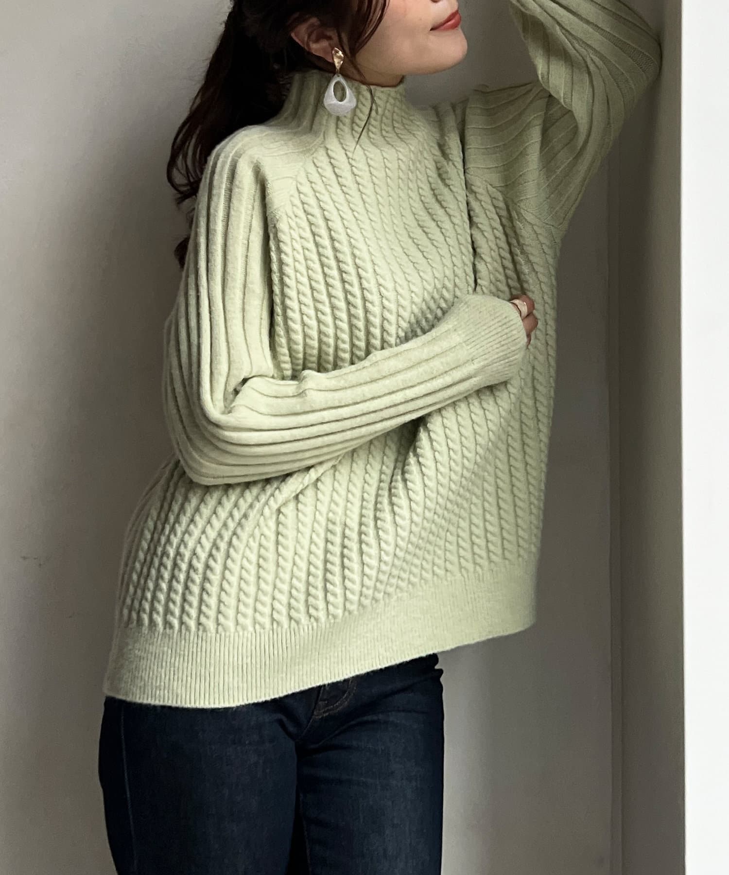 ケーブル編みスタンドネックプルオーバー