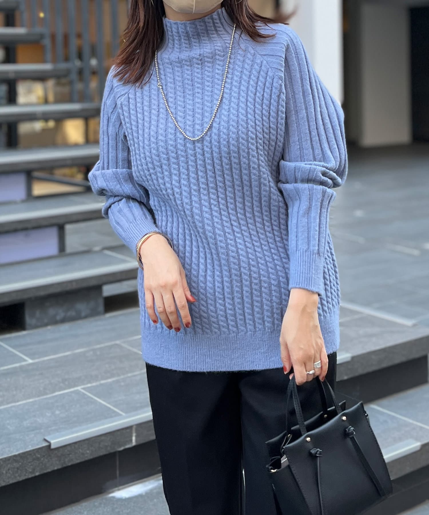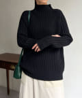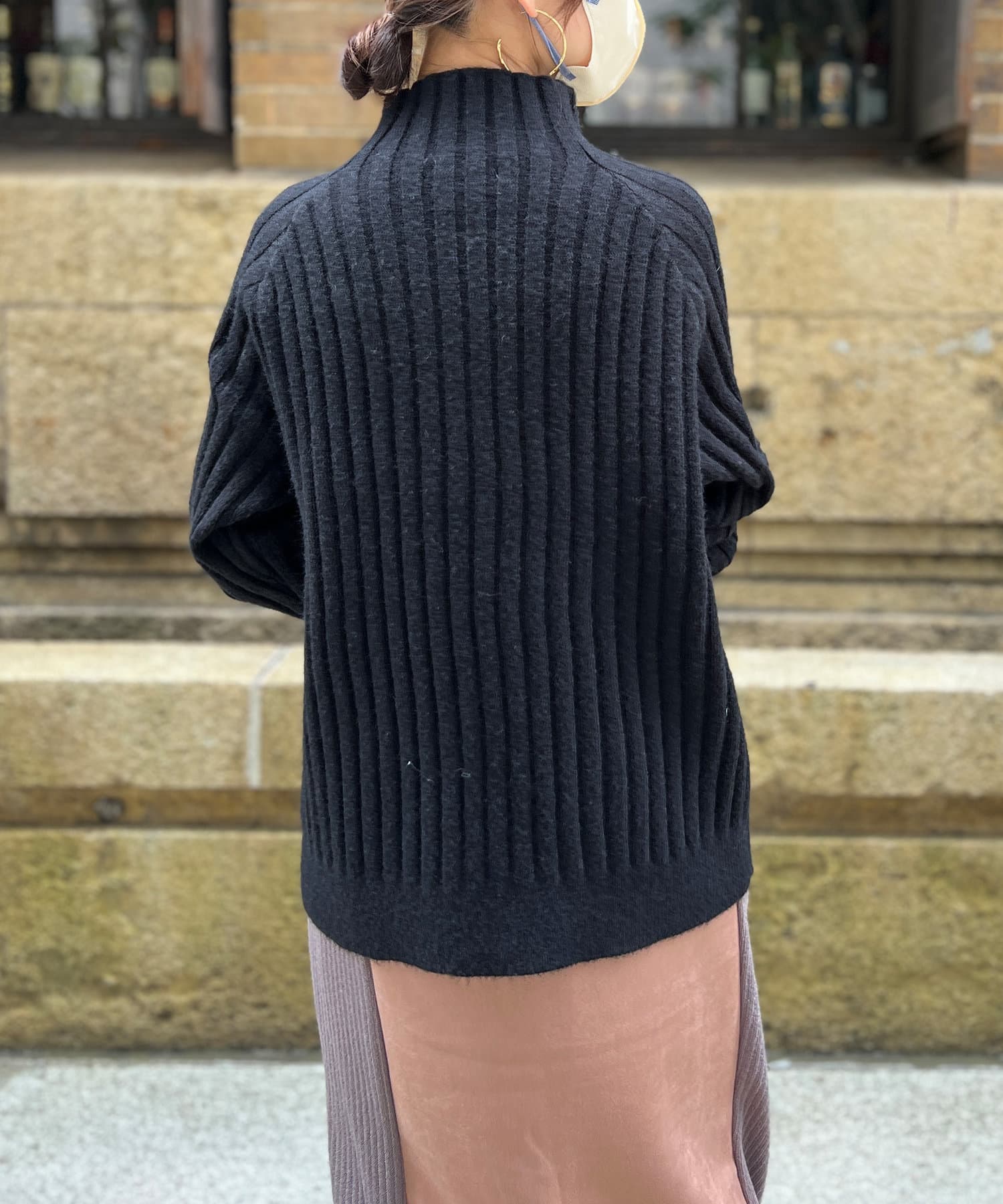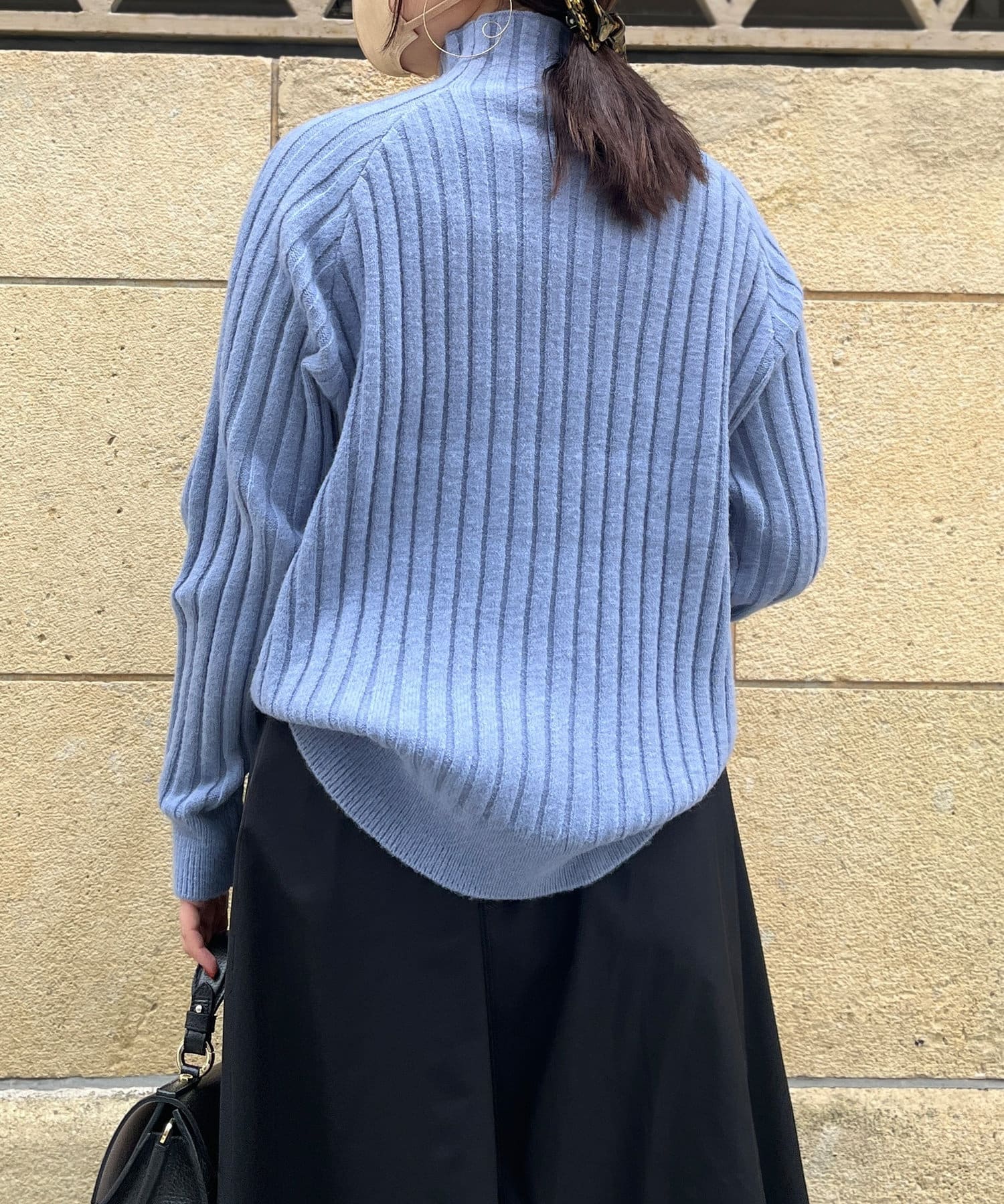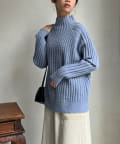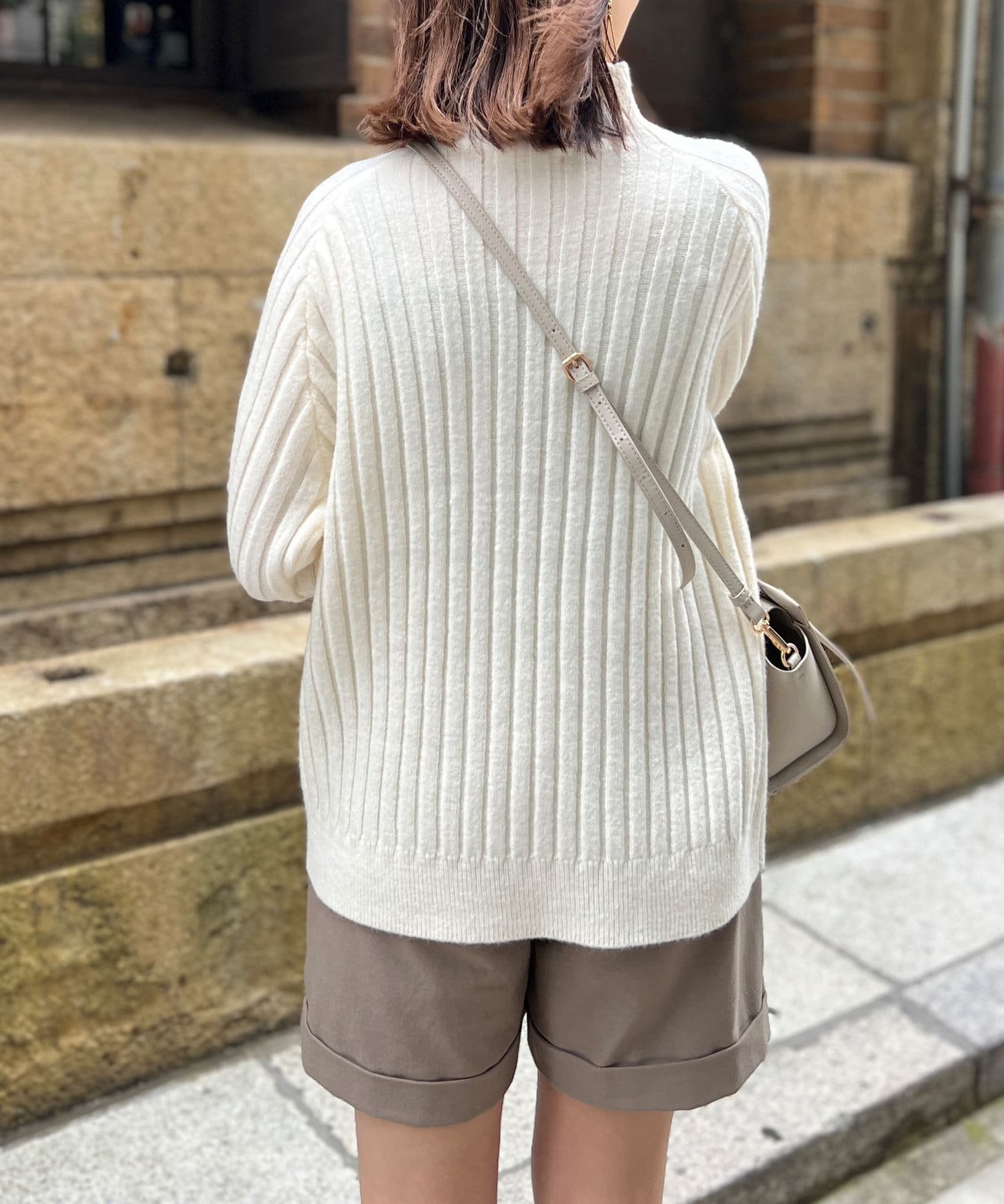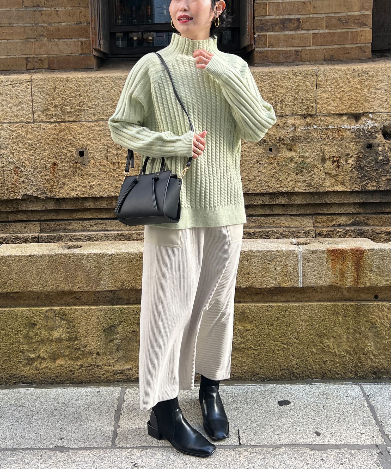 スタンドネックで首回りにポイントを持たせつつ、ハイネックほどのボリューム感がないのですっきりとした印象で合わせていただけます。