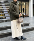 フェミニンなフレアスカートで女性らしいコーディネートに。
