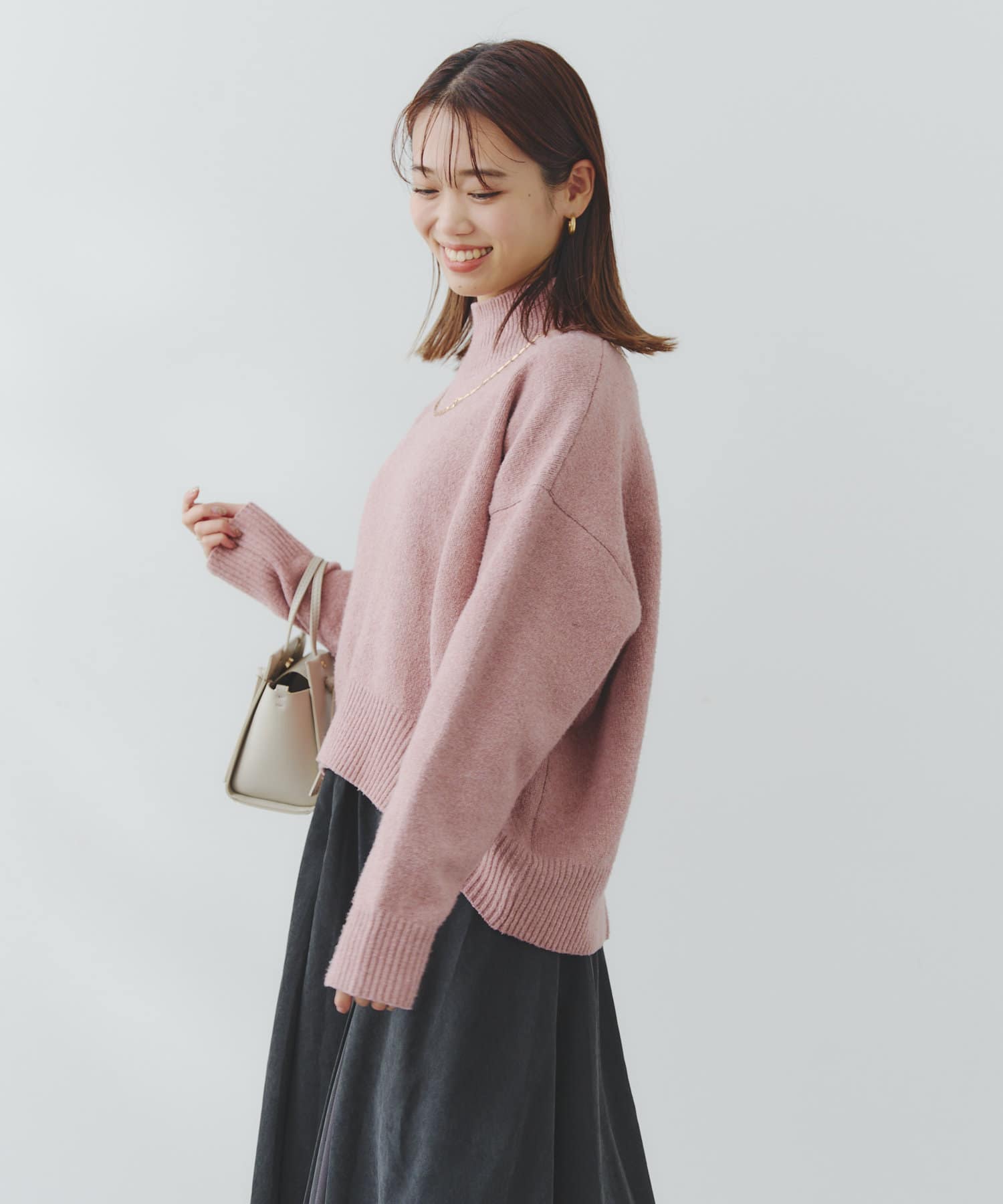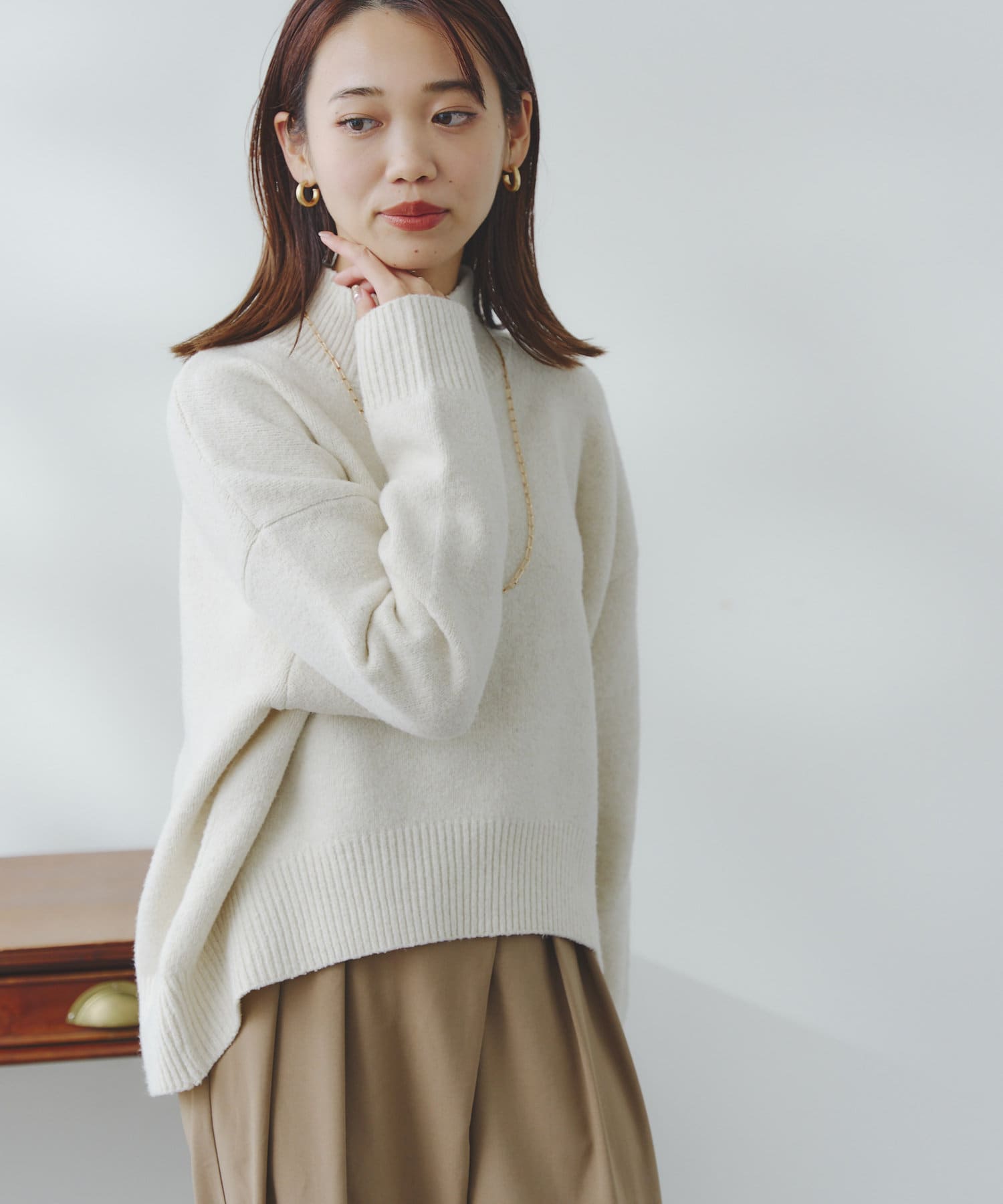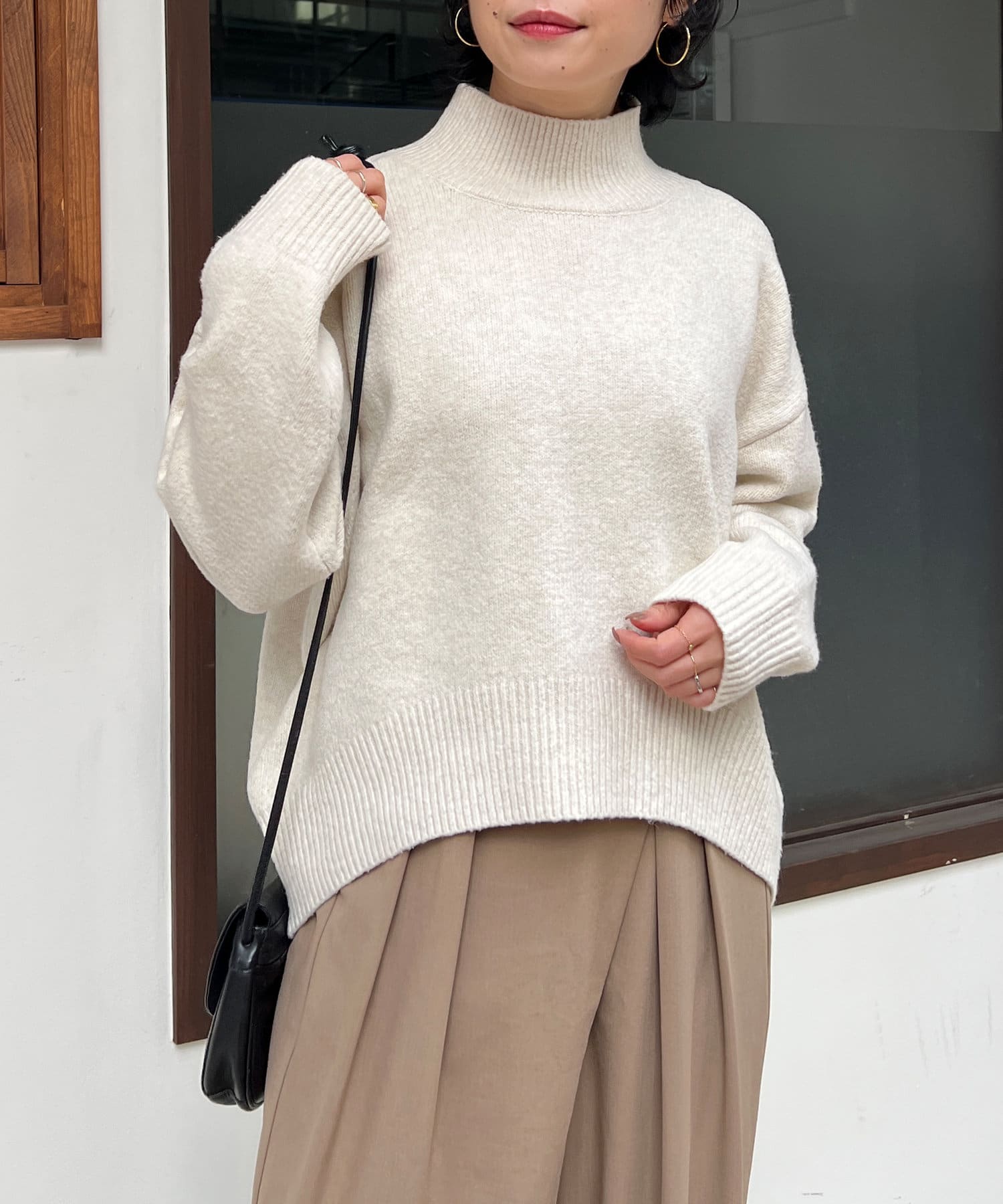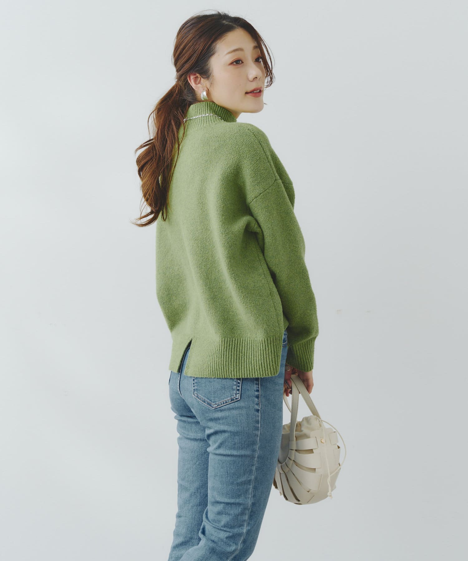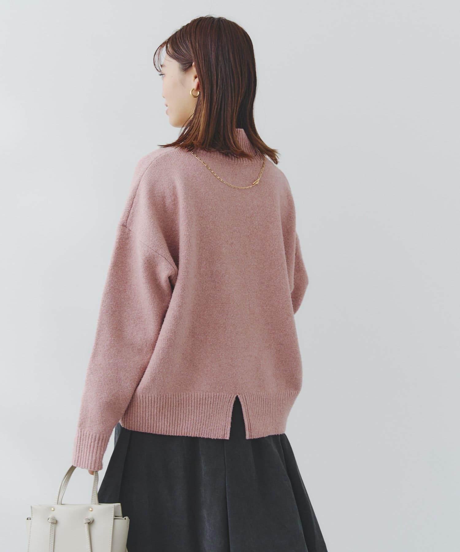 バックスリットがこなれ感を出してくれるシンプルなハイネックニット。