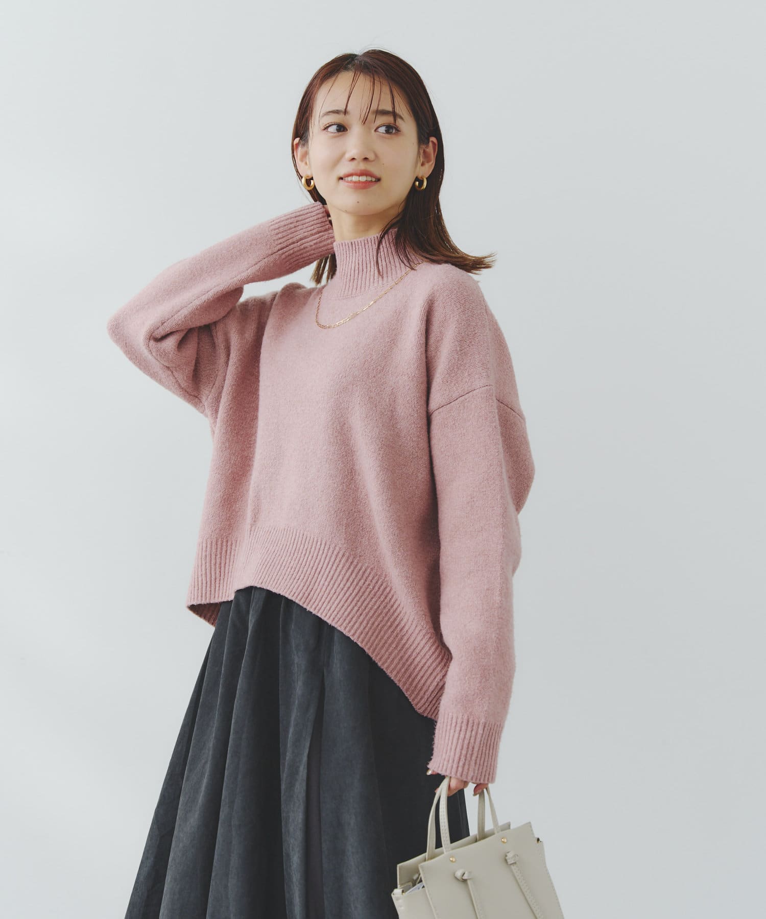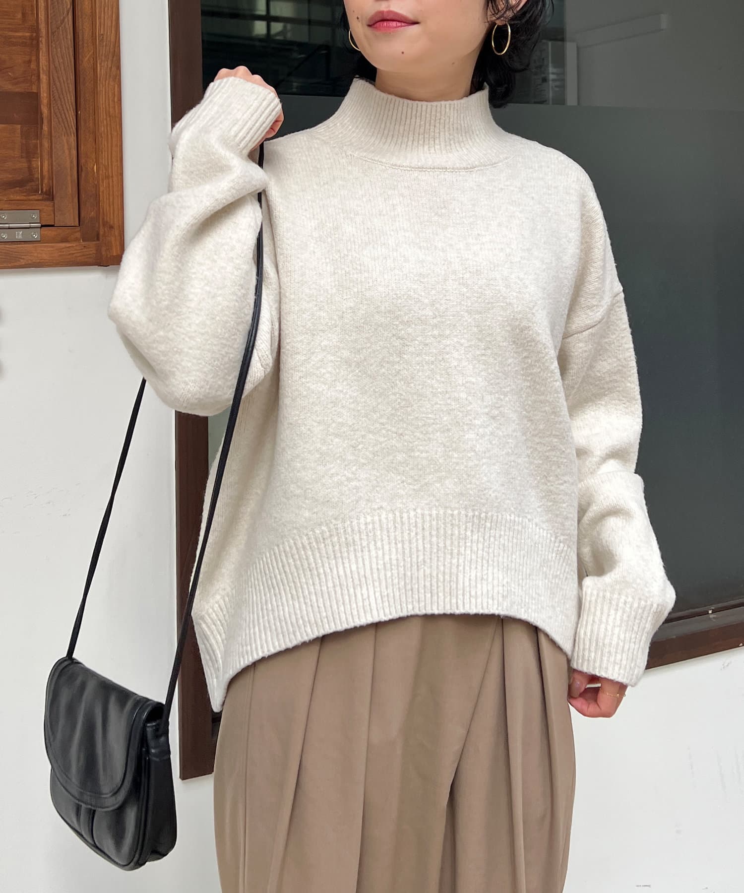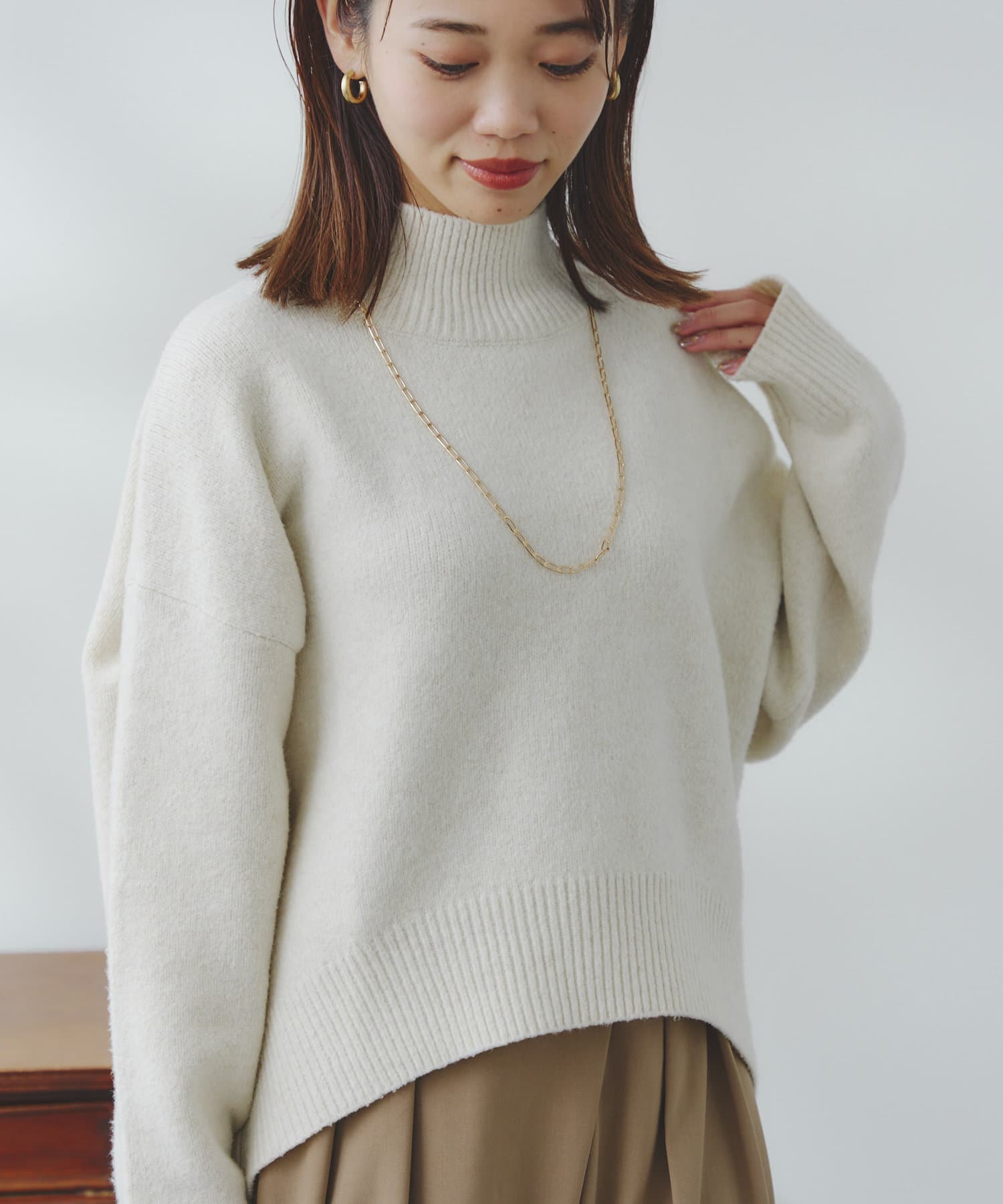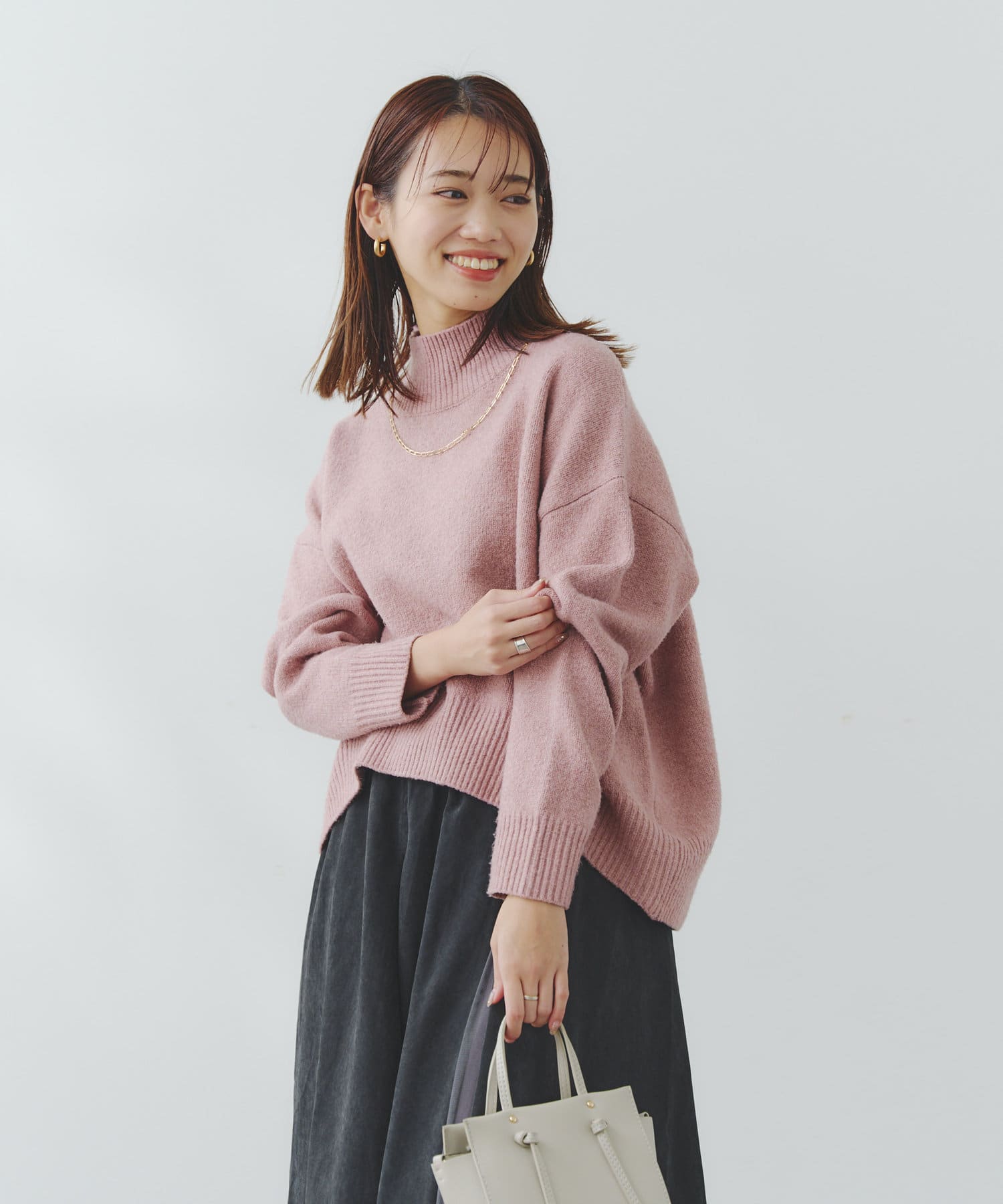 バックスリットがこなれ感を出してくれるシンプルなハイネックニット。