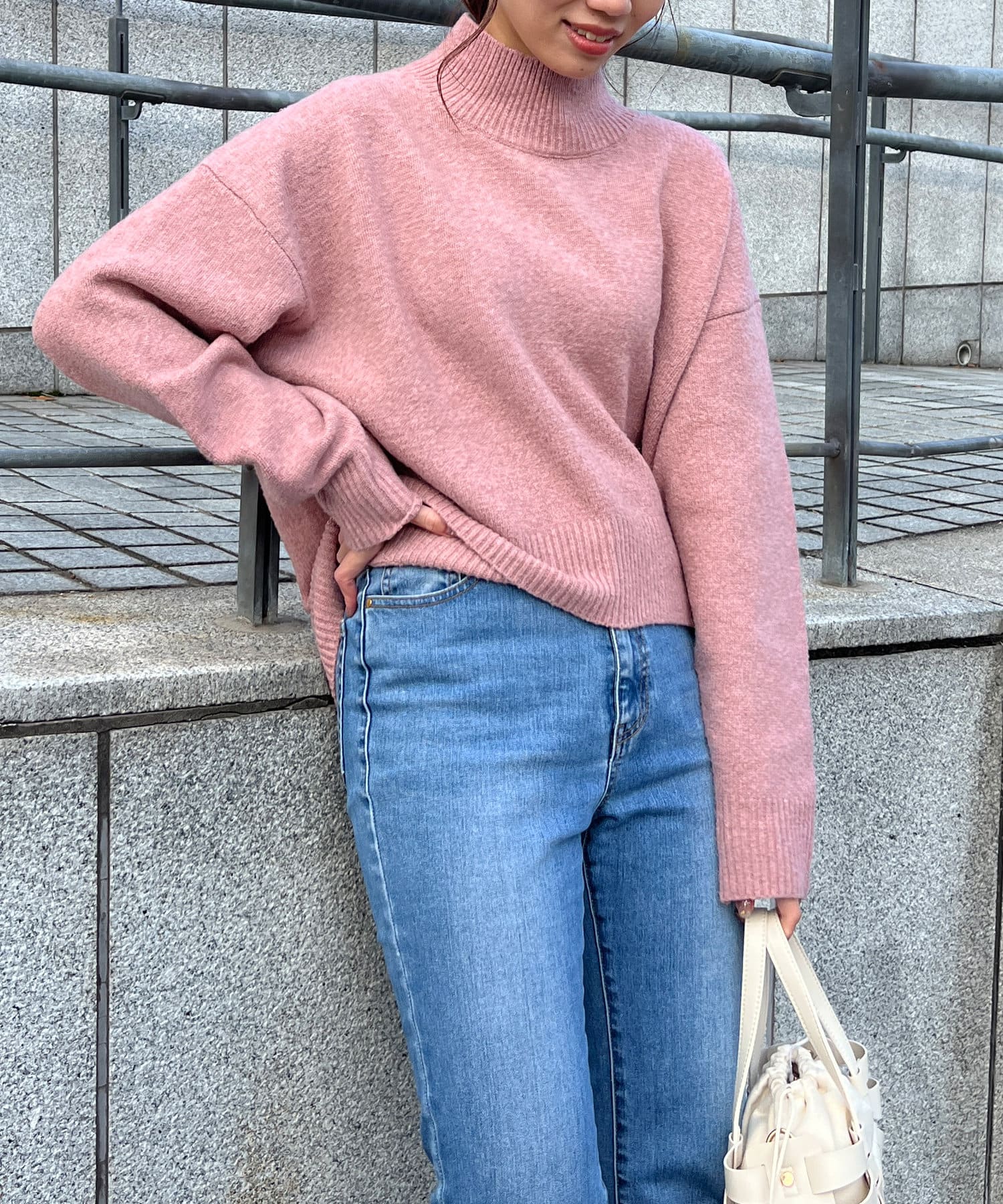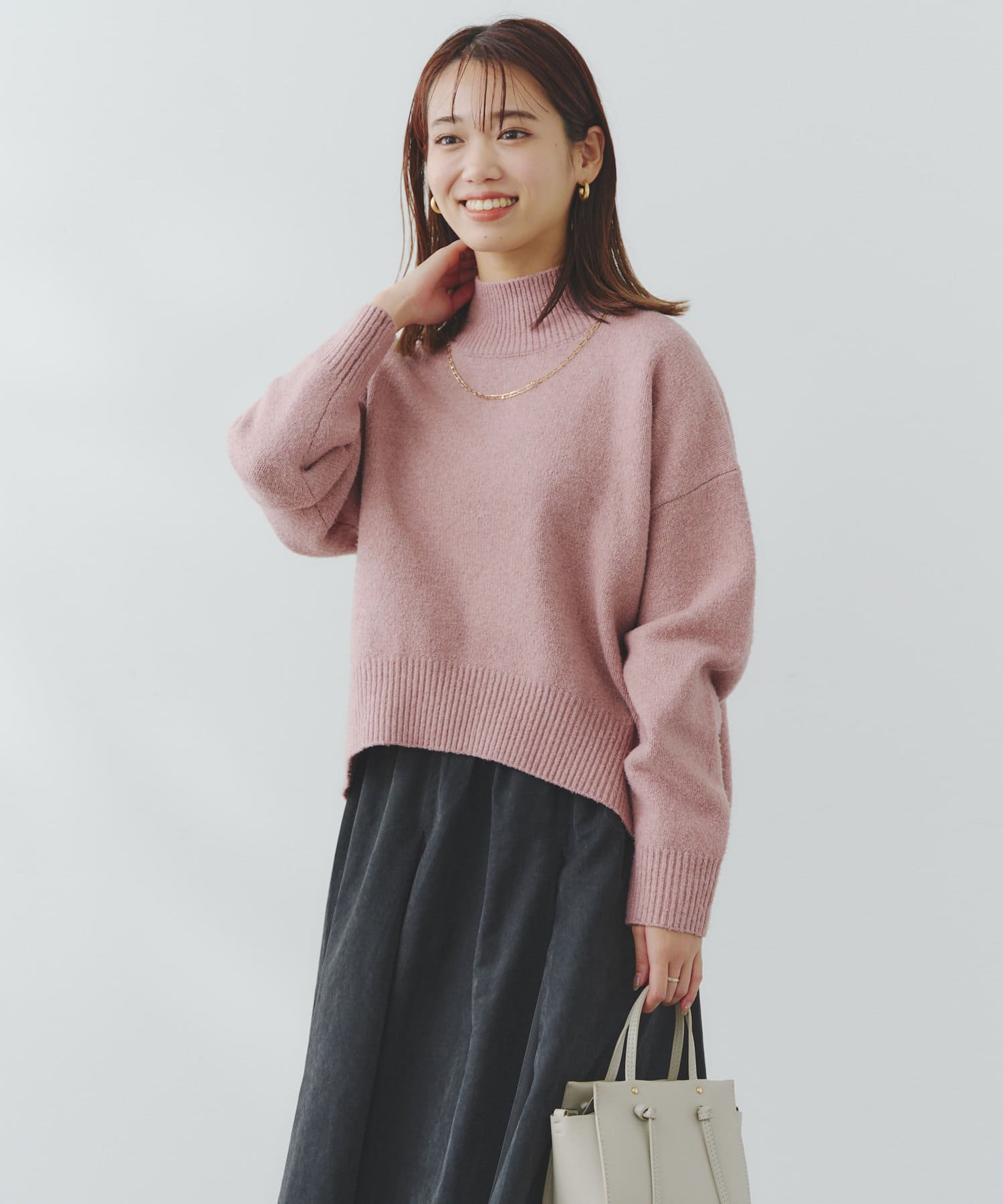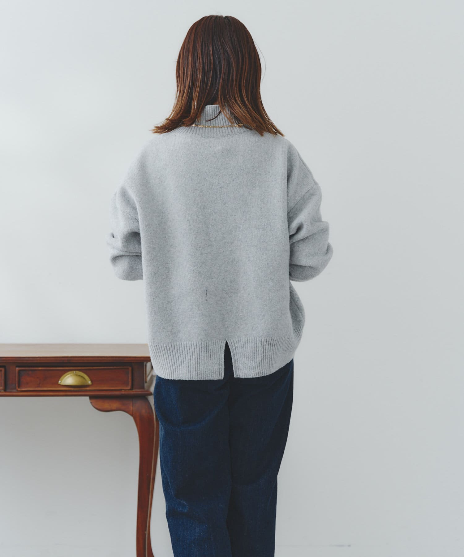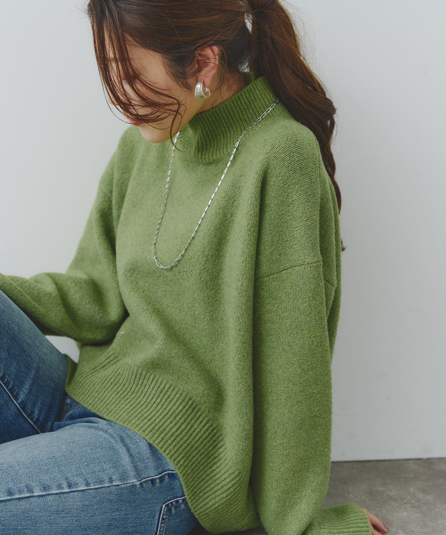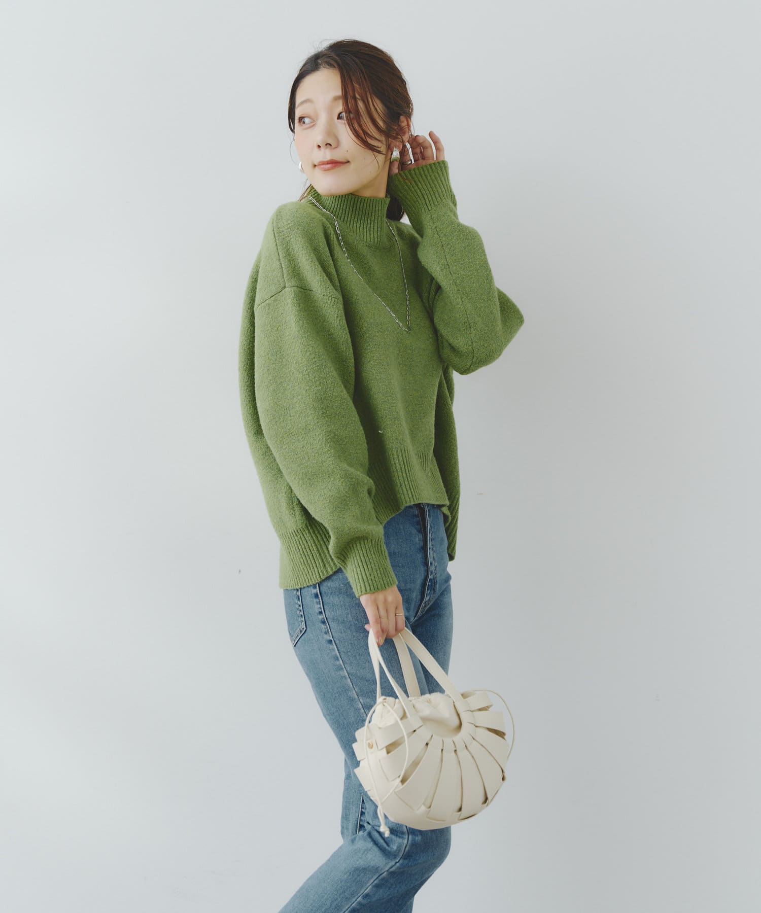バックスリットがこなれ感を出してくれるシンプルなハイネックニット。