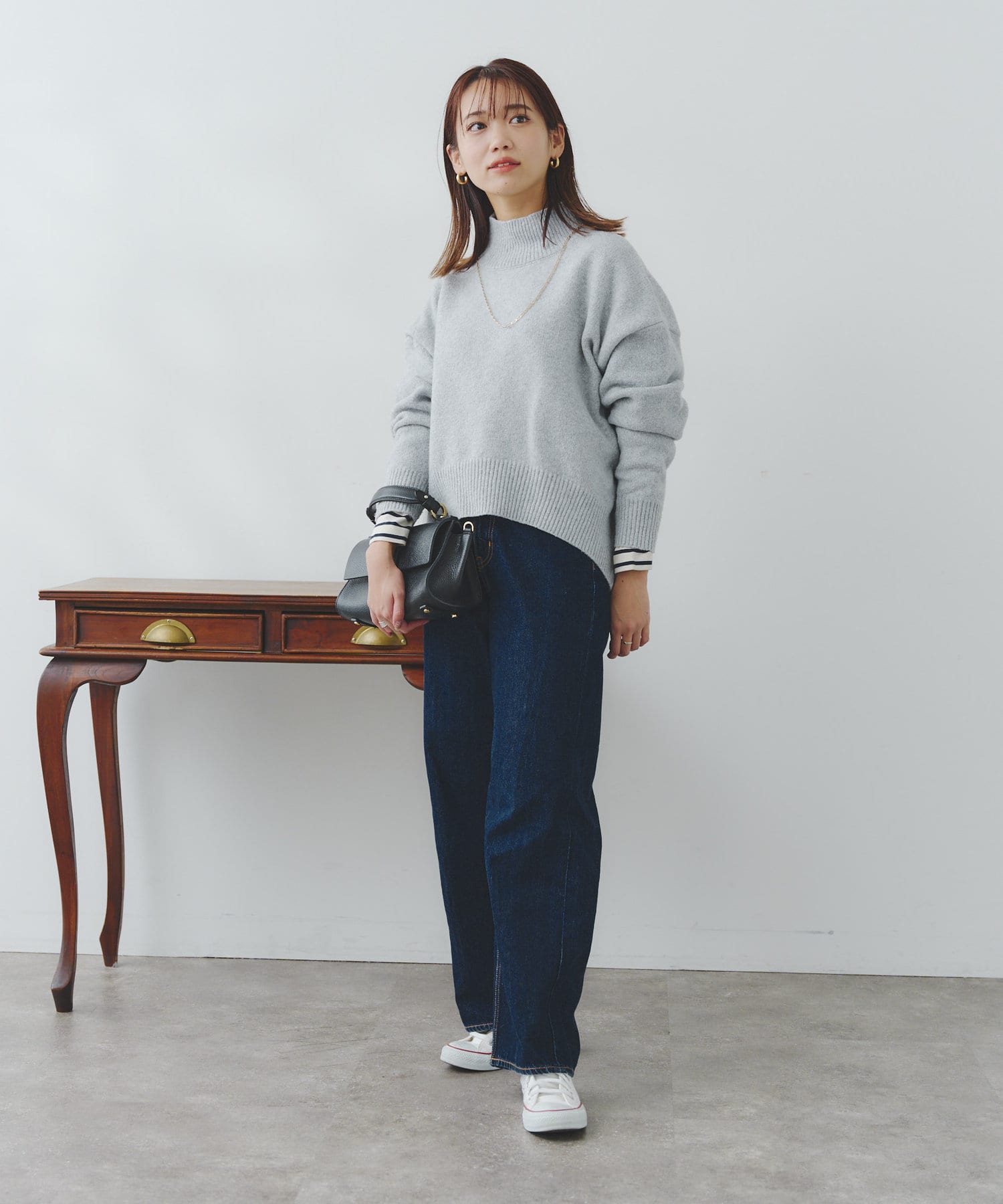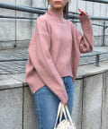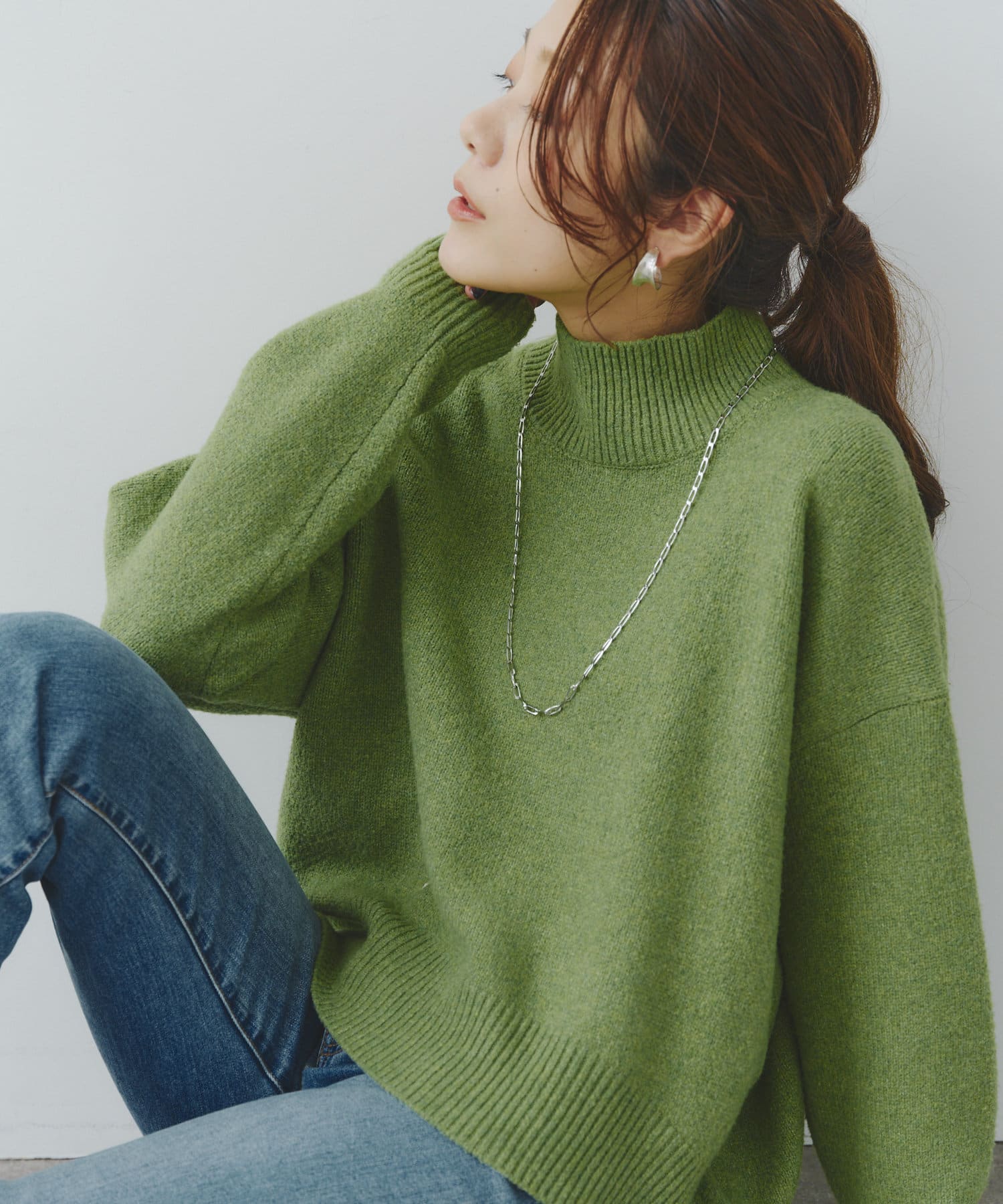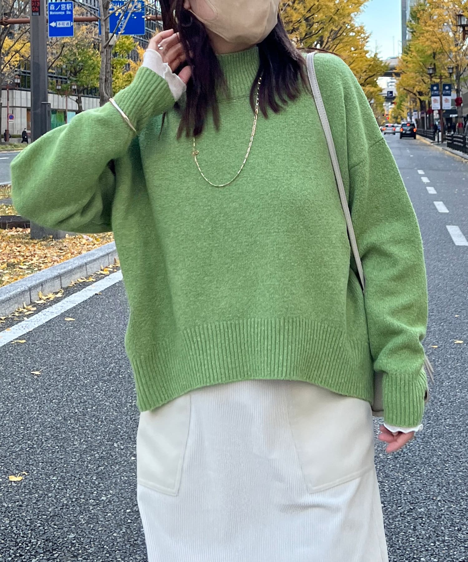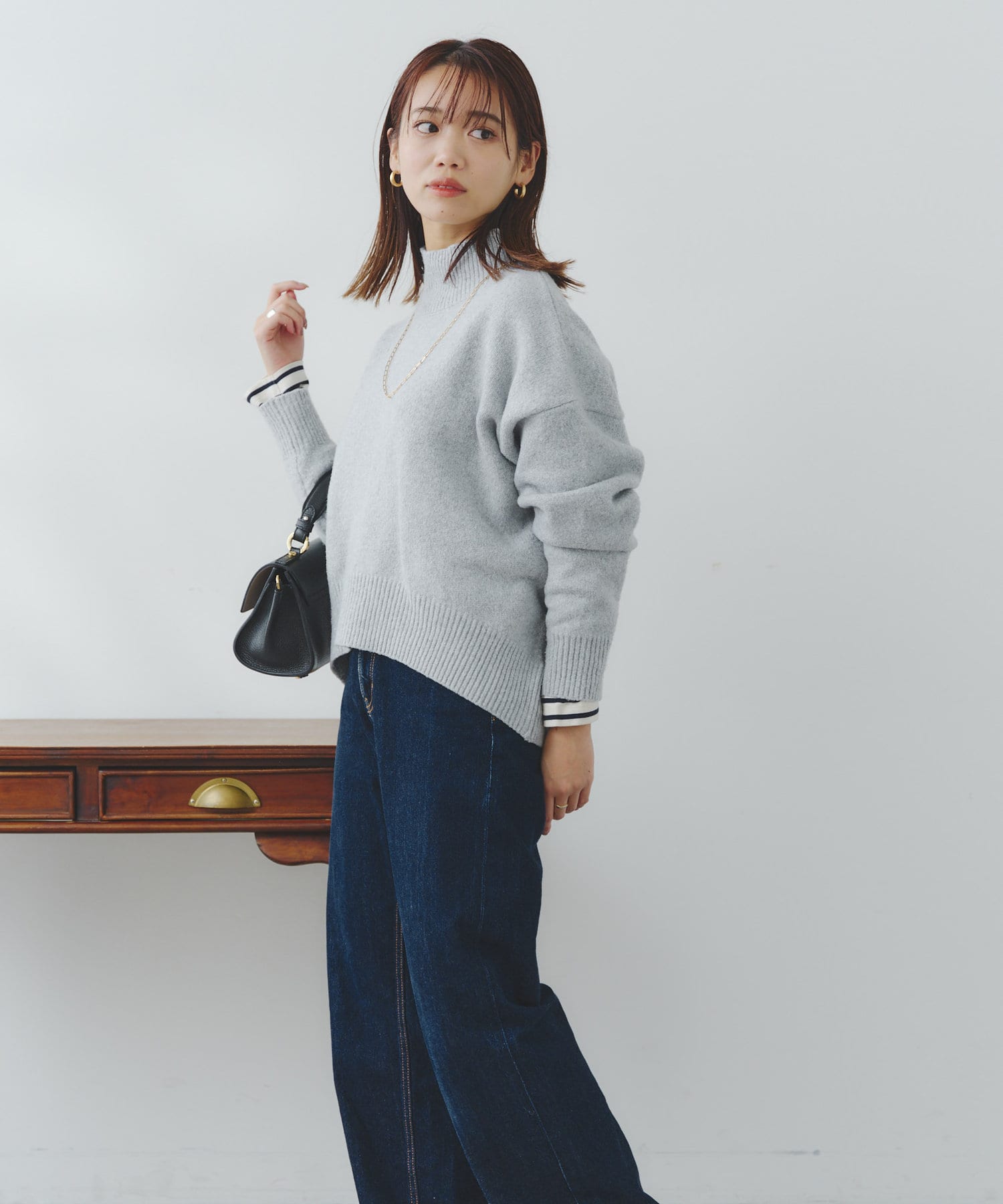 バックスリットがこなれ感を出してくれるシンプルなハイネックニット。